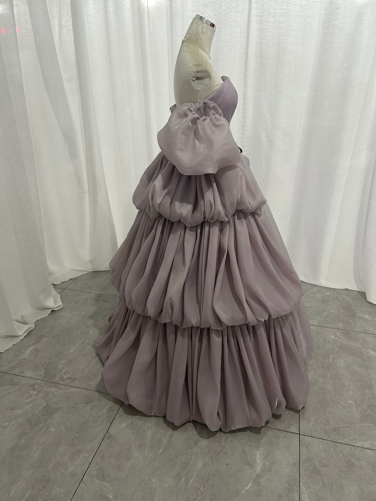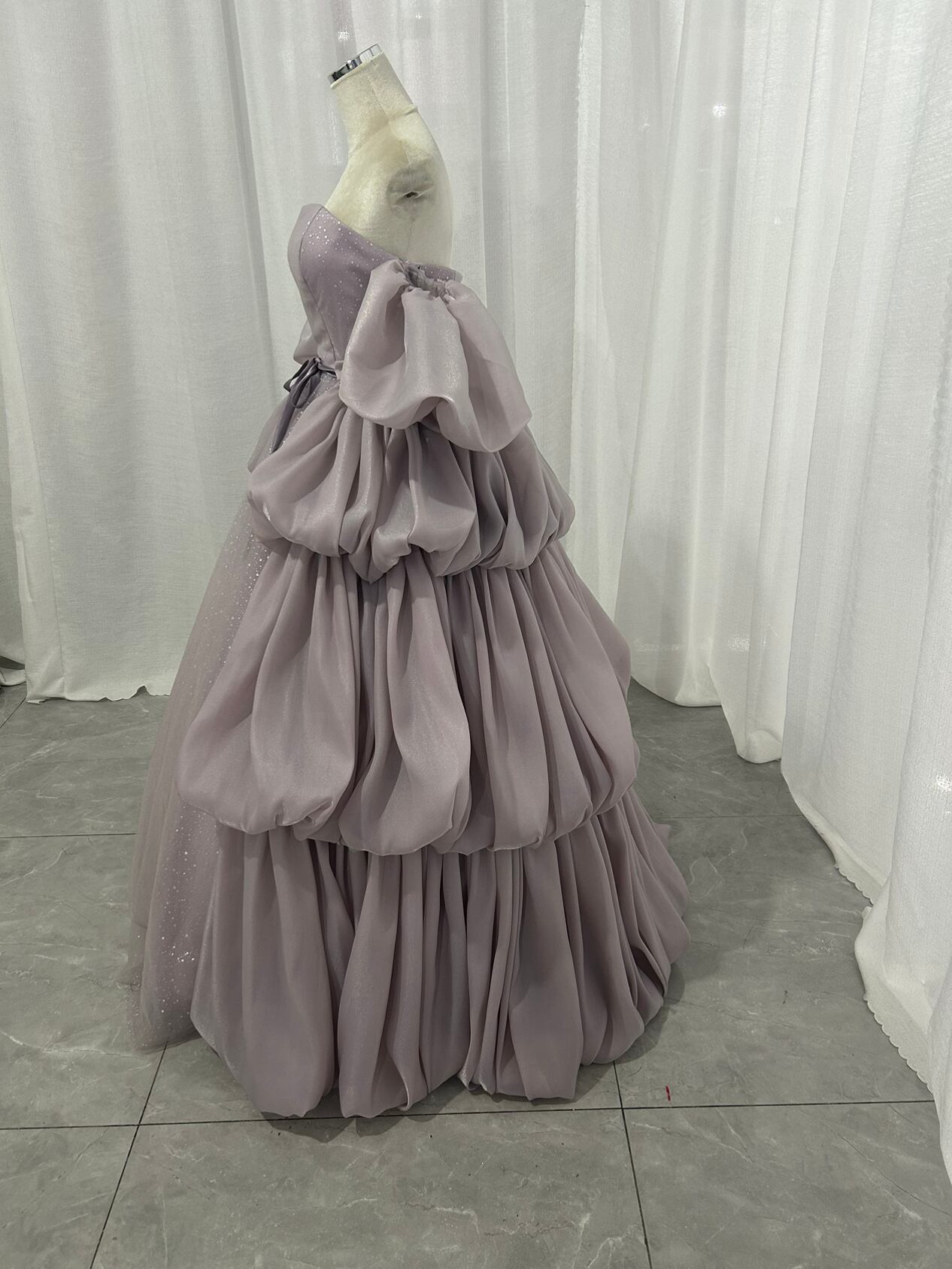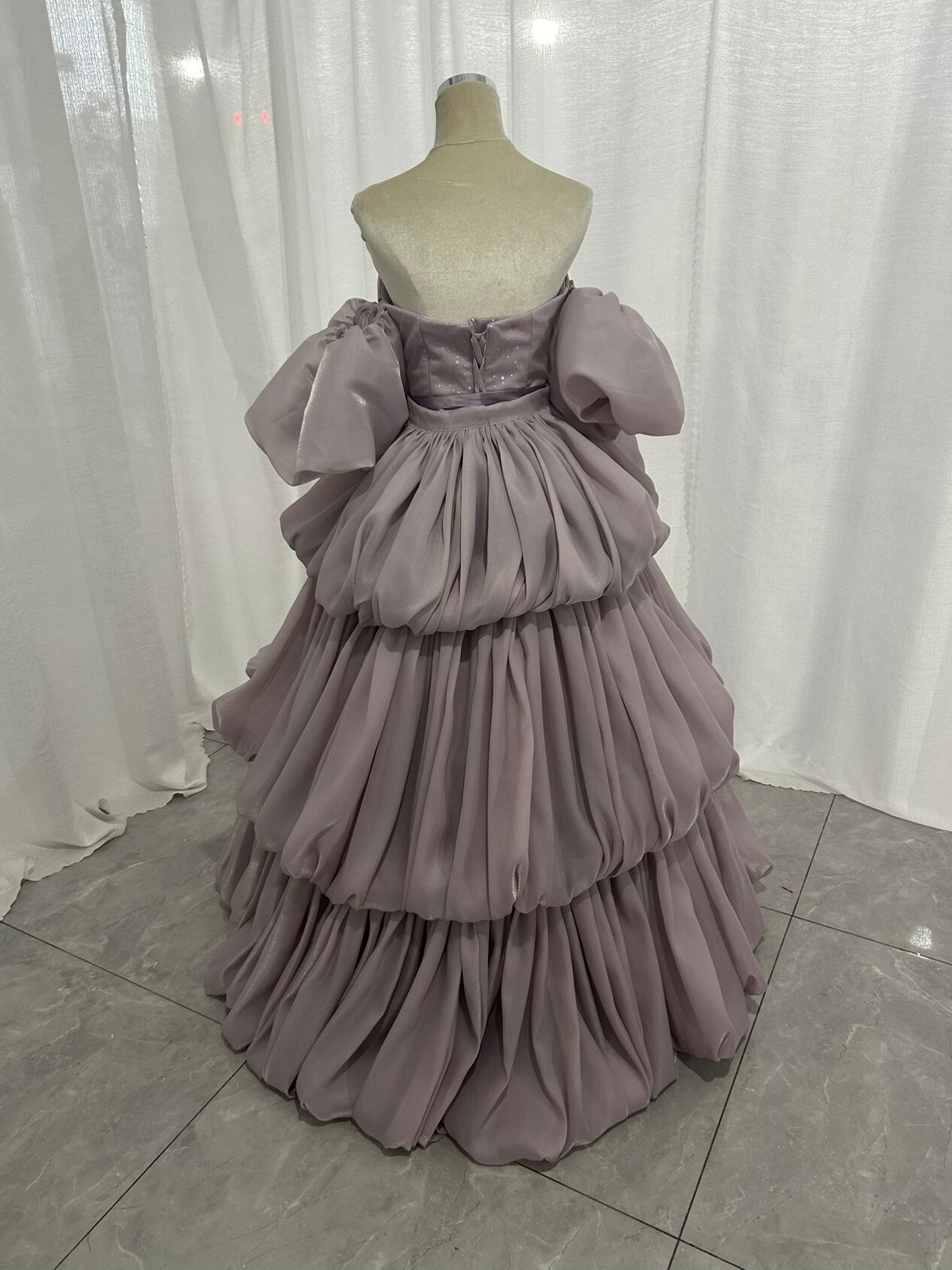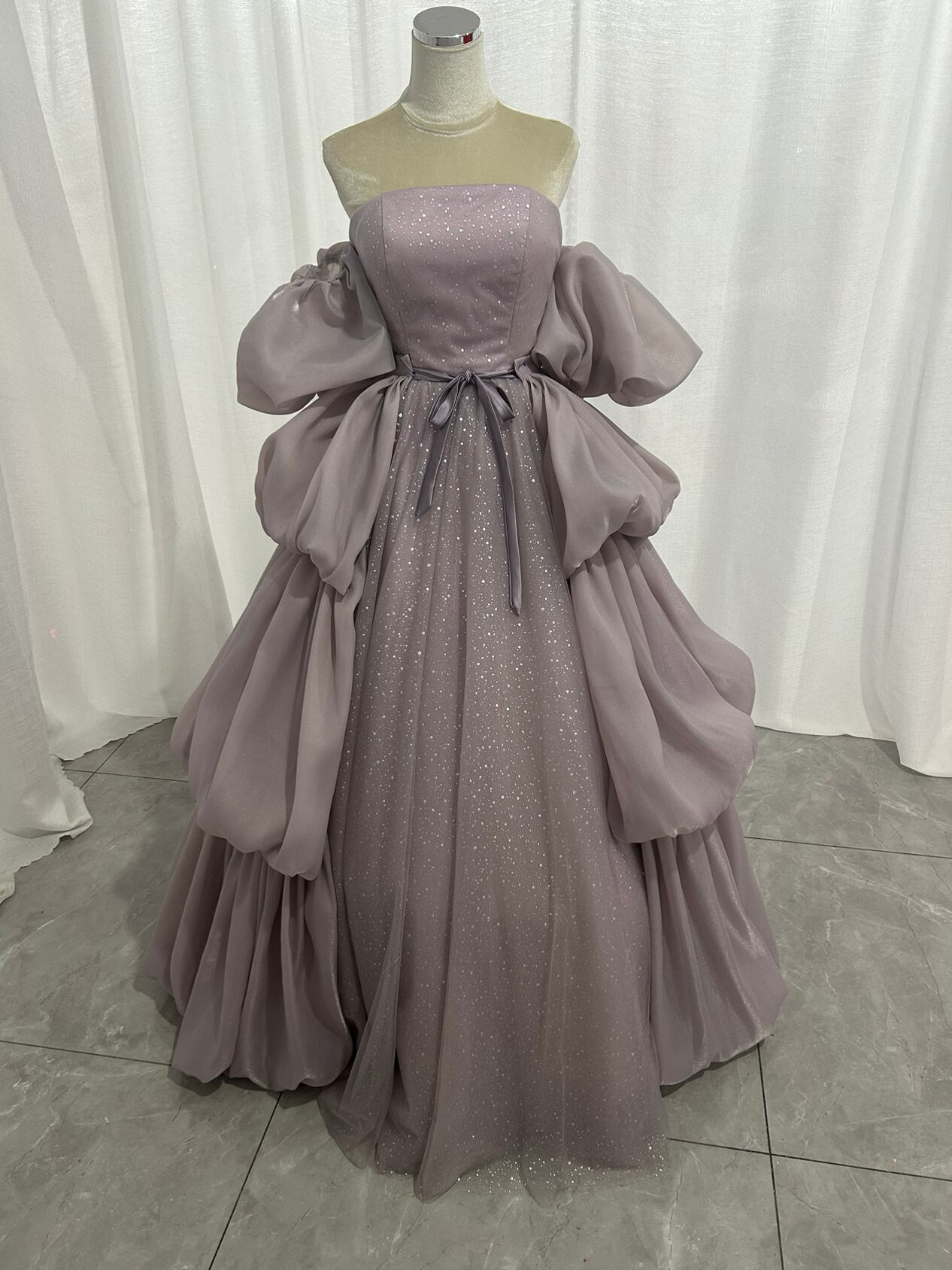 カラードレス オーキッド パフスリーブ ティアードのドレス ベルト ラッフルフリル 花嫁/ウェディングドレス