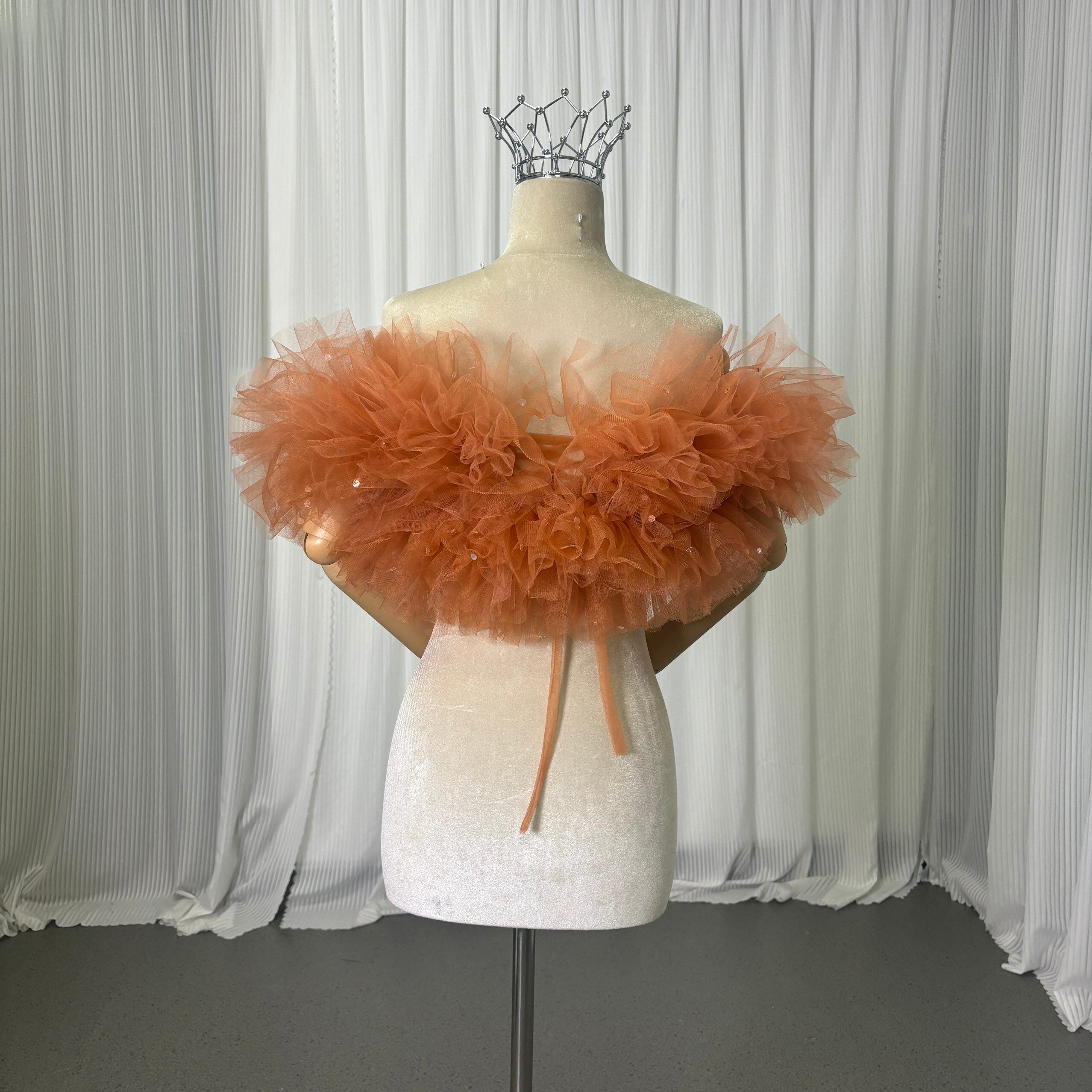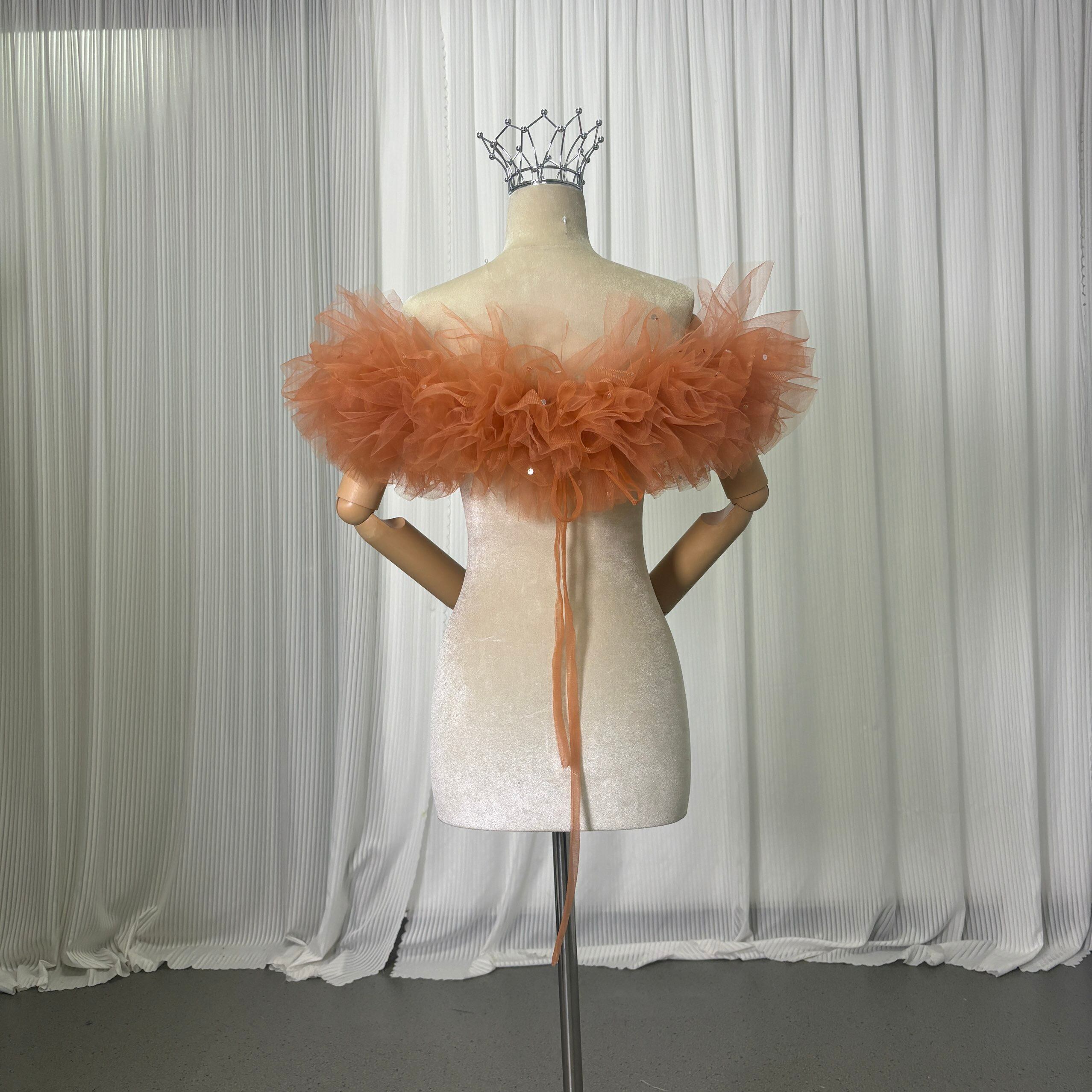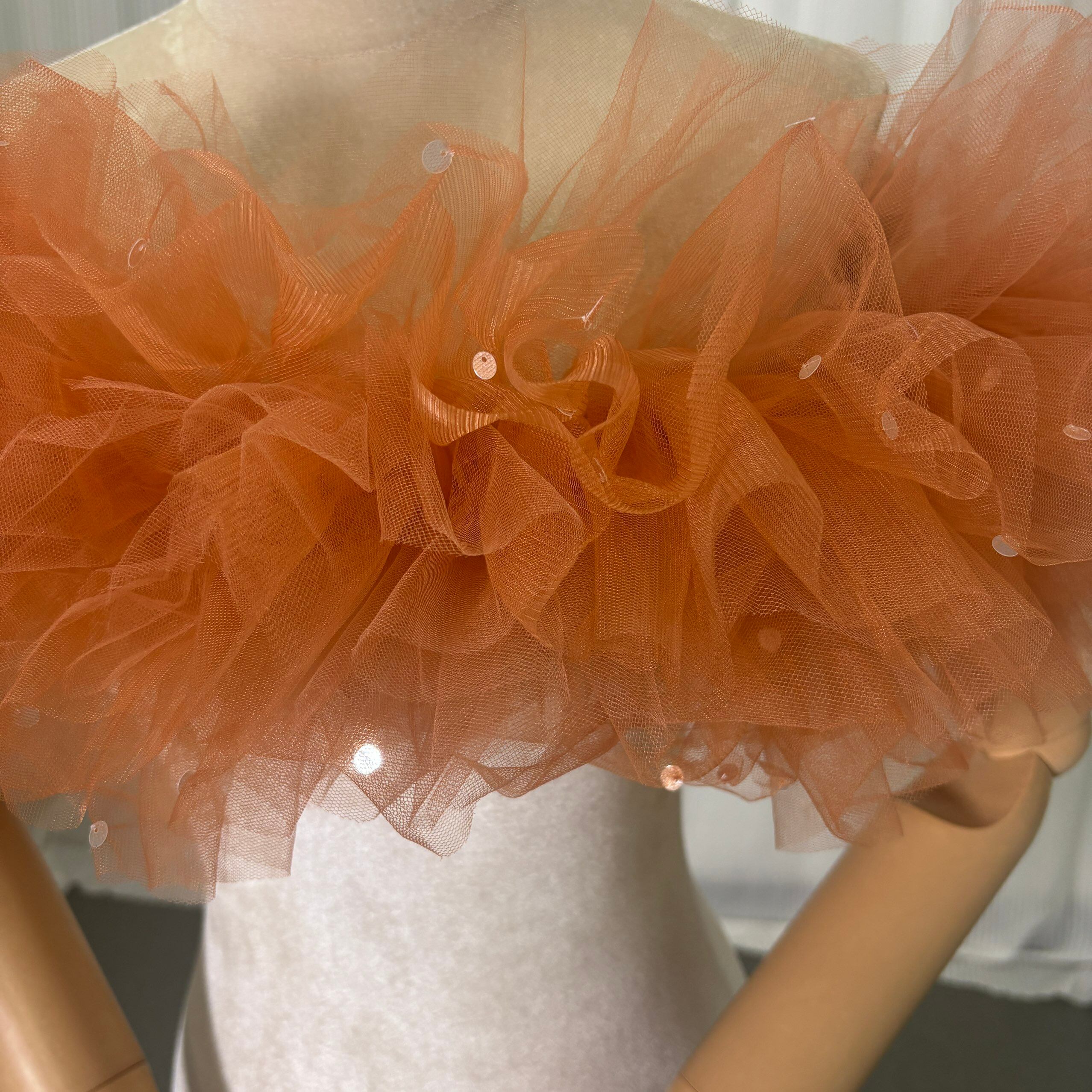 取り外し可能なオフショルダー オレンジ キラキラスパンコール 編み上げ オーダーメイド フリルオフショルダー