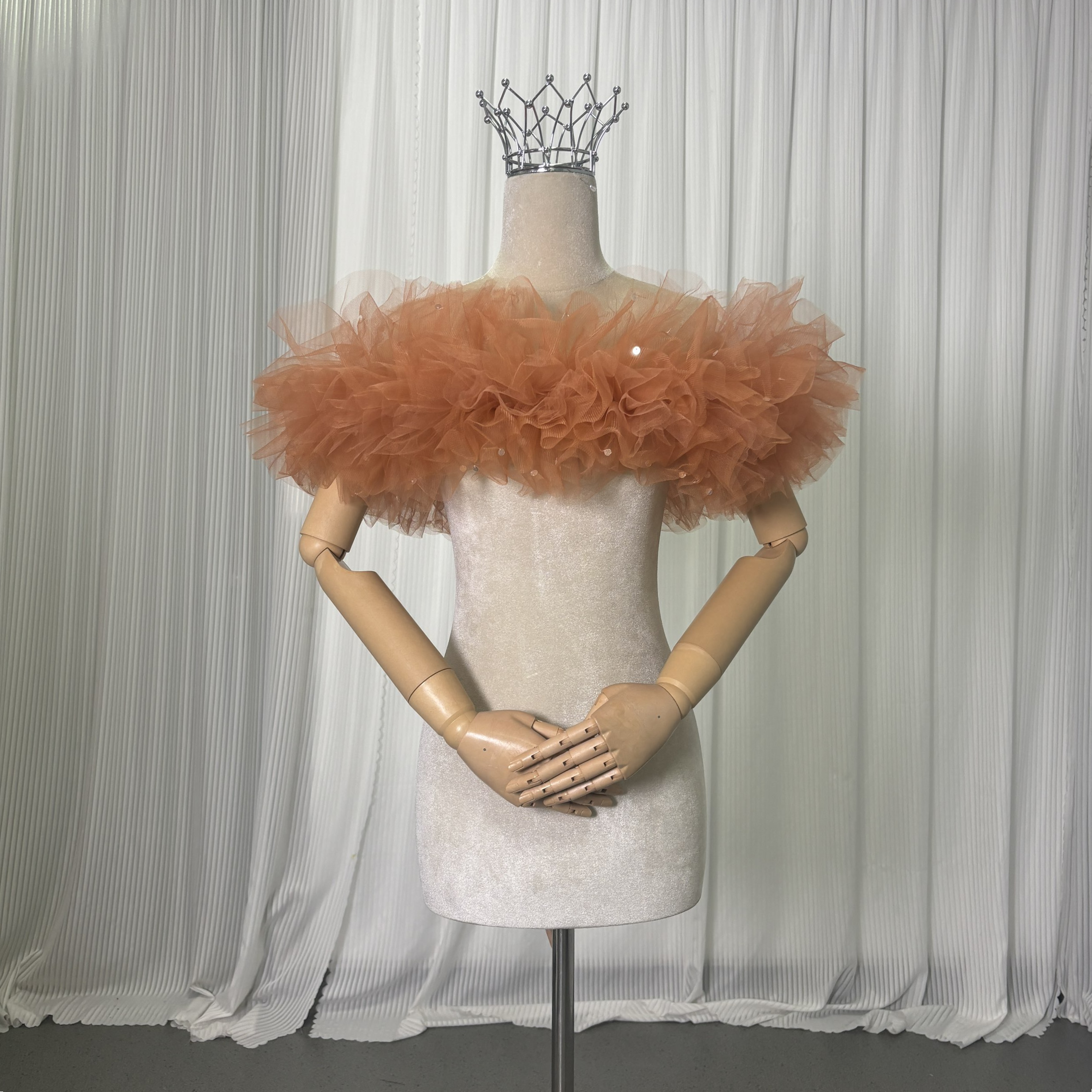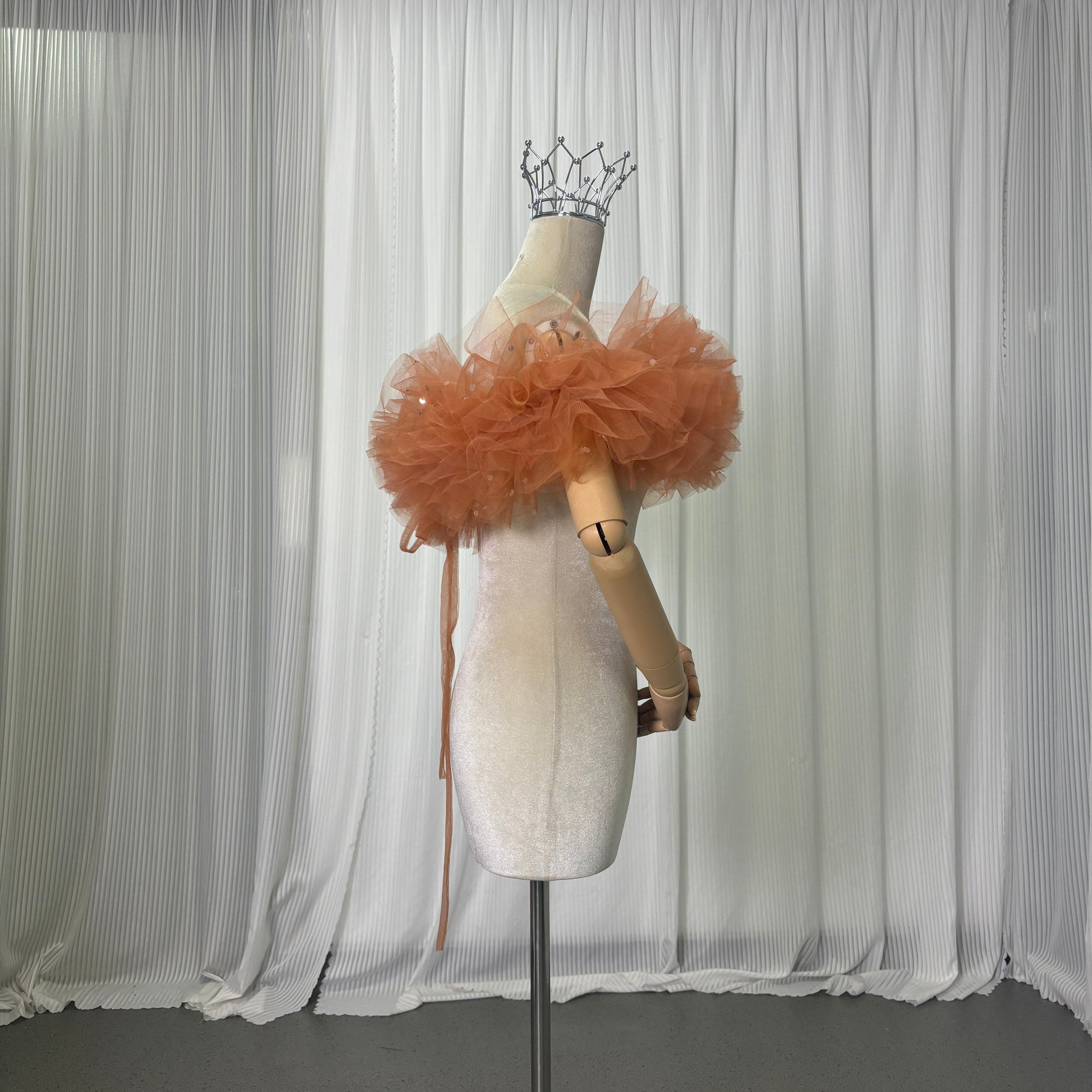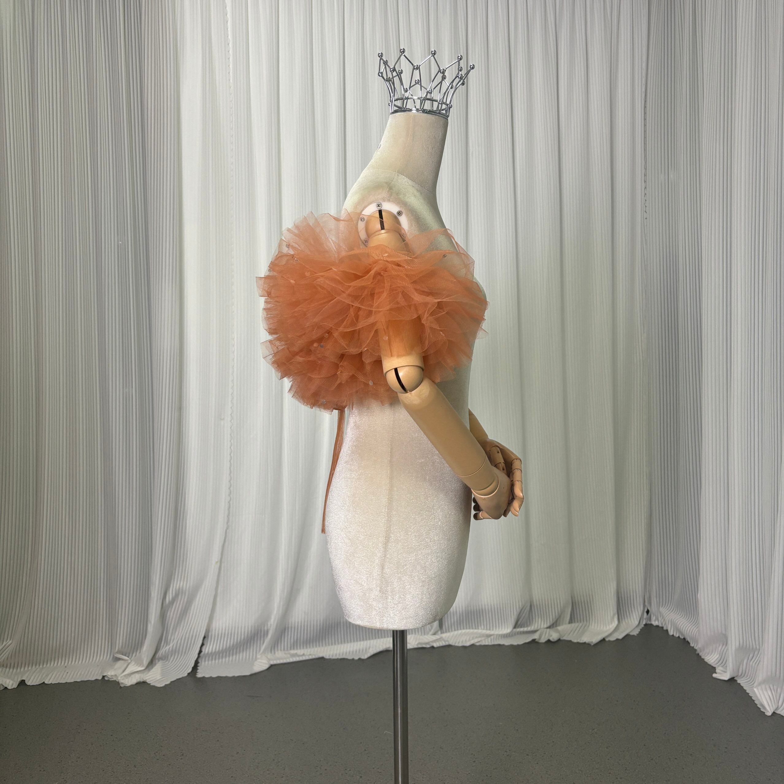 取り外し可能なオフショルダー オレンジ キラキラスパンコール 編み上げ オーダーメイド フリルオフショルダー