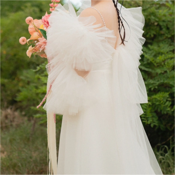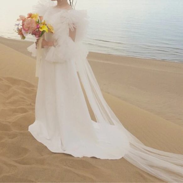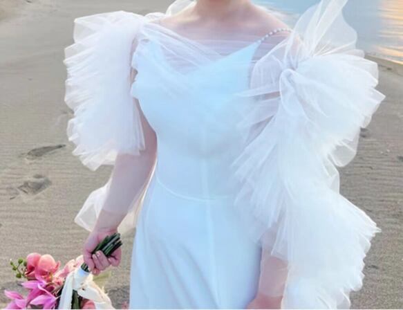 実例写真! 人気上昇!ウェディングドレス ツーピース ビーズ クレープ生地 ブライダル トップス 前撮り