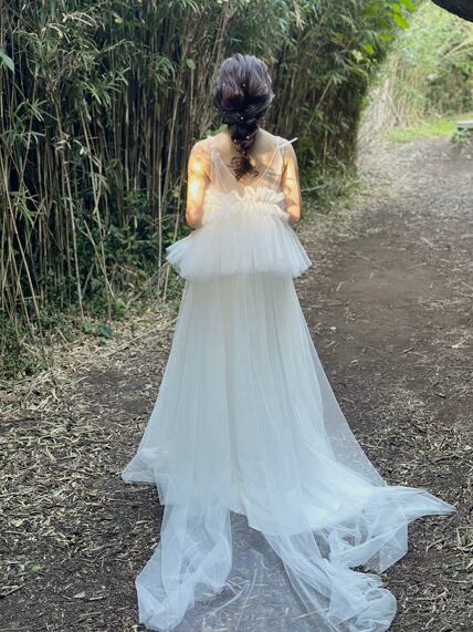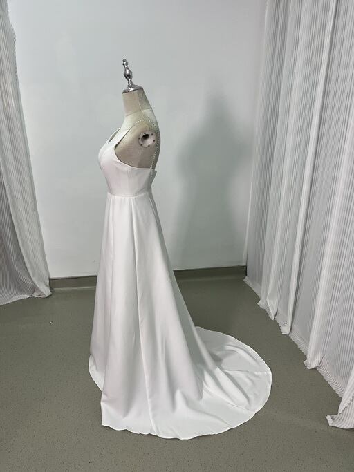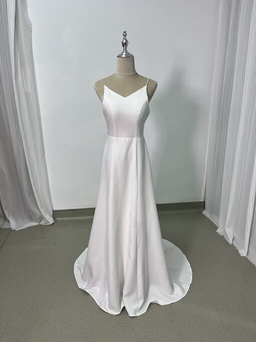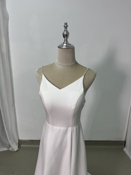実例写真!ウエディングドレス ツーピース キャミソール オフホワイト Vネックドレス クレープ生地 結婚式 前撮り