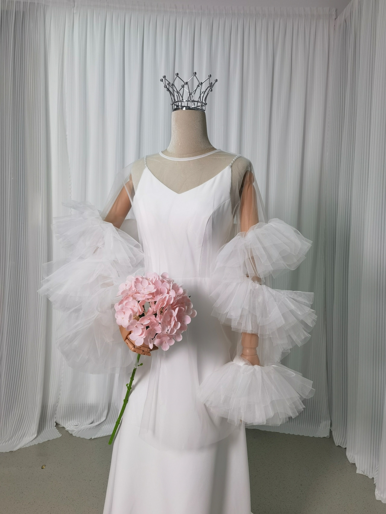 ウエディングドレス オフホワイト キャミソール トップス ハンドメイド ソフトチュール 前撮り