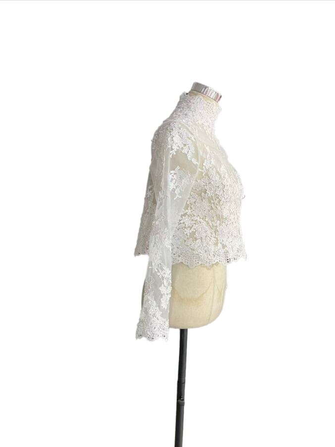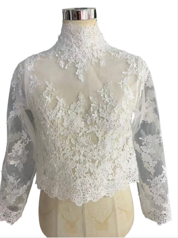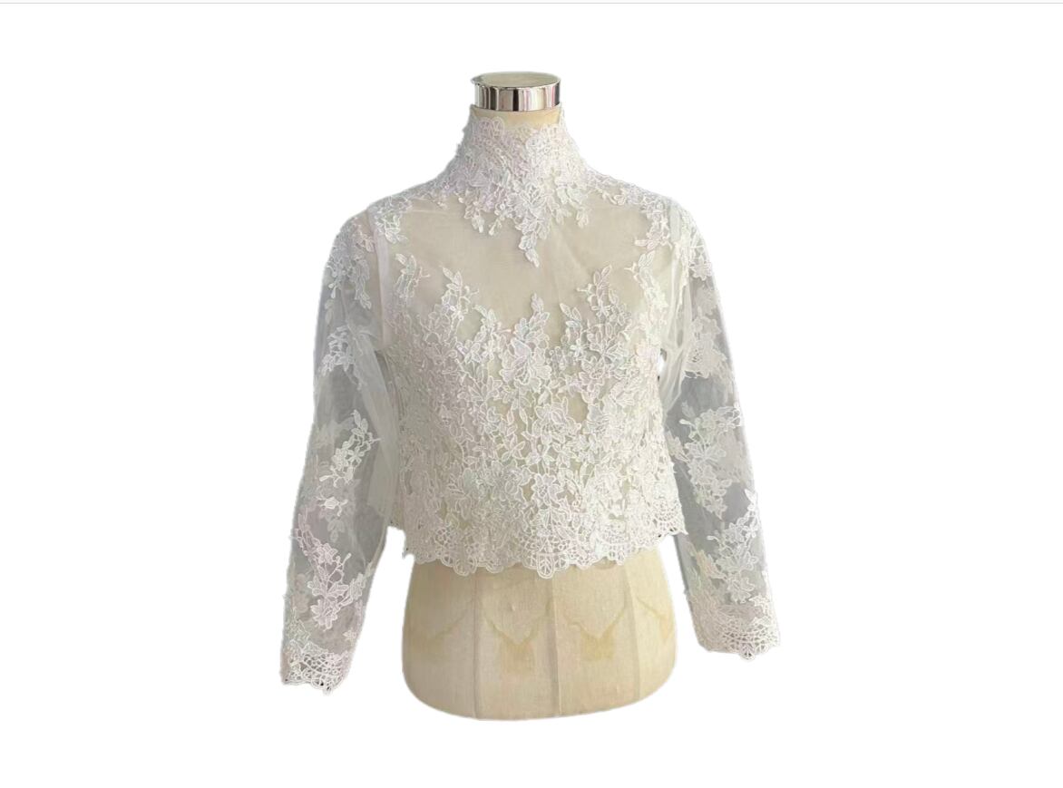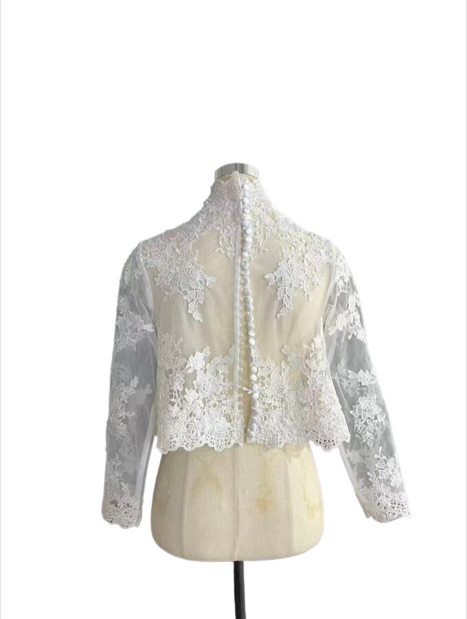 上品なくるみボタン ハイネック 長袖 レースボレロ トップス ウエディングドレス
