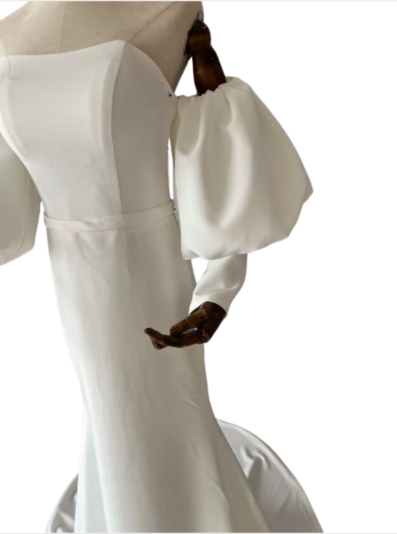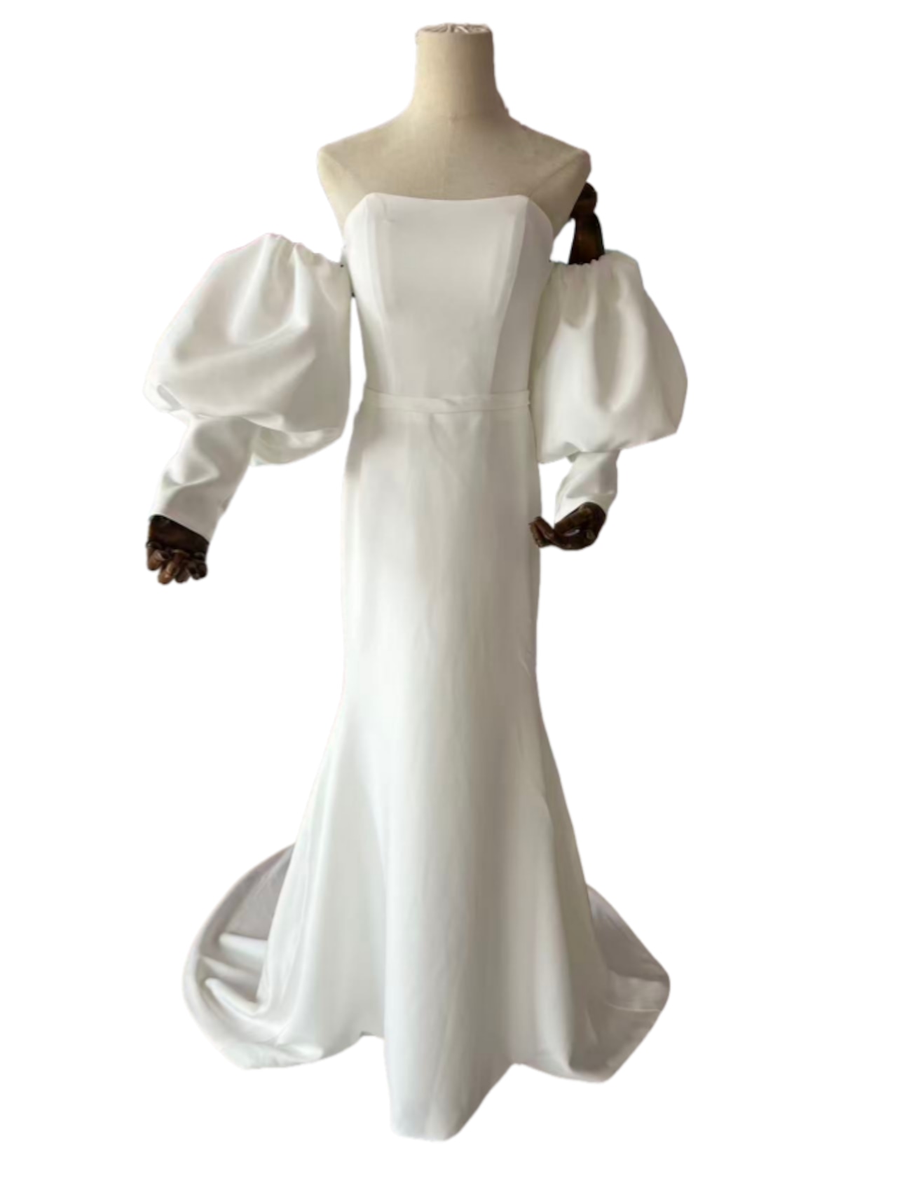 フランス風 ベアトップ ウエディングドレス 前撮り 取り外し可能 姫袖 マーメイドライン ロングドレス 挙式 二次会