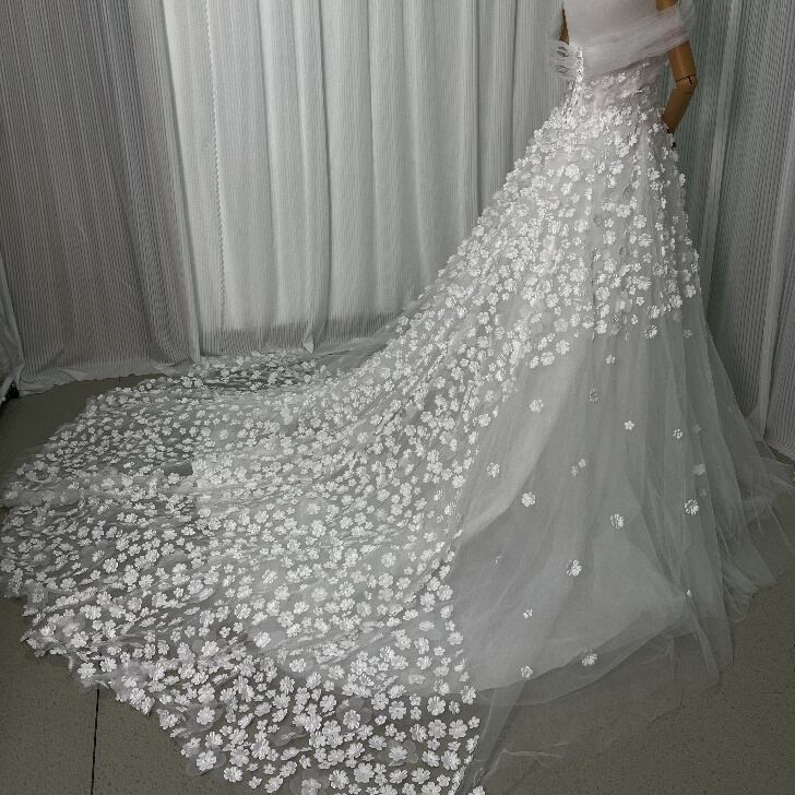 ウェディングドレス パール オフショルダー デザイン感 編み上げ プリンセスライン 花嫁