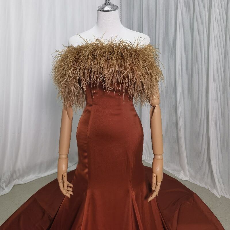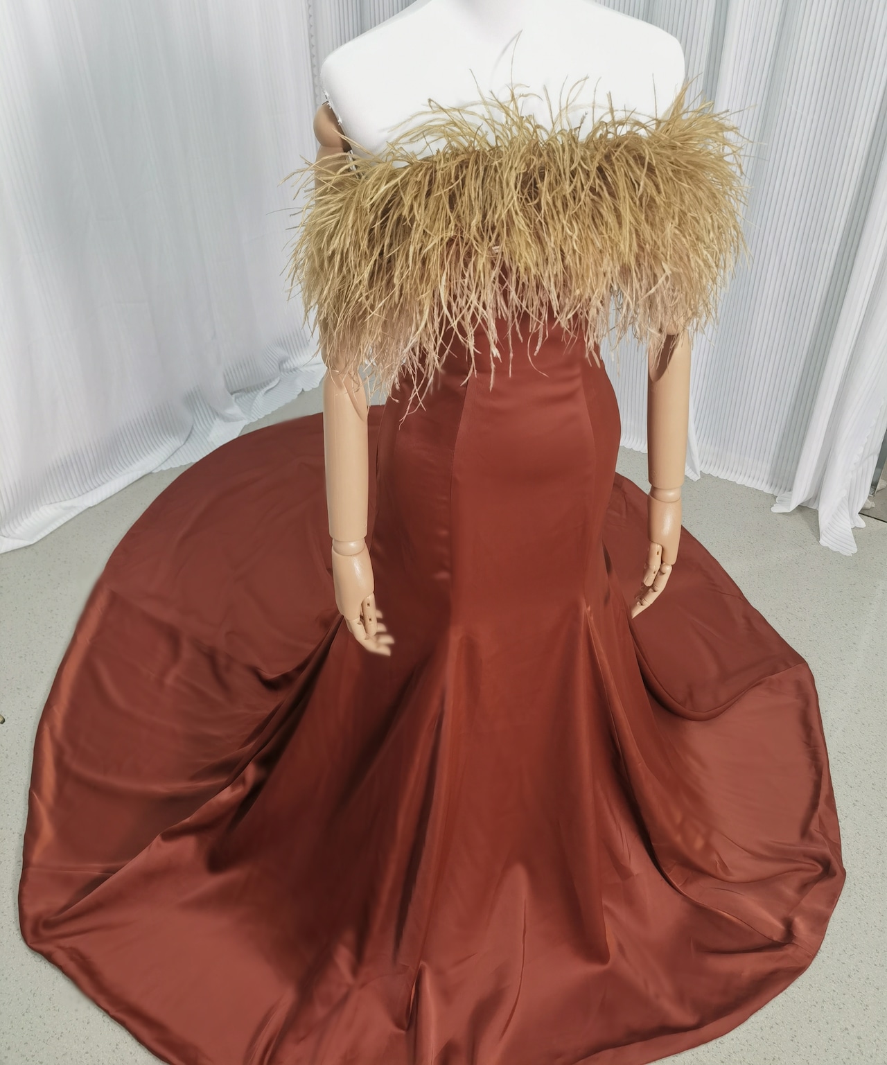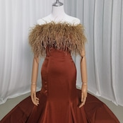 カラードレス マーメイドライン フェザードレス 滑らか テラコッタ色 くるみボタン 結婚式 抜群のおしゃれ見え