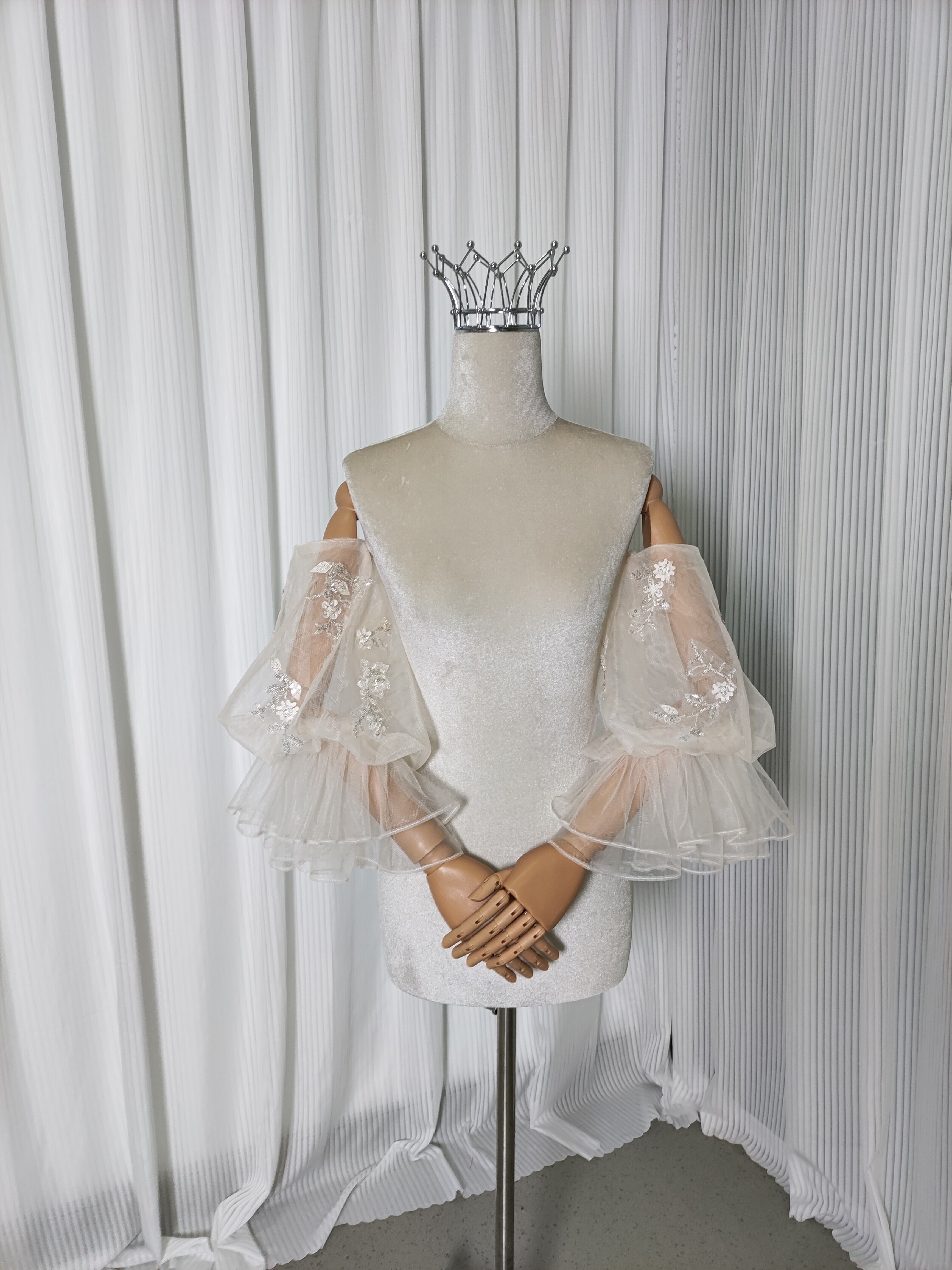 パフスリーブ 取り外し 繊細レース シャンパン色 色直し 前撮り ストレッチ 肩出し