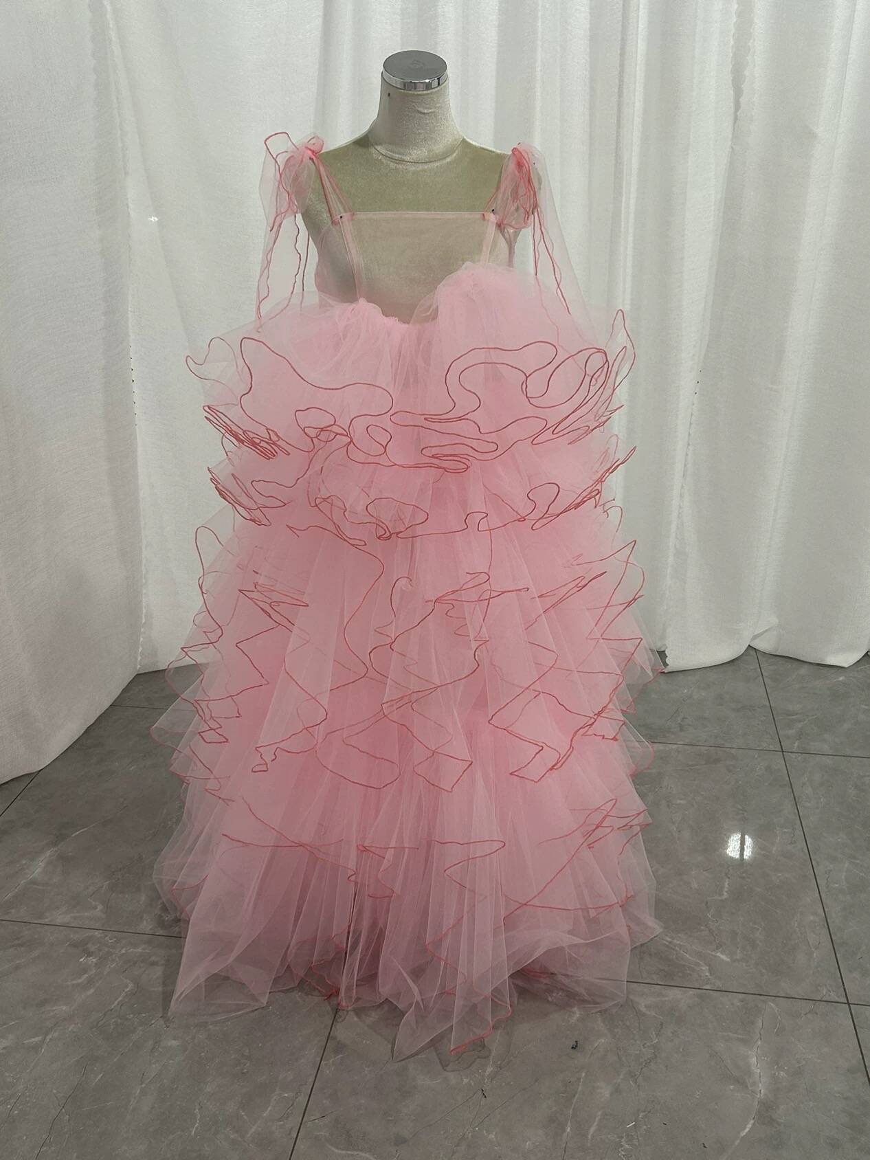 オーバードレス カラードレス ピンク プリンセスライン アシンメトリー キャミソール パイピング