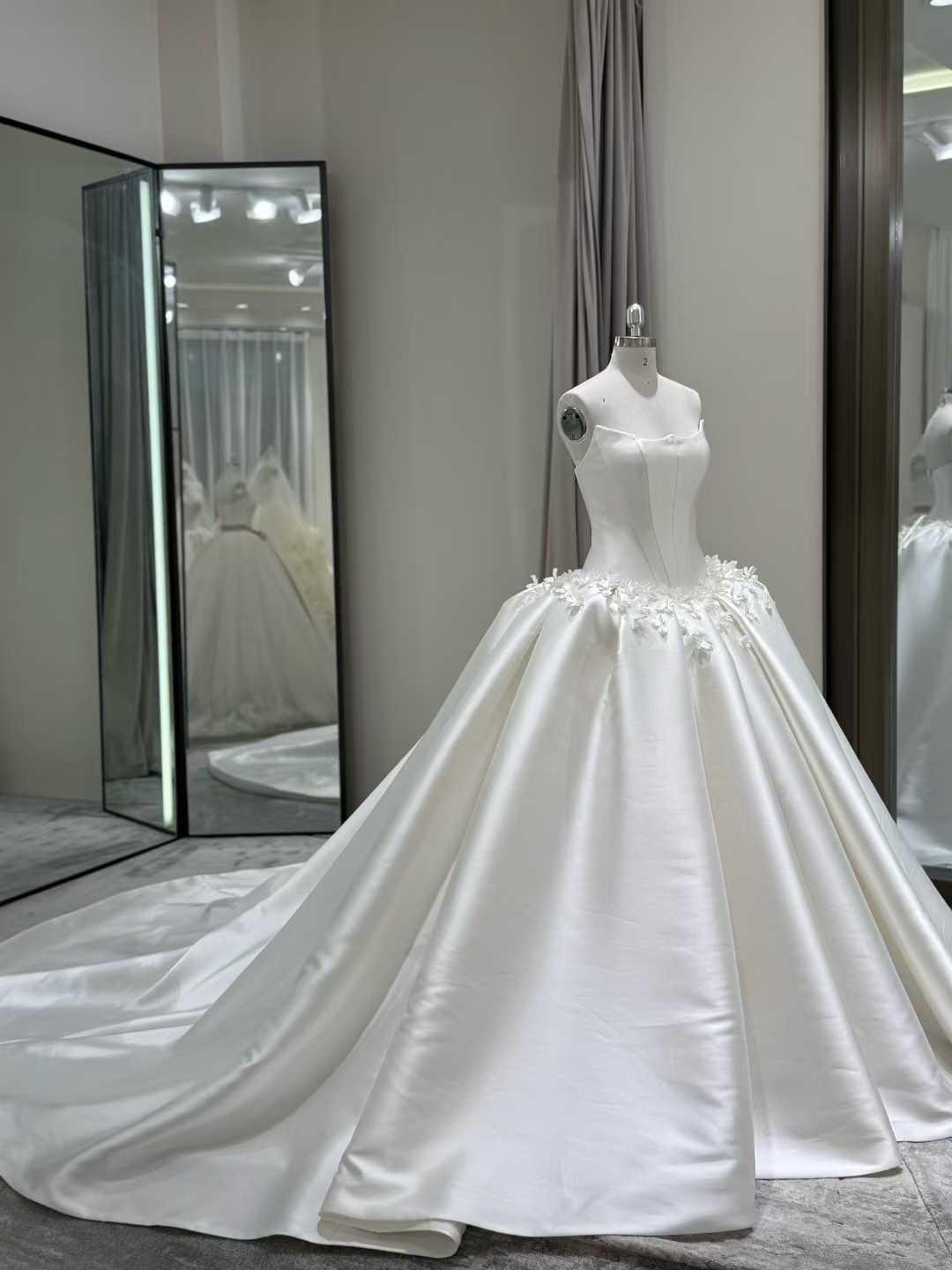 ウェディングドレス ビスチェドレス フレアスカート 花モチーフ ミカドサテン 高見え 結婚式/披露宴