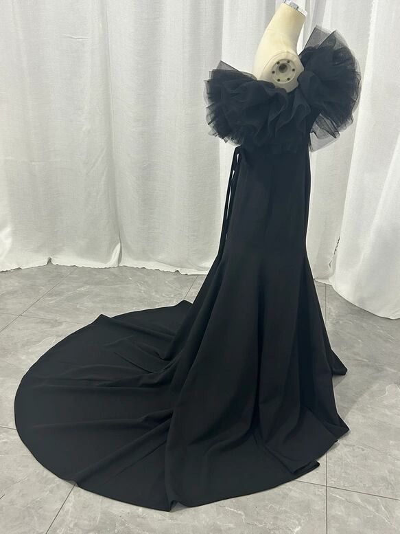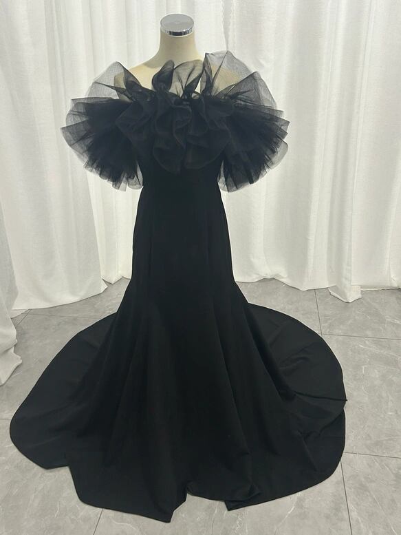 上品!パーティードレス ブラック オフショルダー マーメイドライン 披露宴