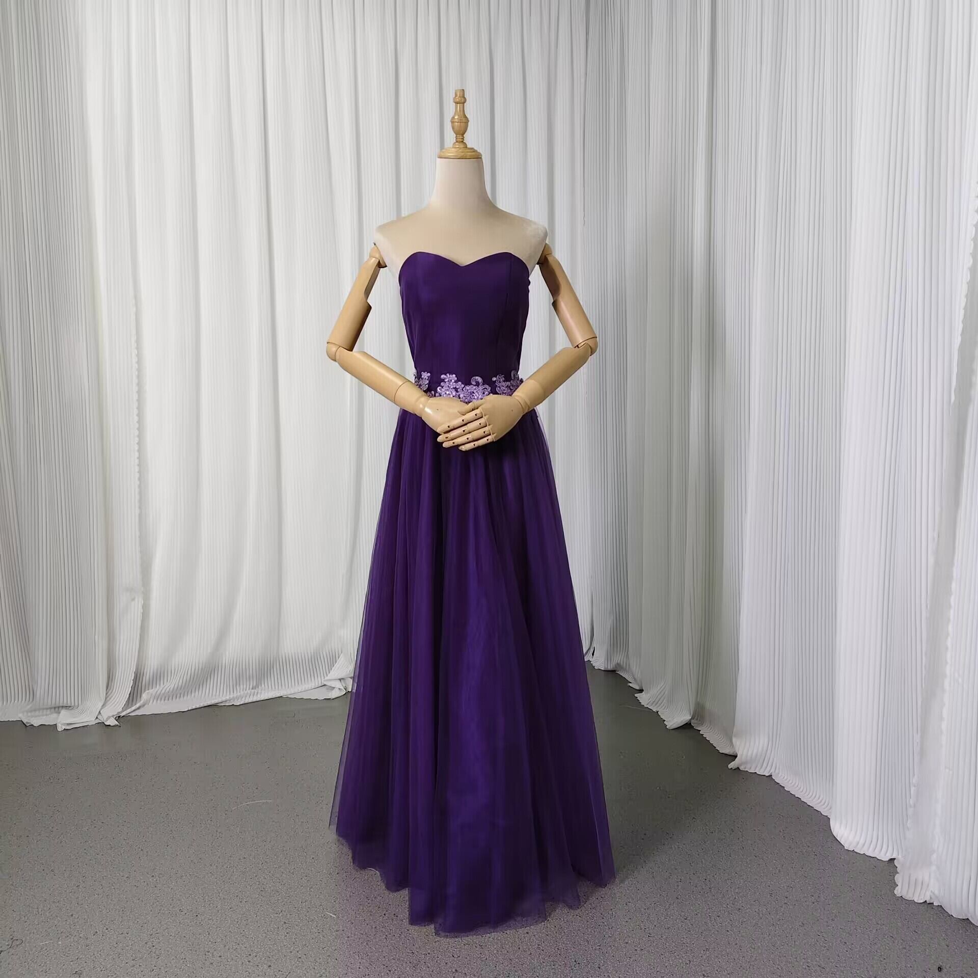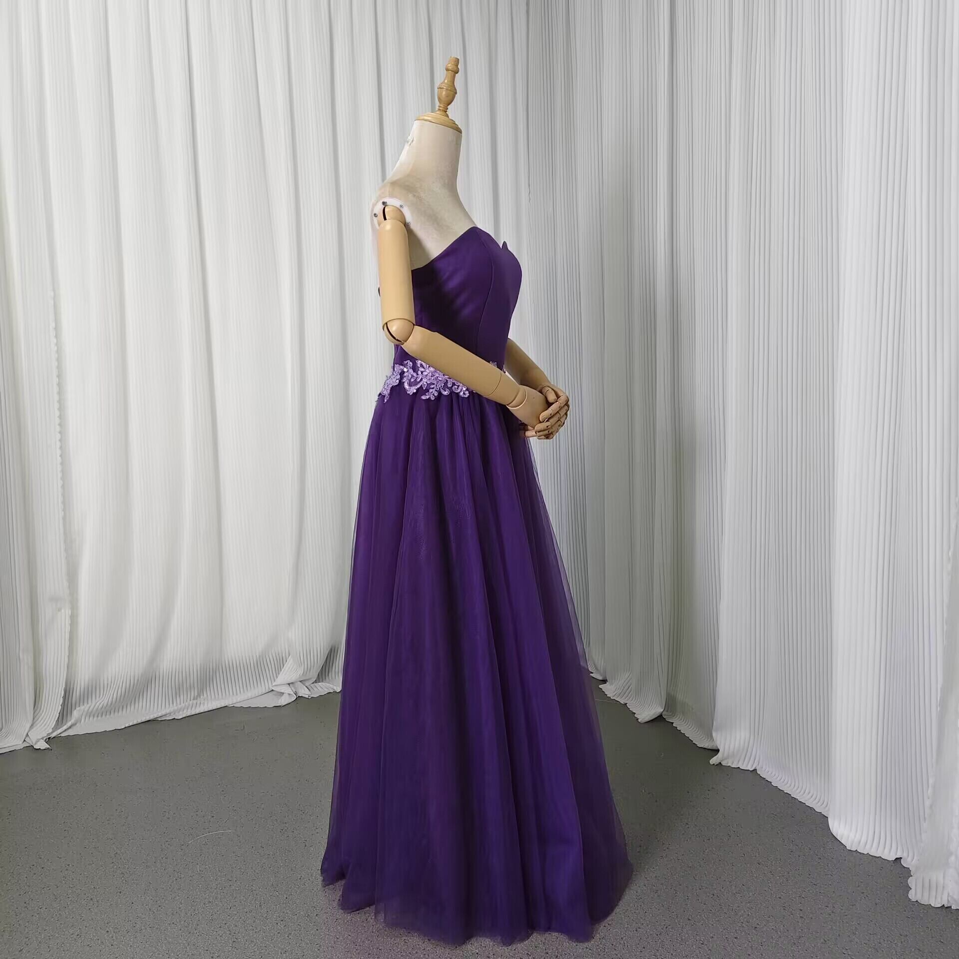 カラードレス ビスチェタイプ パープル 床付く チュールスカート ピアノ演奏会/音楽会 エレガント