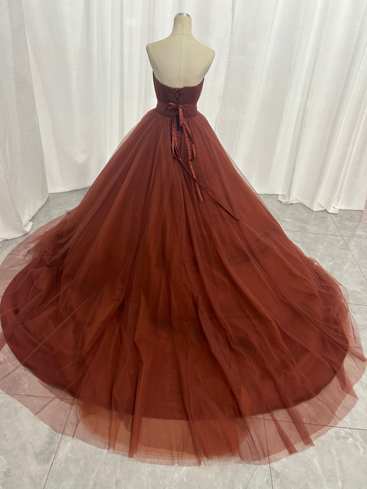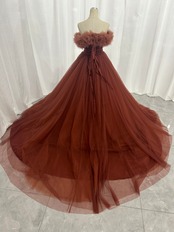 カラードレス 可愛い テラコッタ色 結婚式 前撮り ポンチョ ソフトチュール Aライン トレーン エレガント