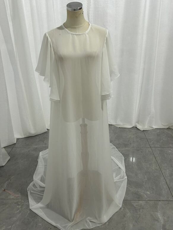 オフホワイト オーバードレス シースルー ふわふわ ロングトレーン 二次会