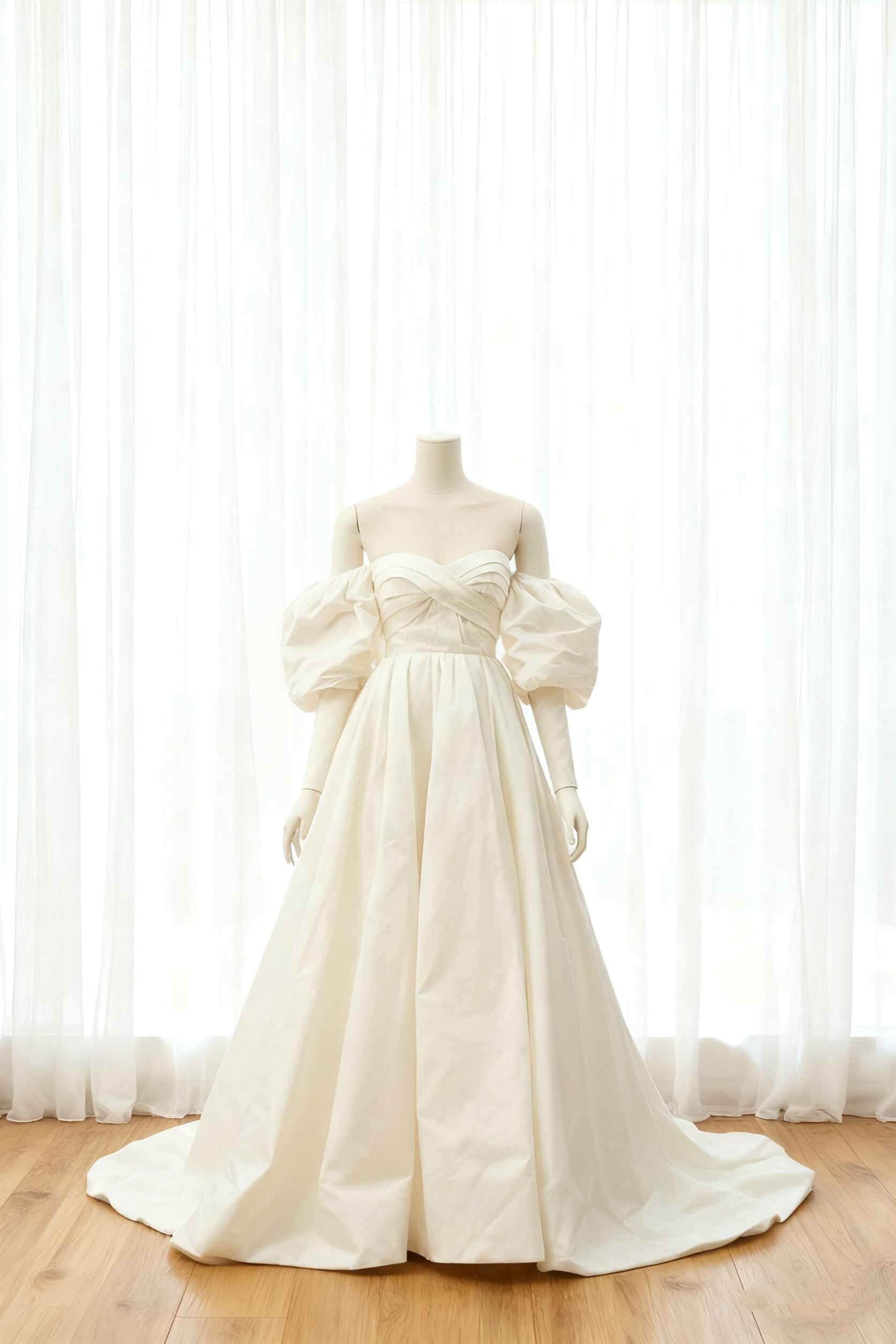 パーティードレス パフスリーブ シルクタフタ アイボリー ハンドドレープ 前撮り 2次会