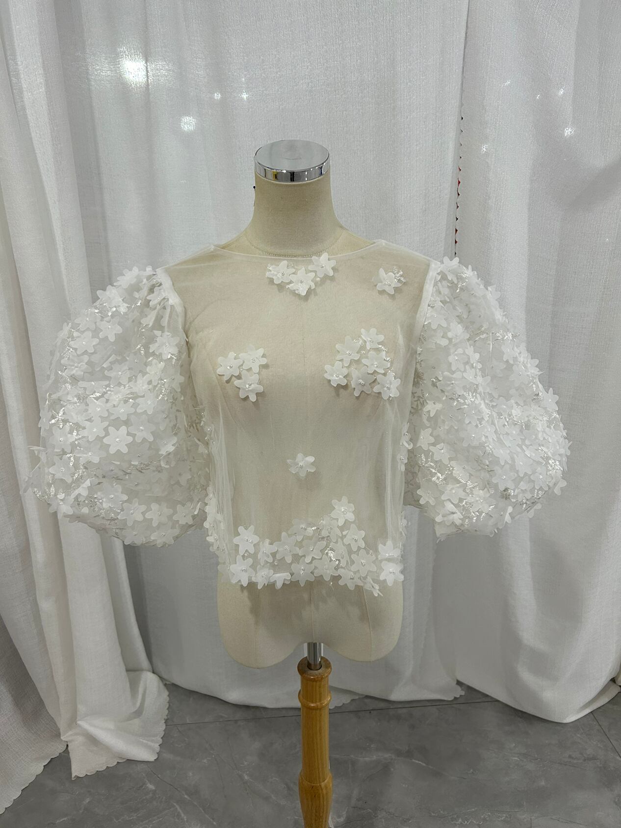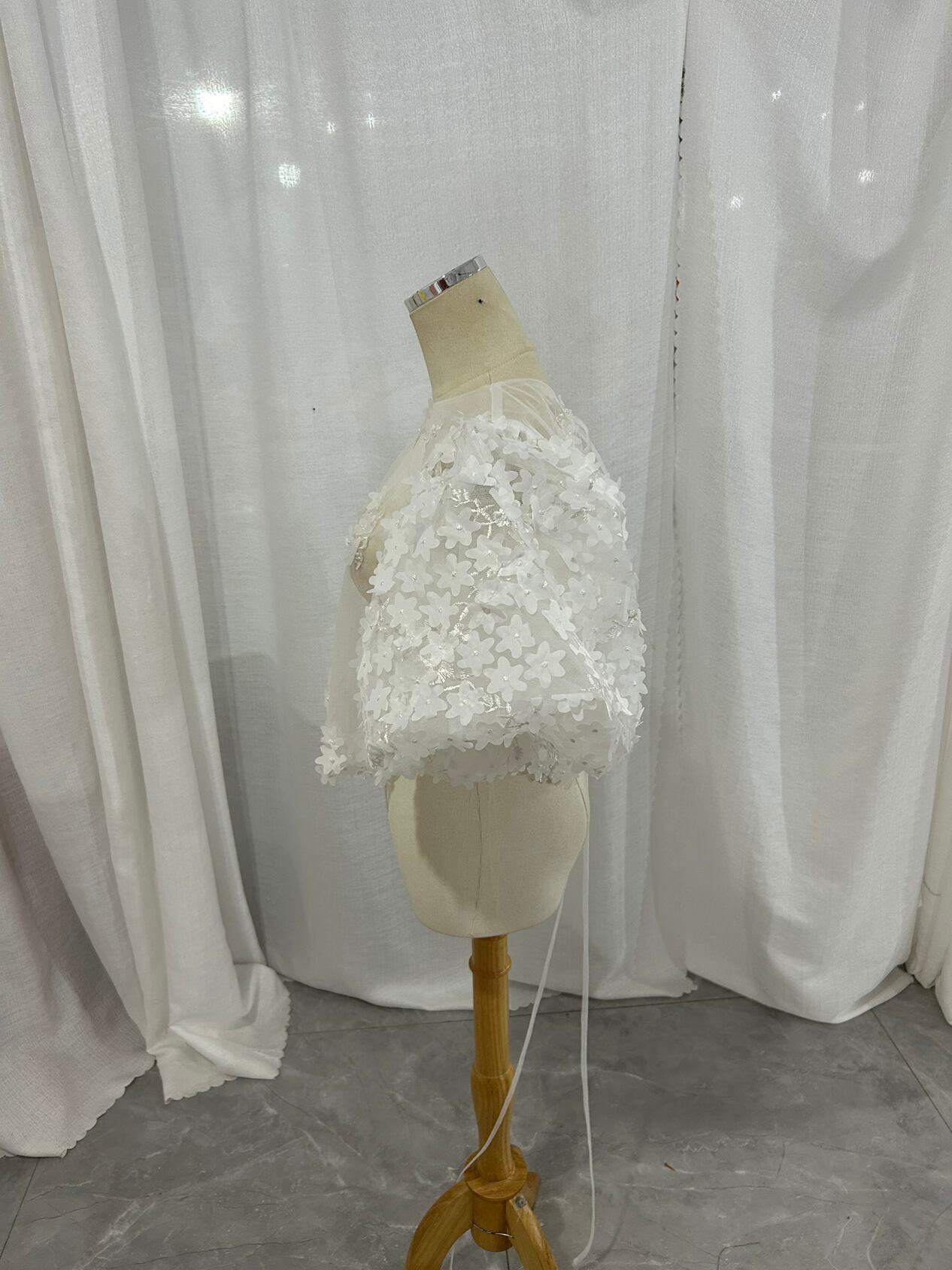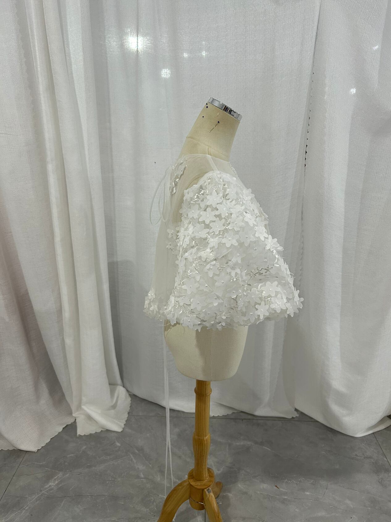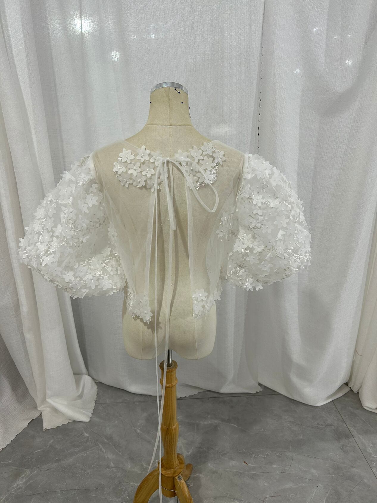 ビスチェボレロ 花モチーフ 3D立体レース刺繍 バルーンスリーブ プリンセスライン 花嫁/ウェディングドレス