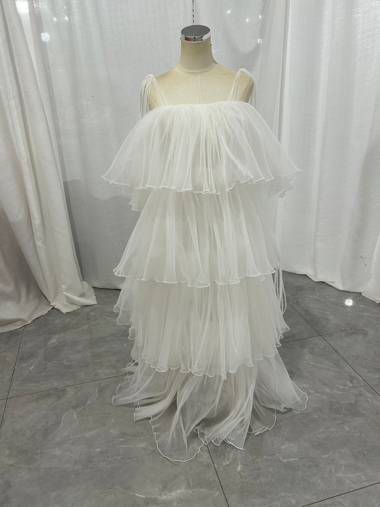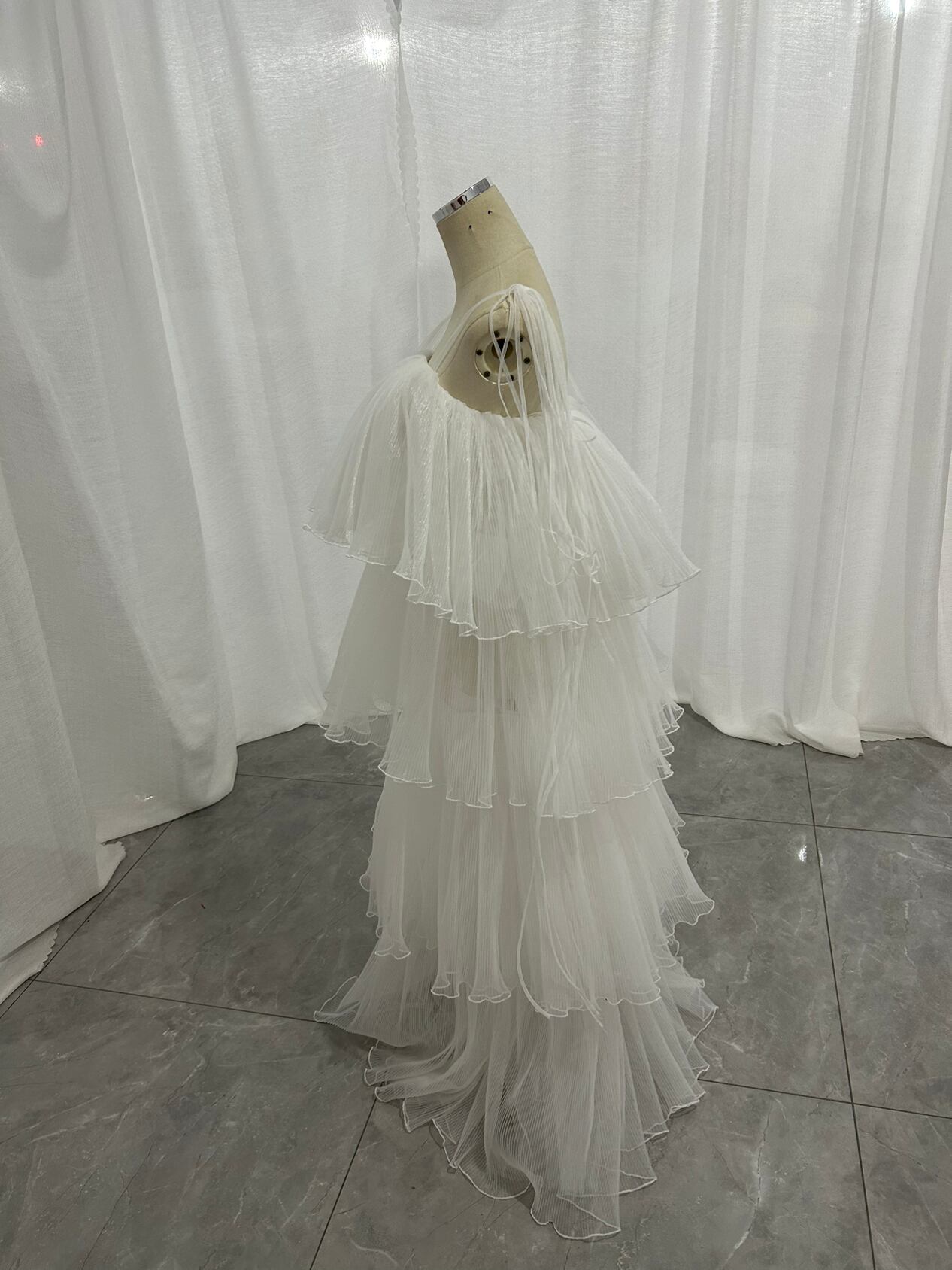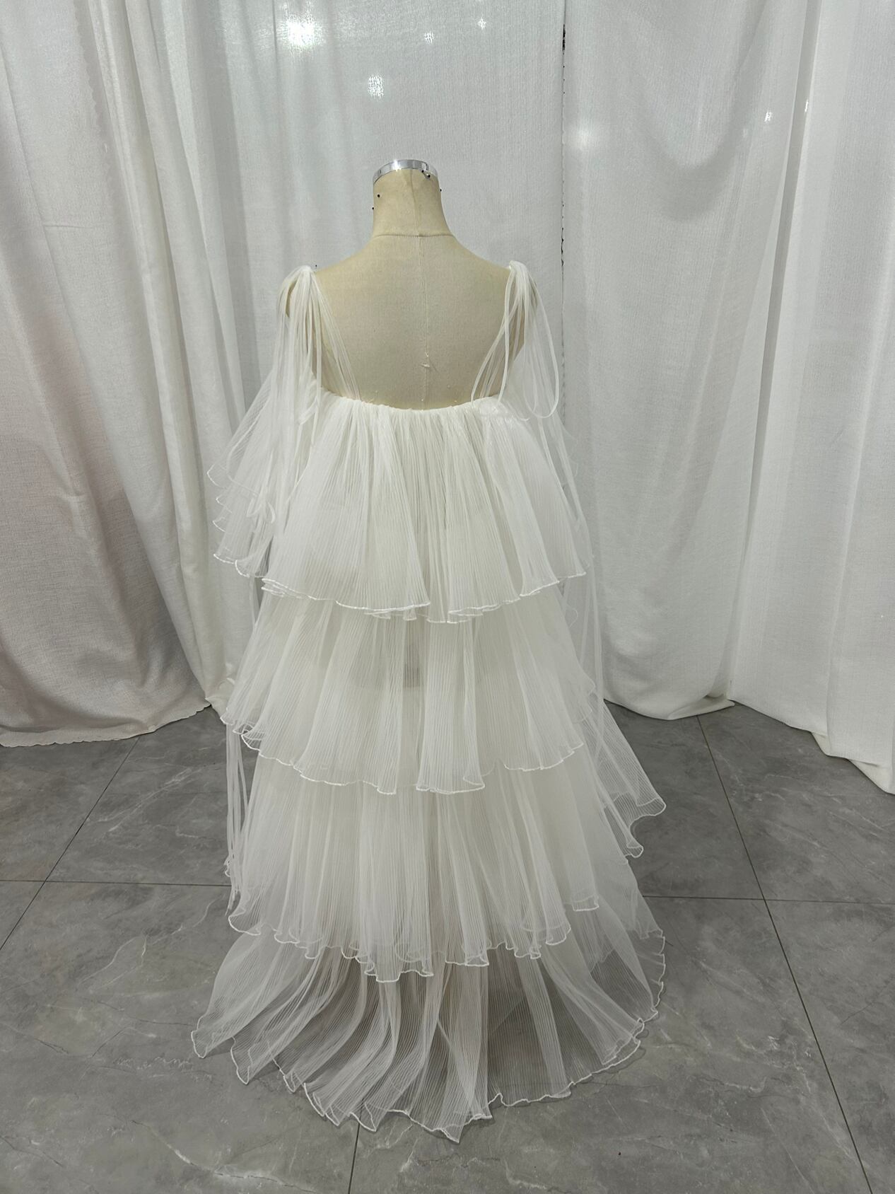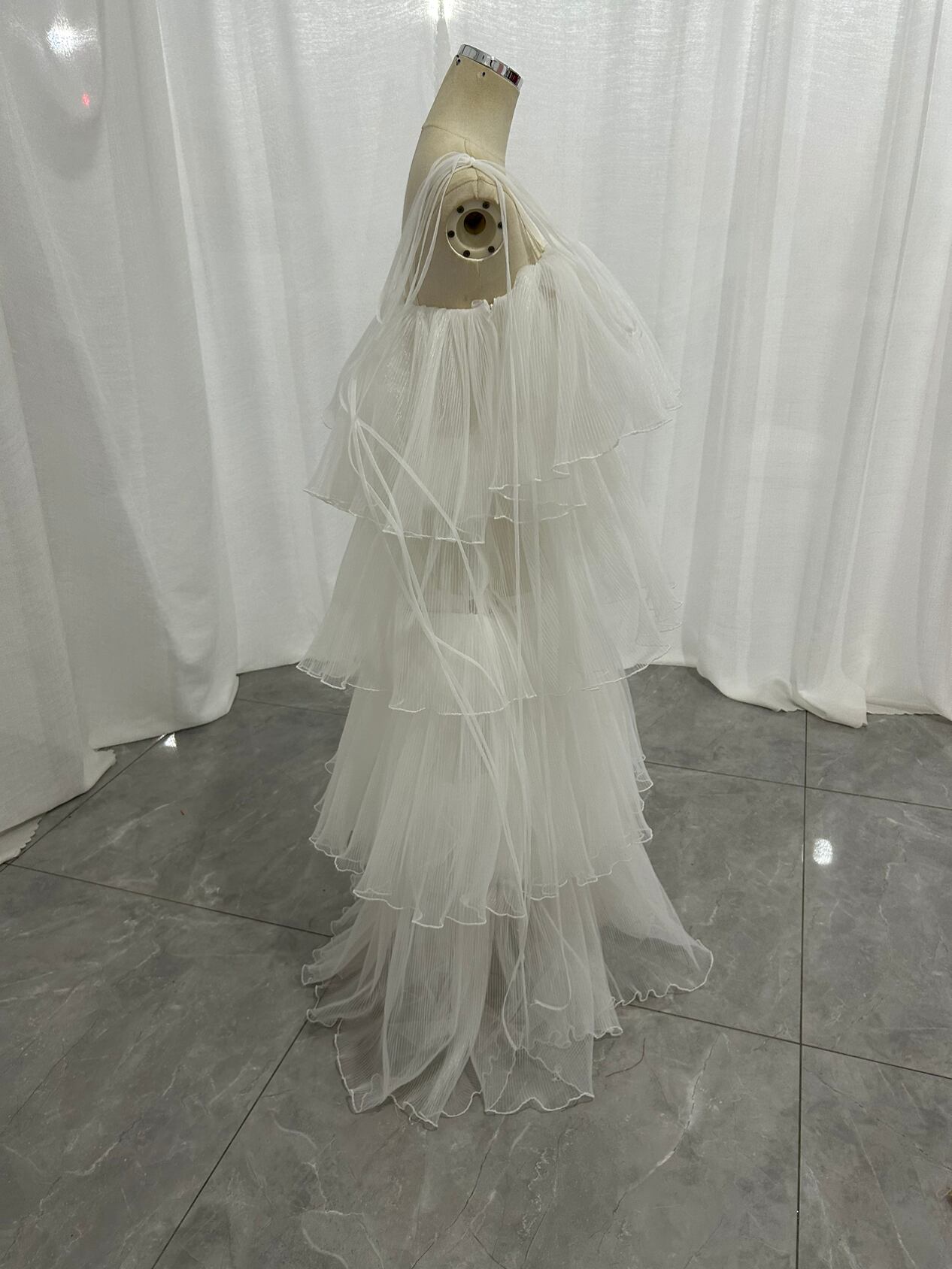 ウエディングドレス オーバードレス キャミソール プリーツドレス ティアードのドレス オフホワイト 色直し