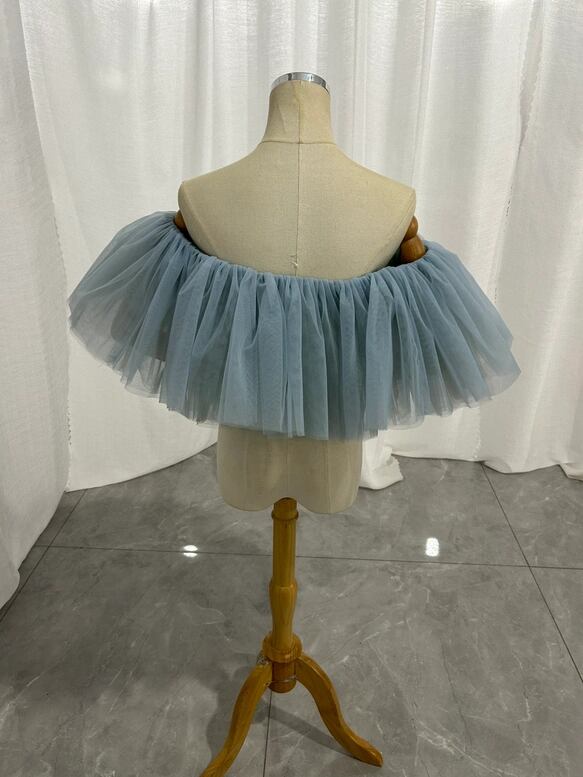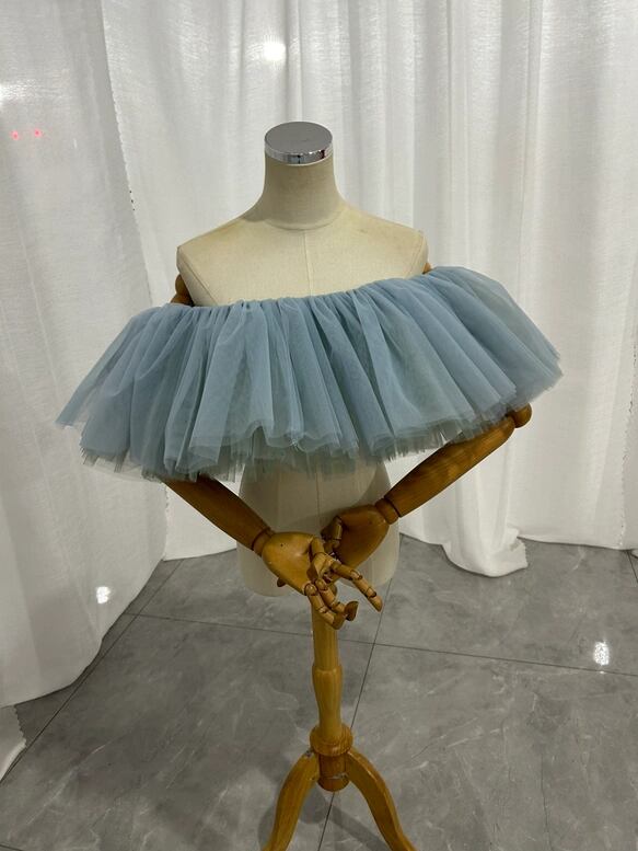 取り外しオフショルダー ブルー ソフトチュール ストレッチ 花嫁/ウェディングドレス