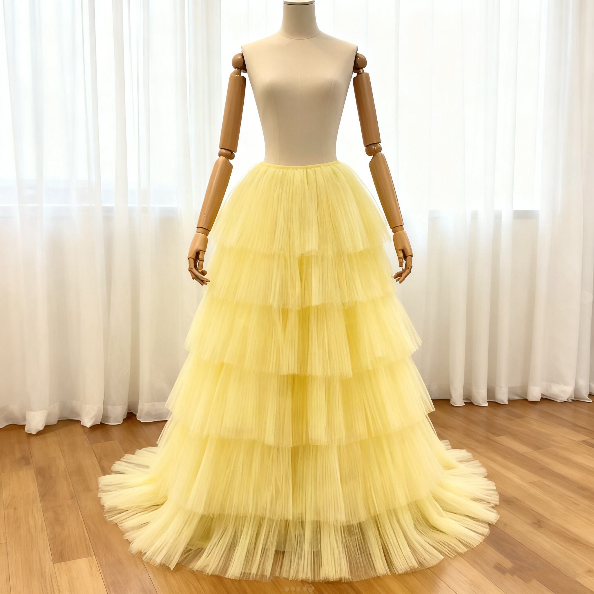 オーバースカート イエロー プリーツスカート ティアードのドレス プリンセスライン 結婚式 前撮り
