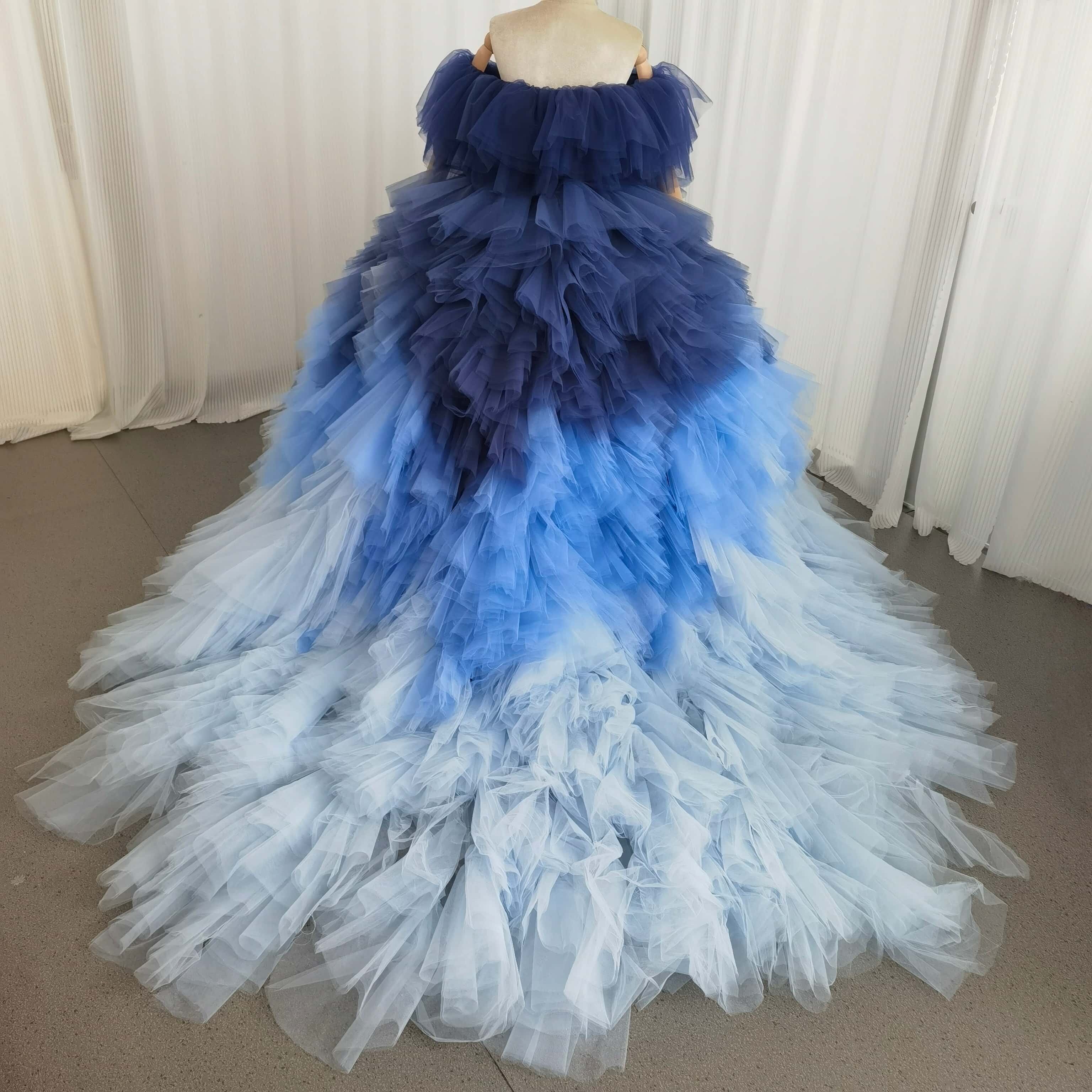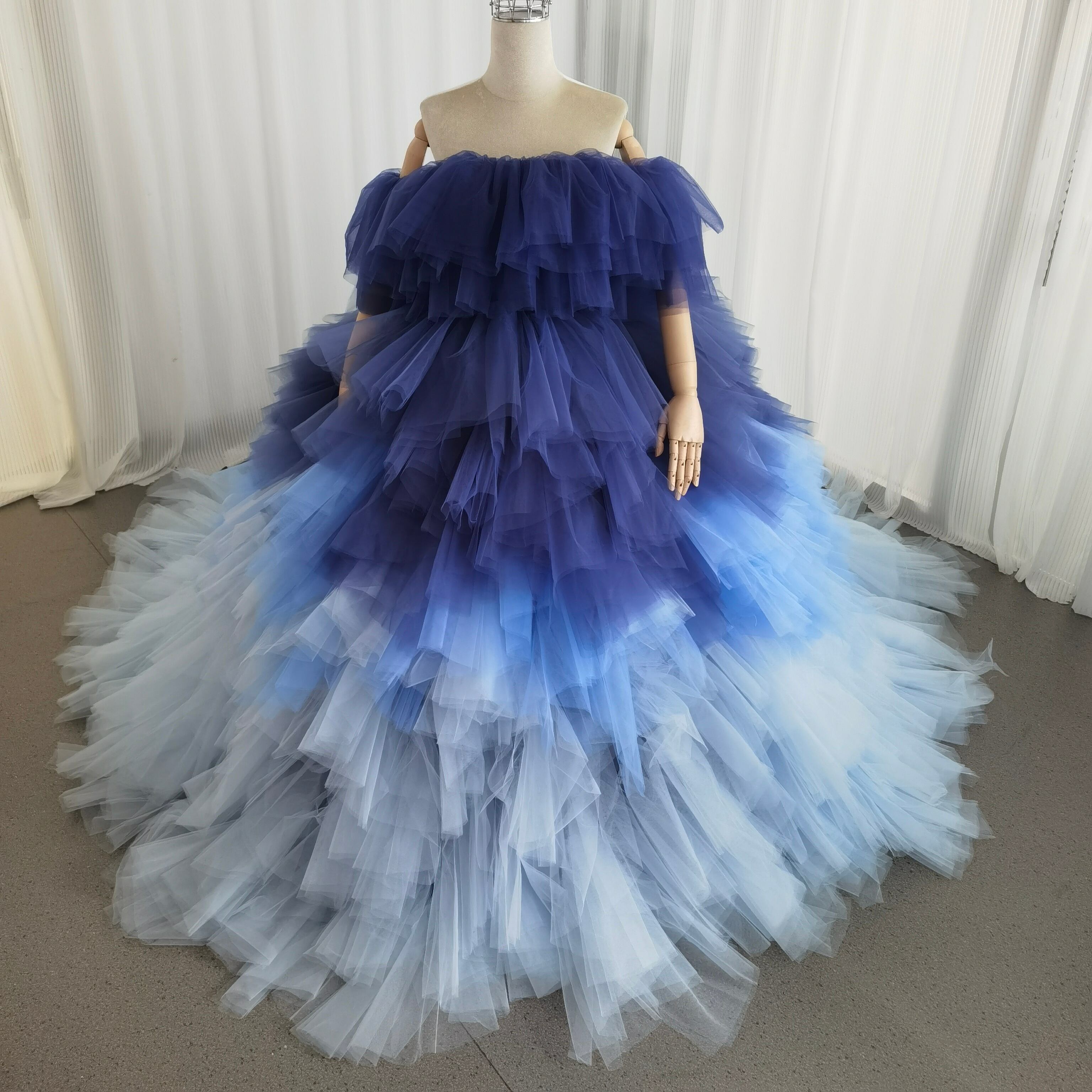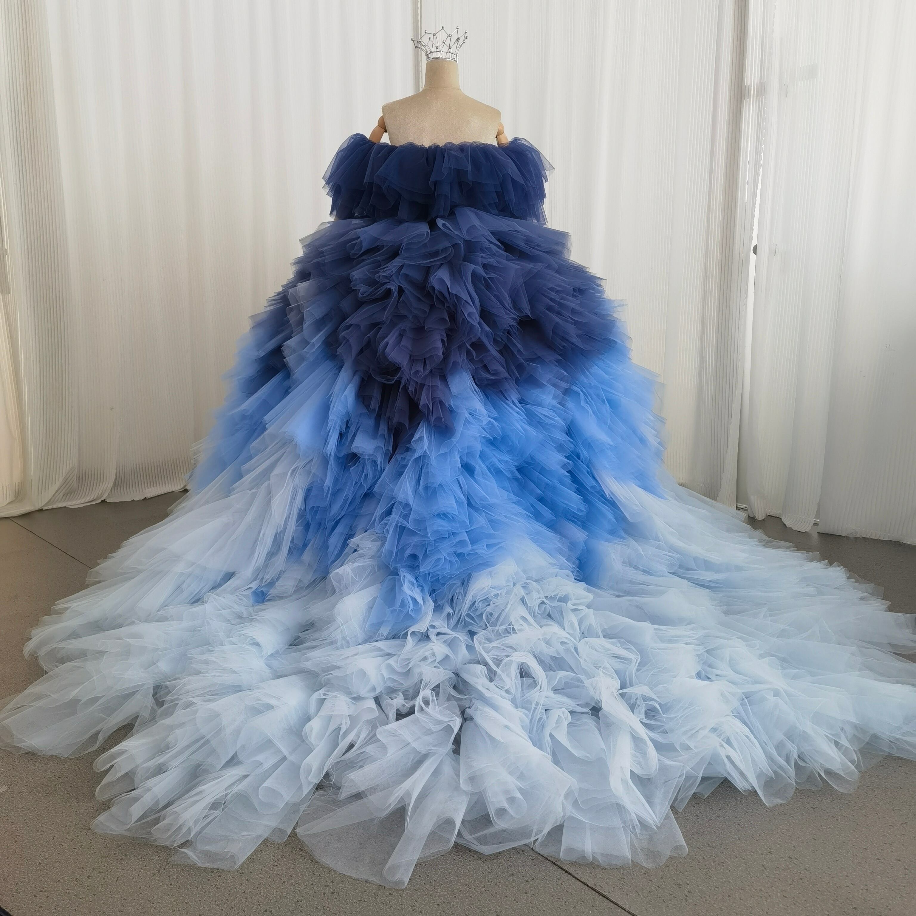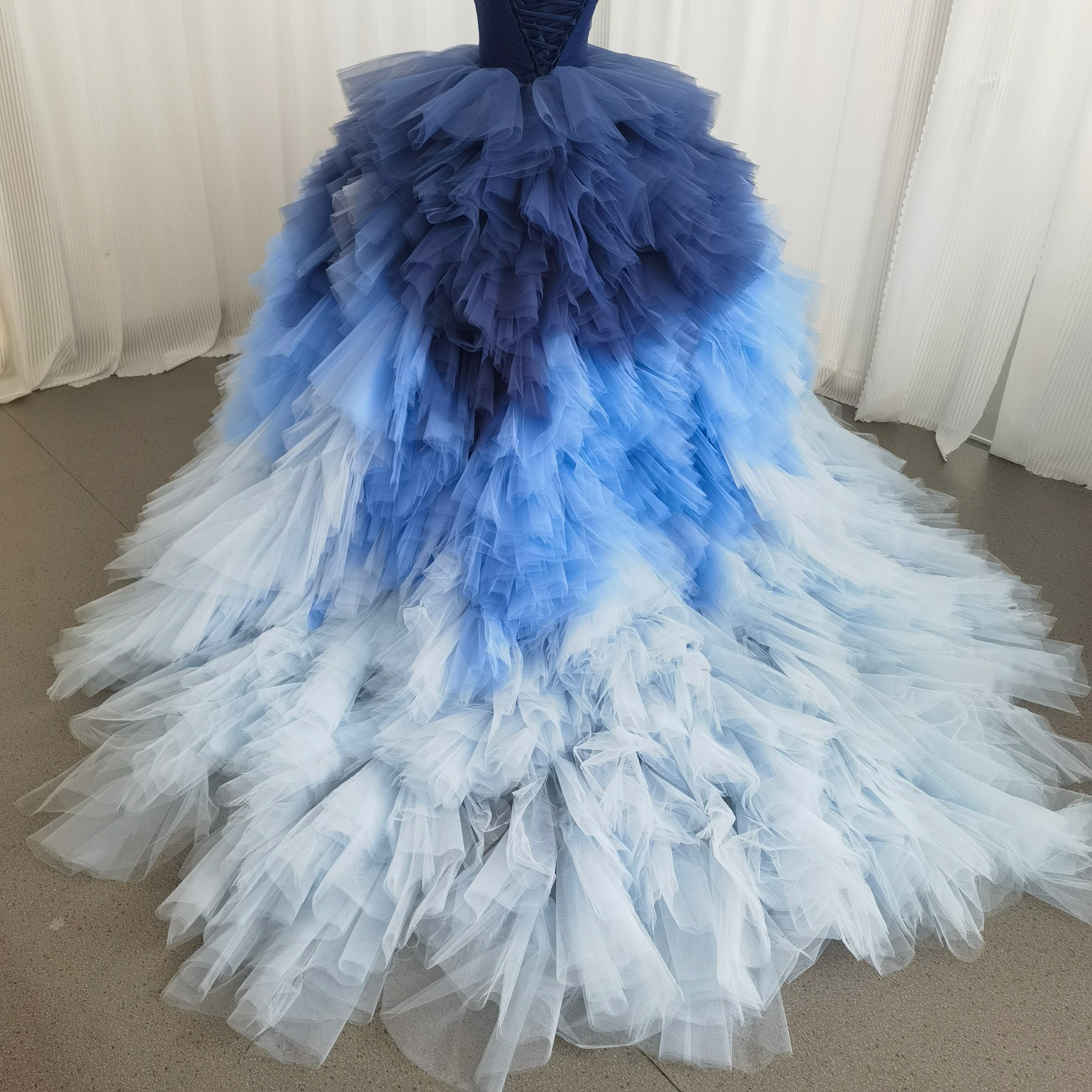 カラードレス 3ways グラデーションドレス 取り外し可能なオフショルダー ブルー 抜群におしゃれ度が際立つ