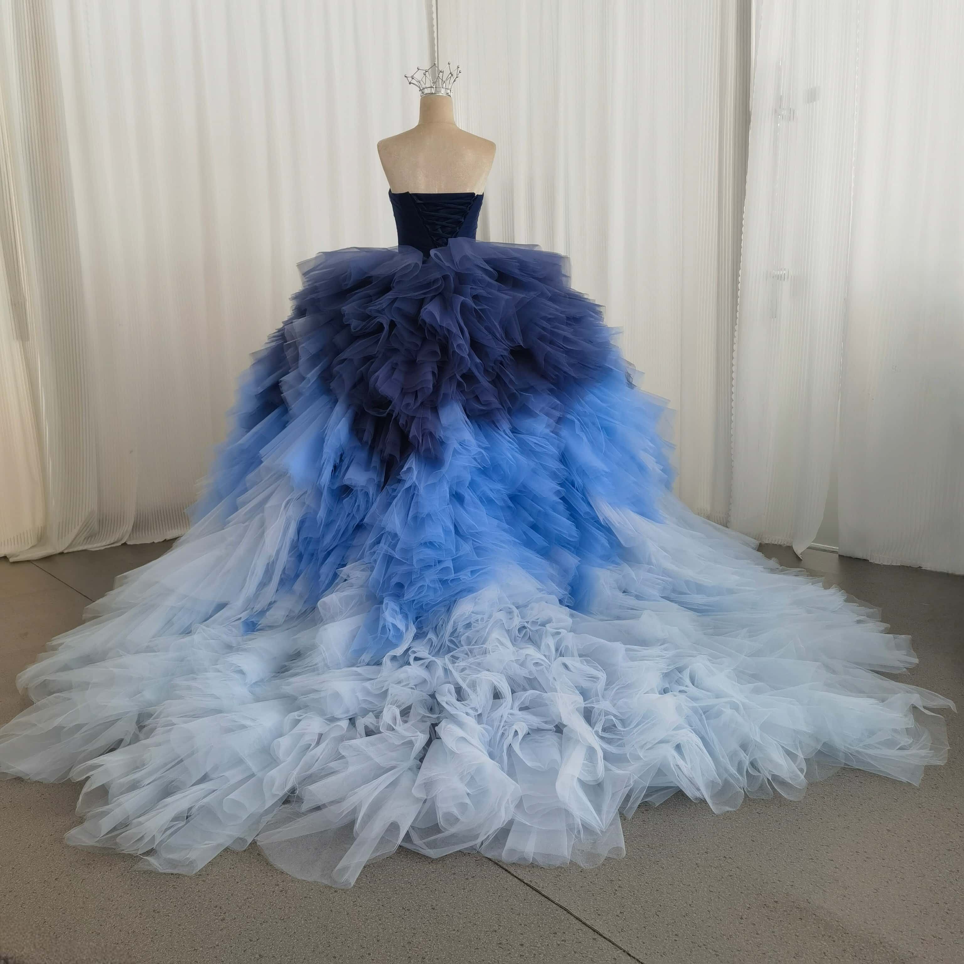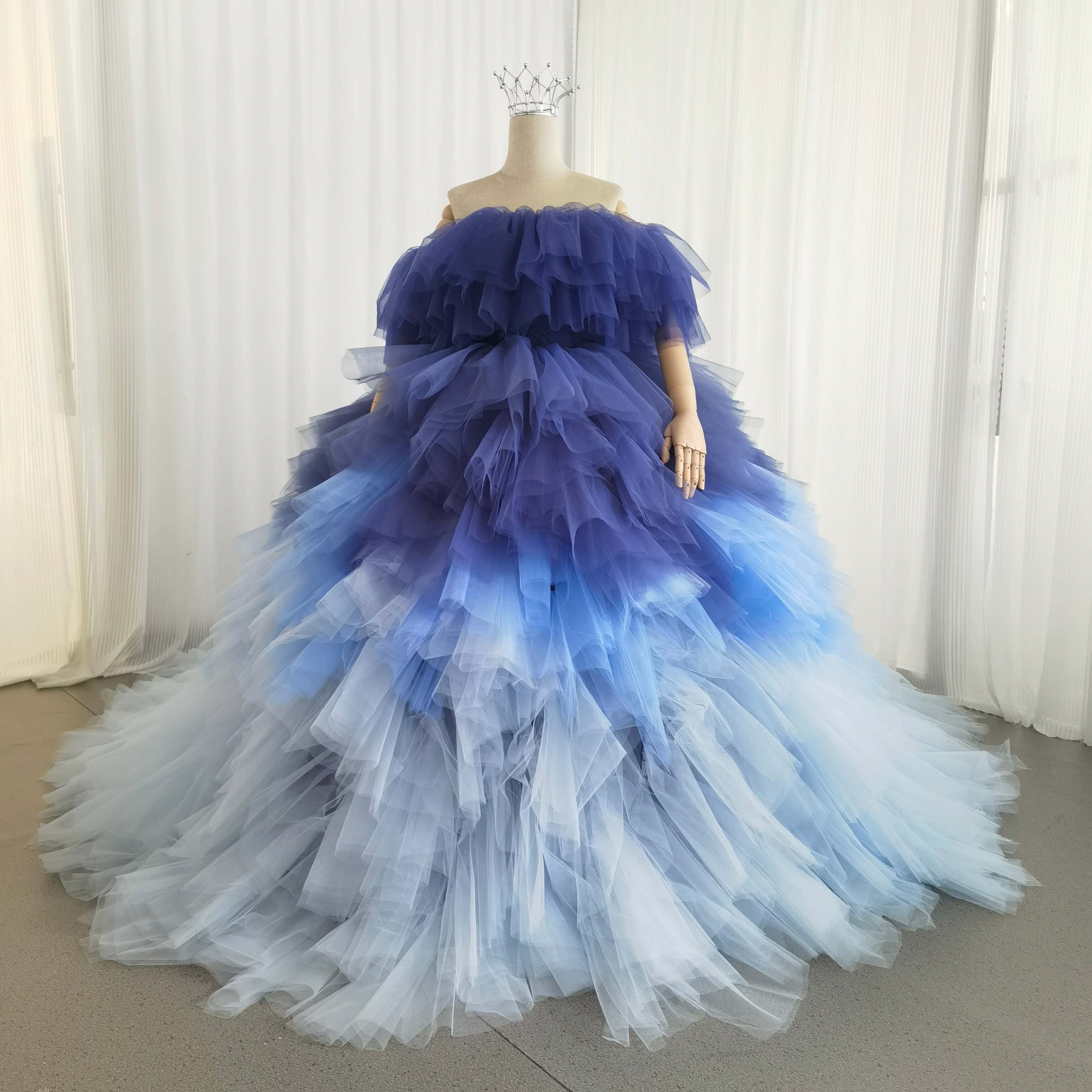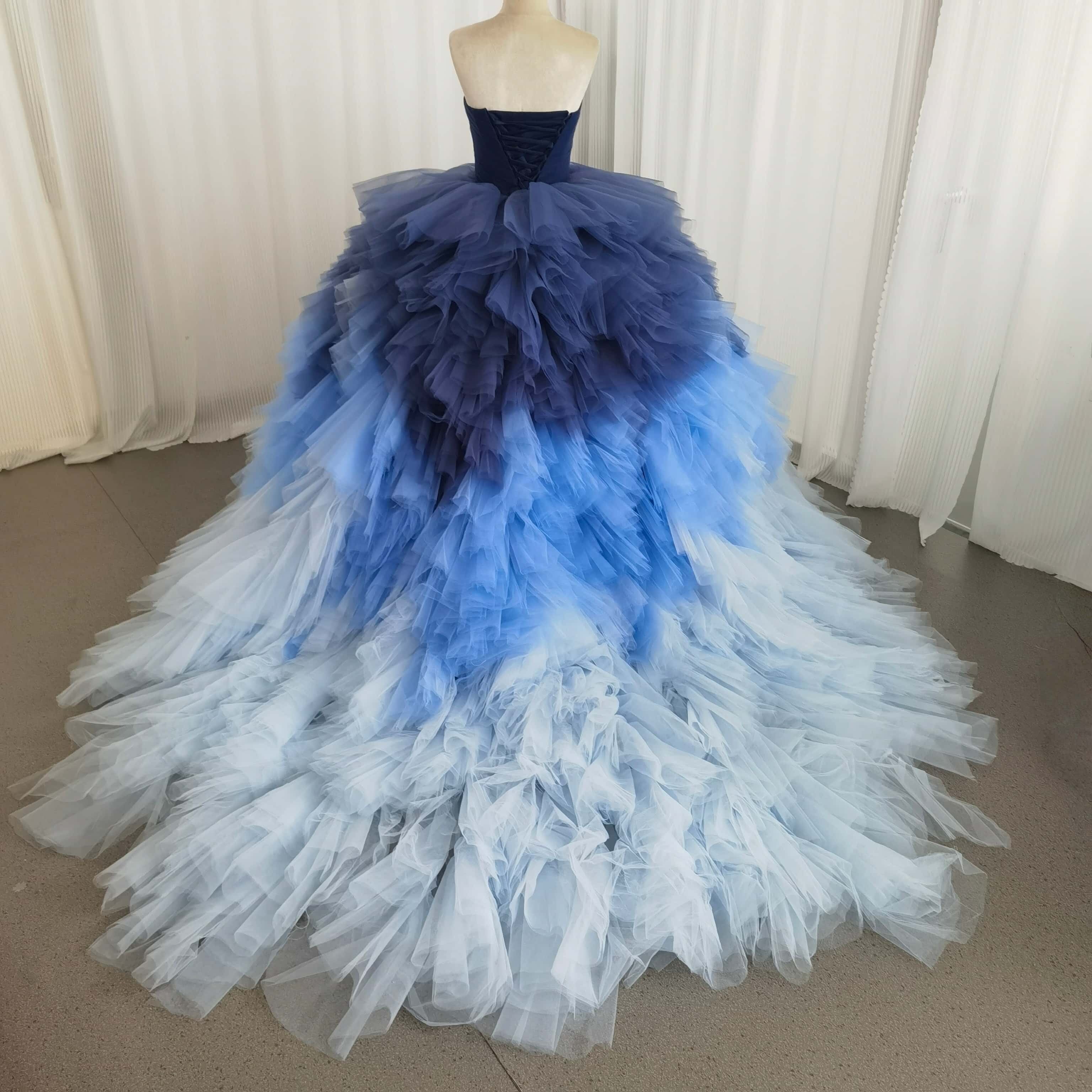 カラードレス 3ways グラデーションドレス 取り外し可能なオフショルダー ブルー 抜群におしゃれ度が際立つ