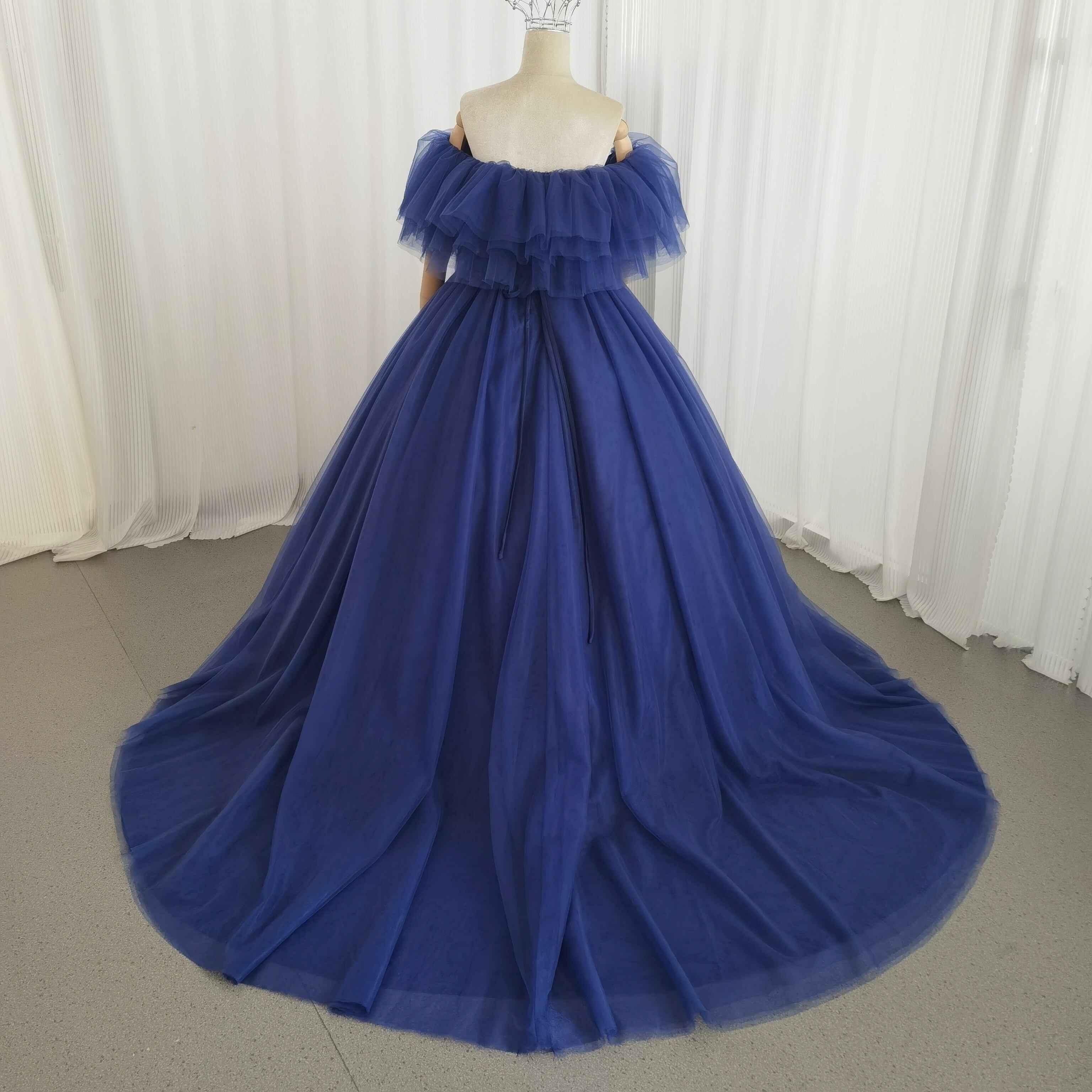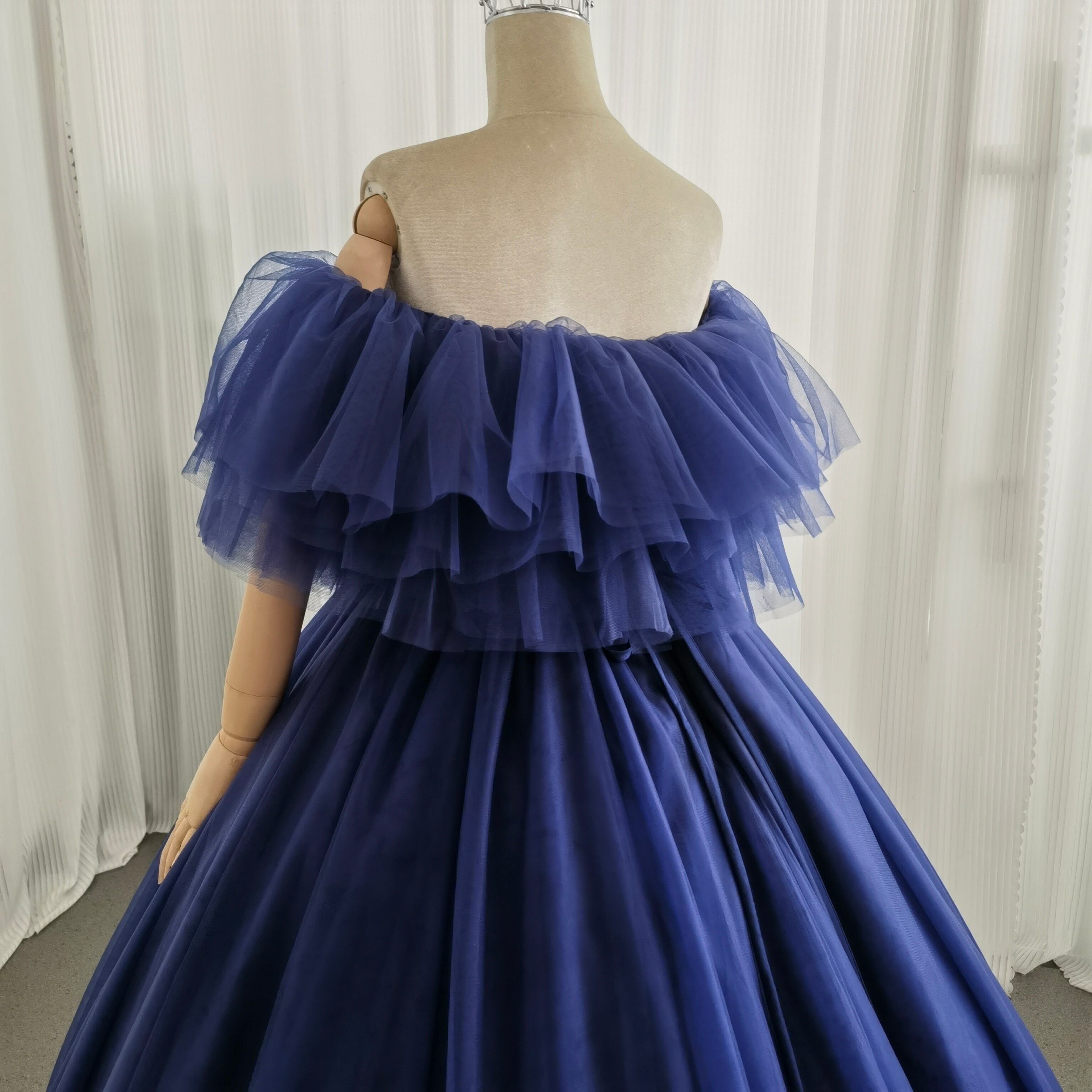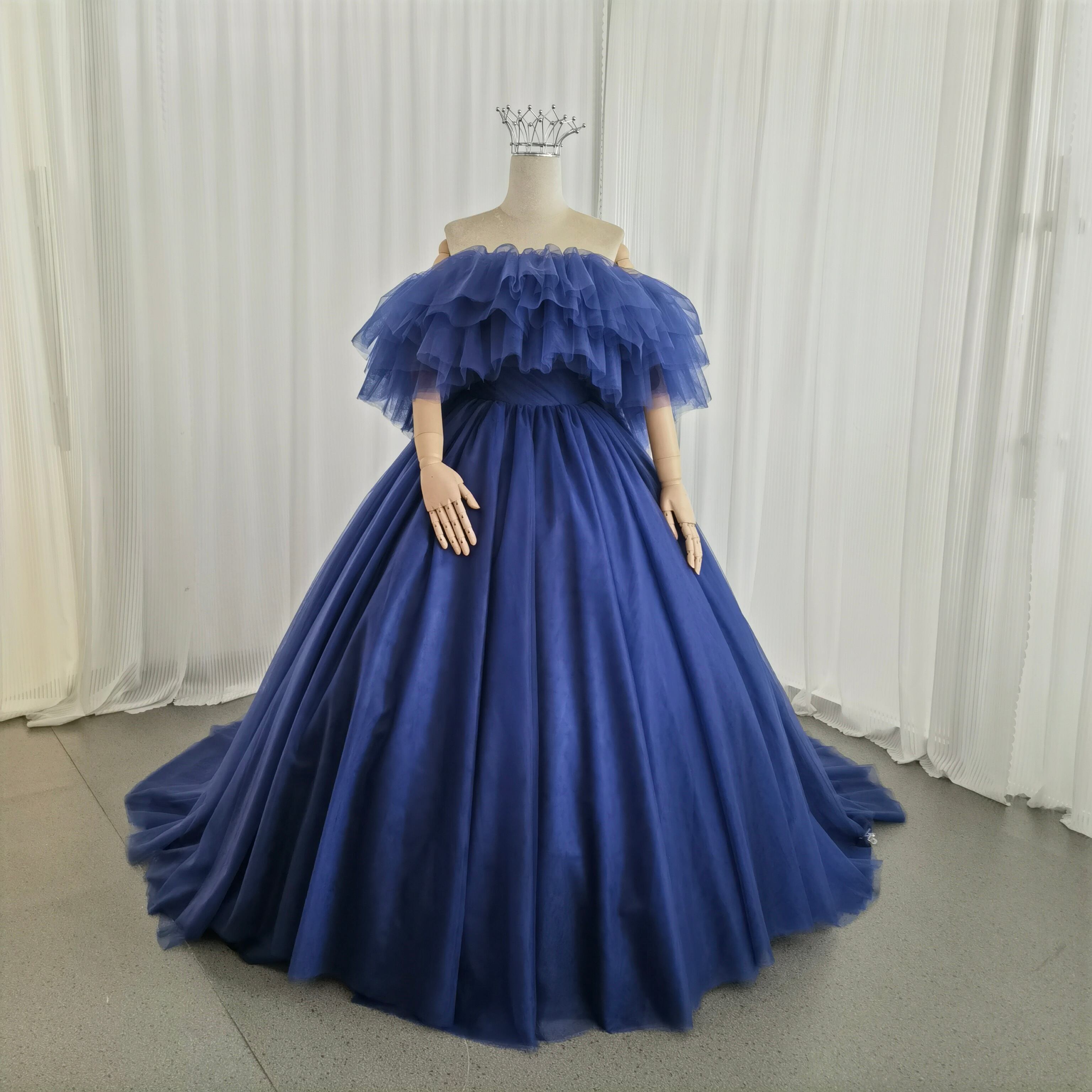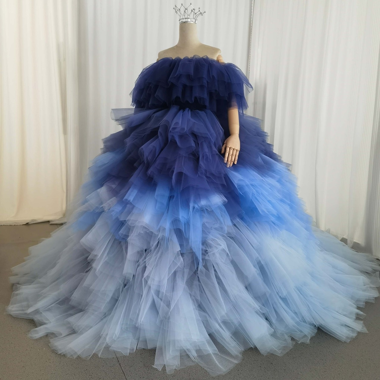 カラードレス 3ways グラデーションドレス 取り外し可能なオフショルダー ブルー 抜群におしゃれ度が際立つ