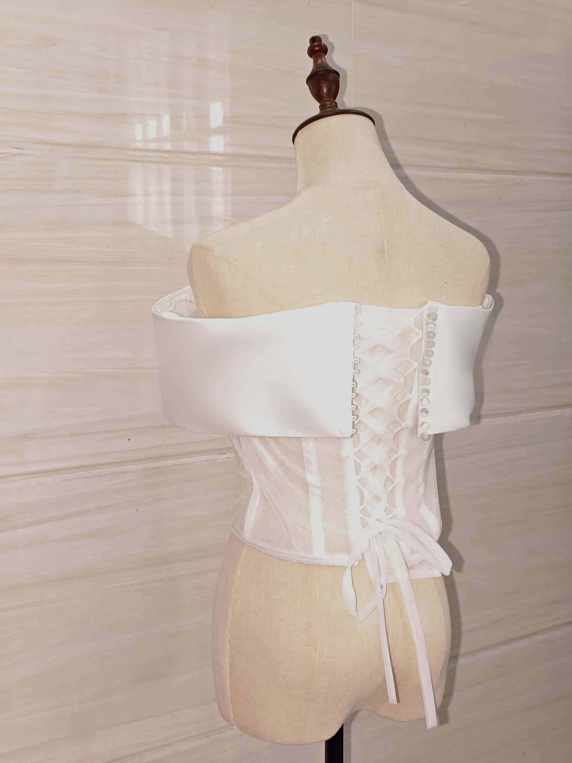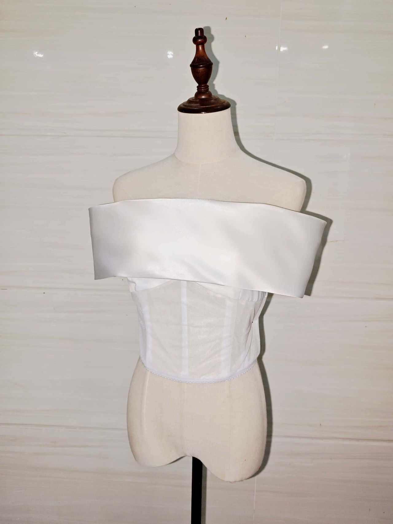 オフショルダー単体 ドレスをアレンジできるドレスインナーブラウス 光沢サテン オフホワイト オーダーメイド