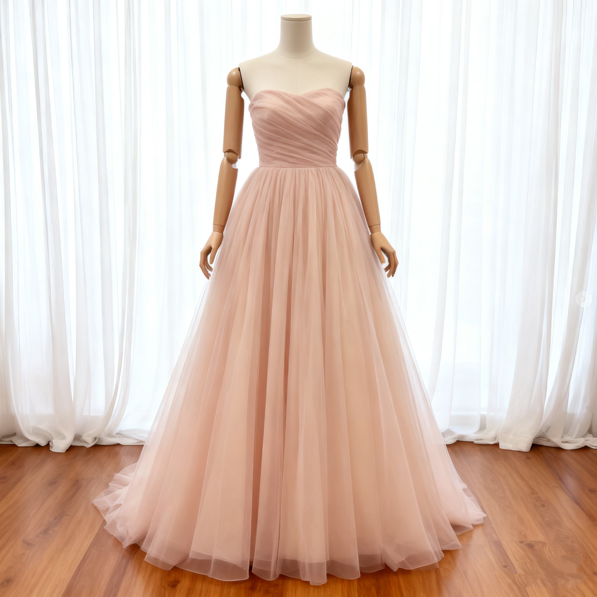 カラードレス ピンク チュールスカート Aライン スレンダーライン ハンドドレープ ブライダル ピアノ演奏会/音楽会