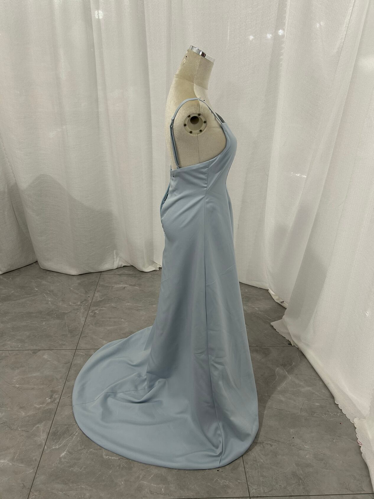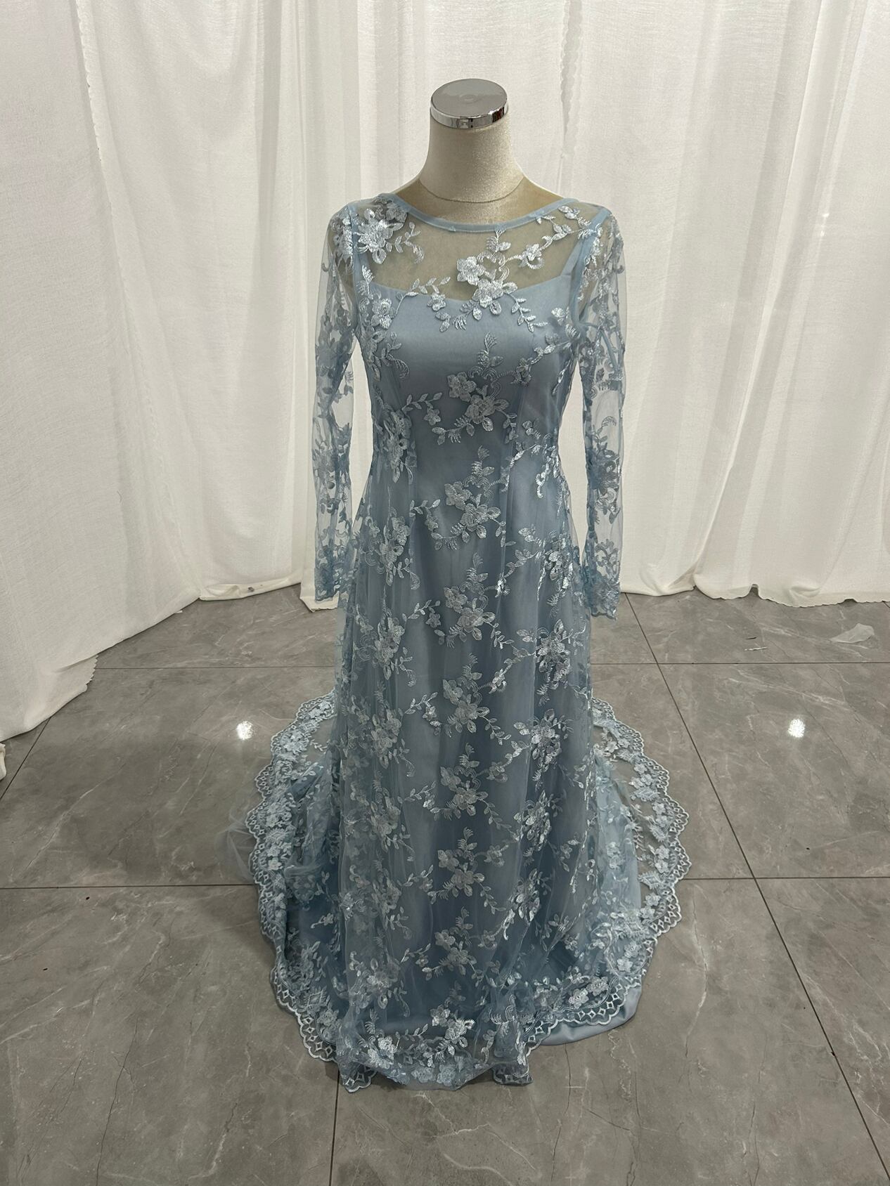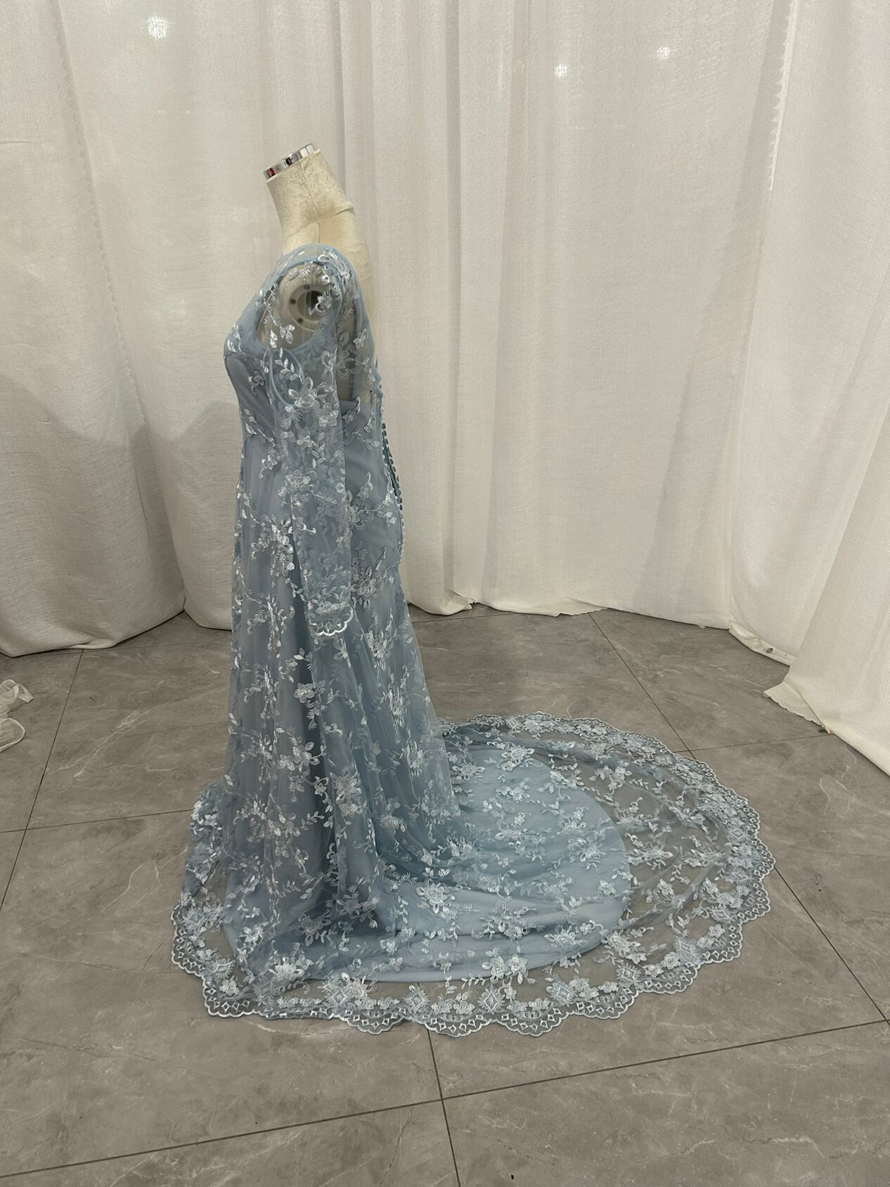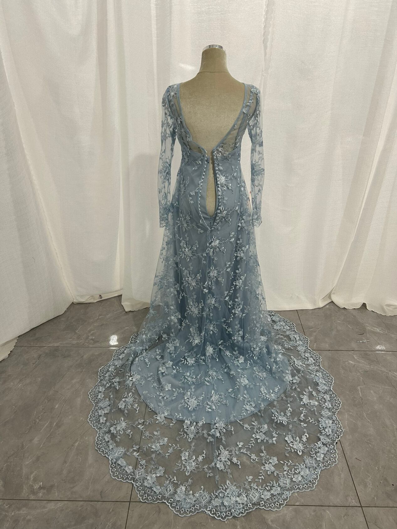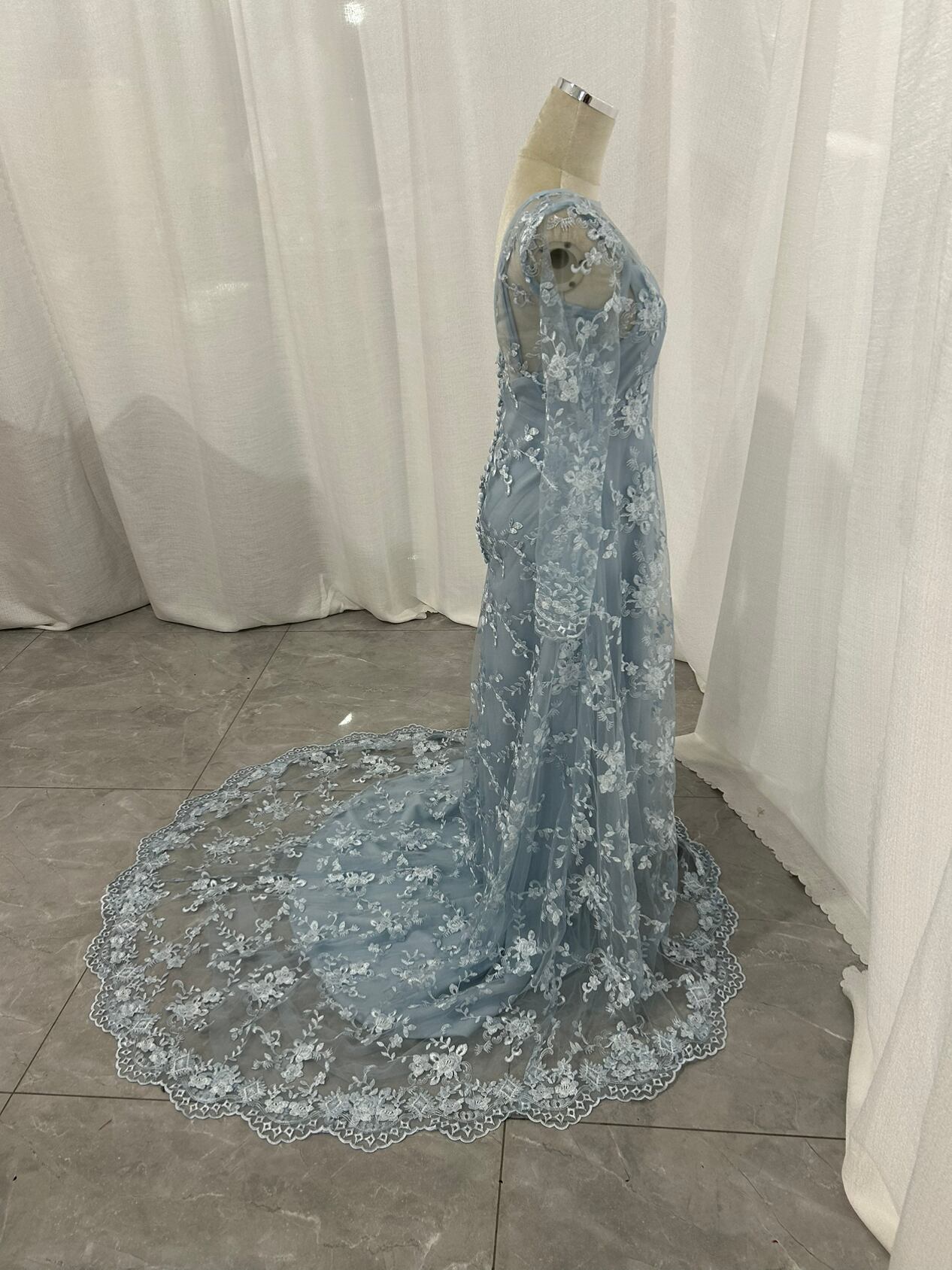 カラードレス ツーピース 爽やかで優しいブルー ロングスリーブ キャミソール 前撮り 結婚式 優雅なシルエット