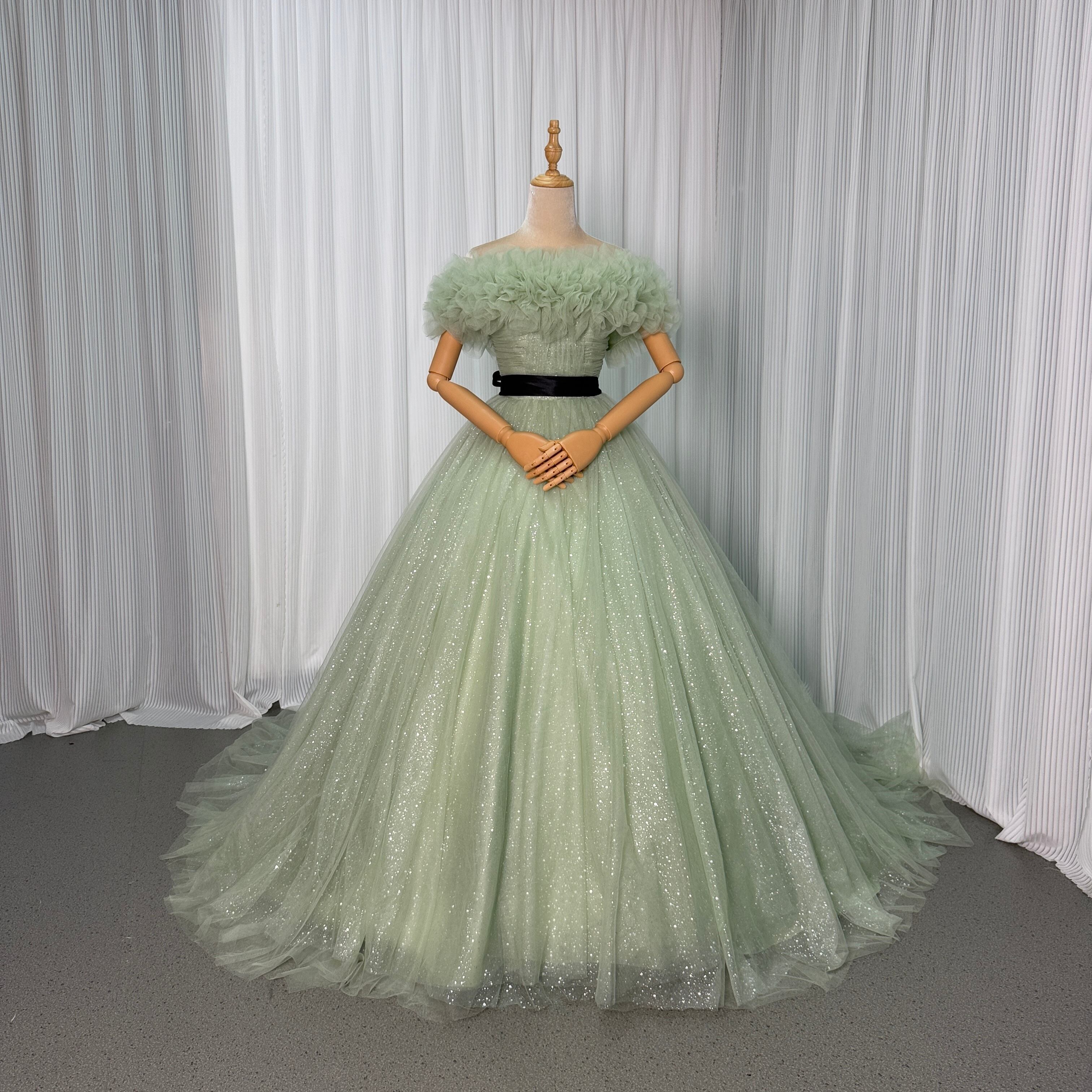 取り外し可能なオフショルダー グリーン ラッフルフリル 編み上げ オーダーメイド可能