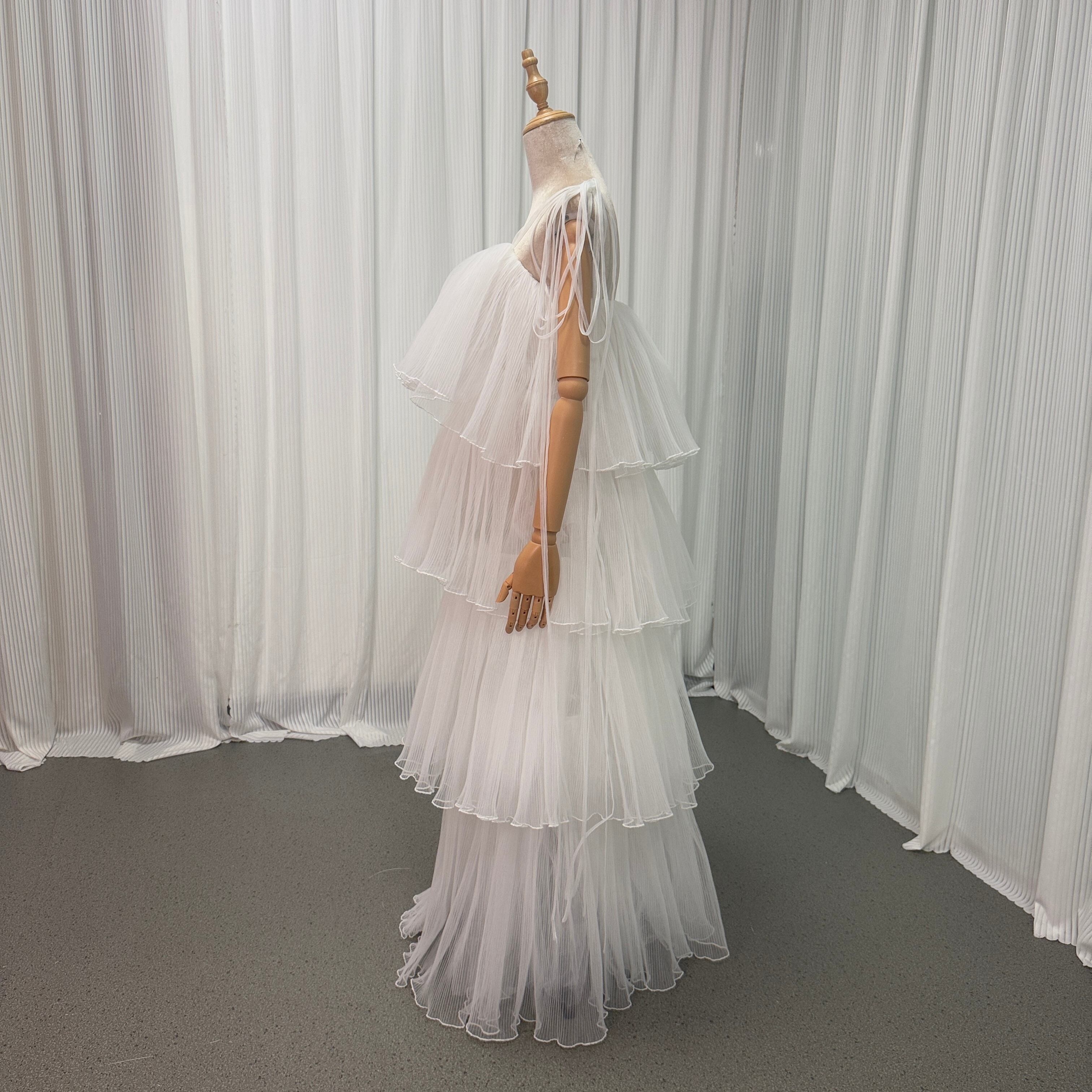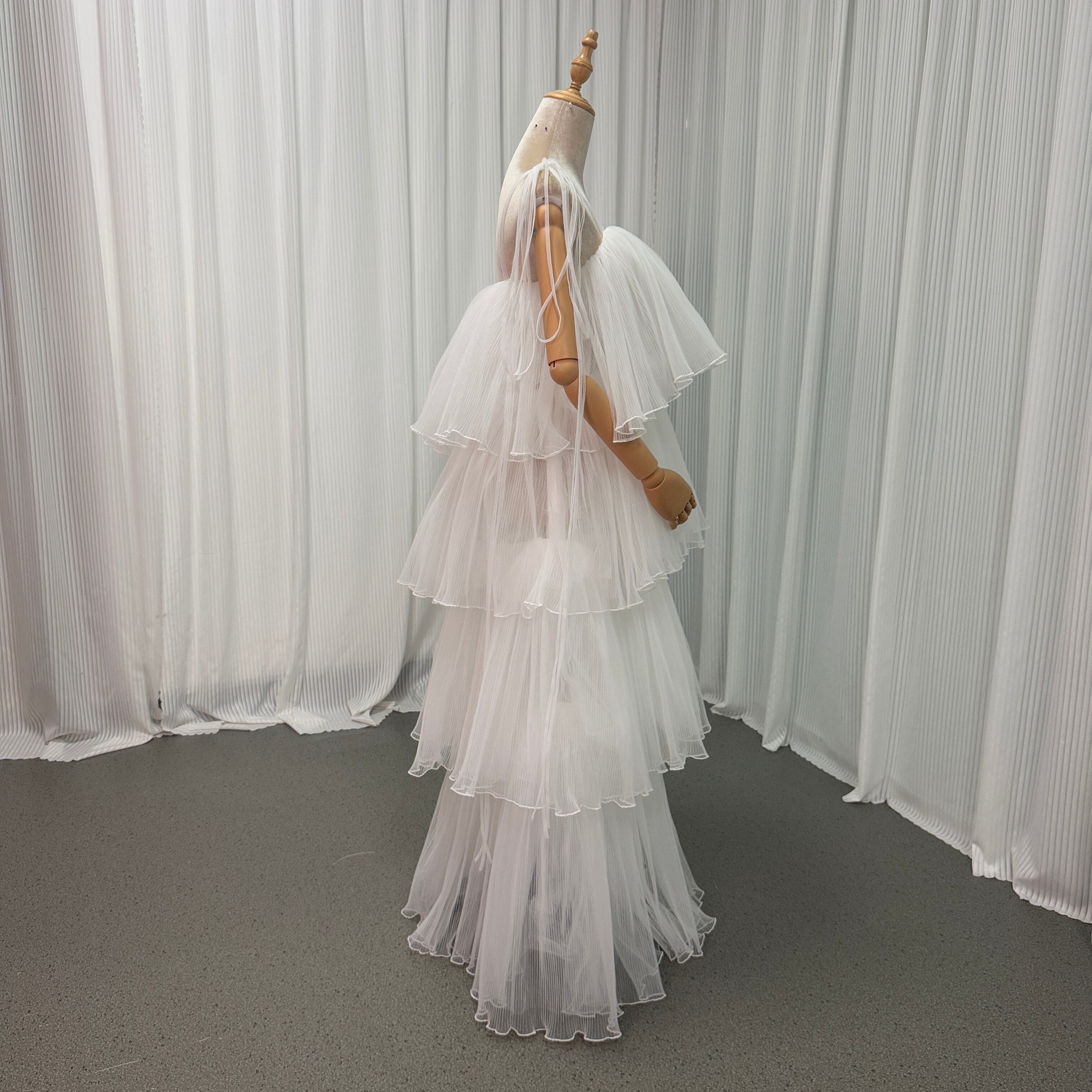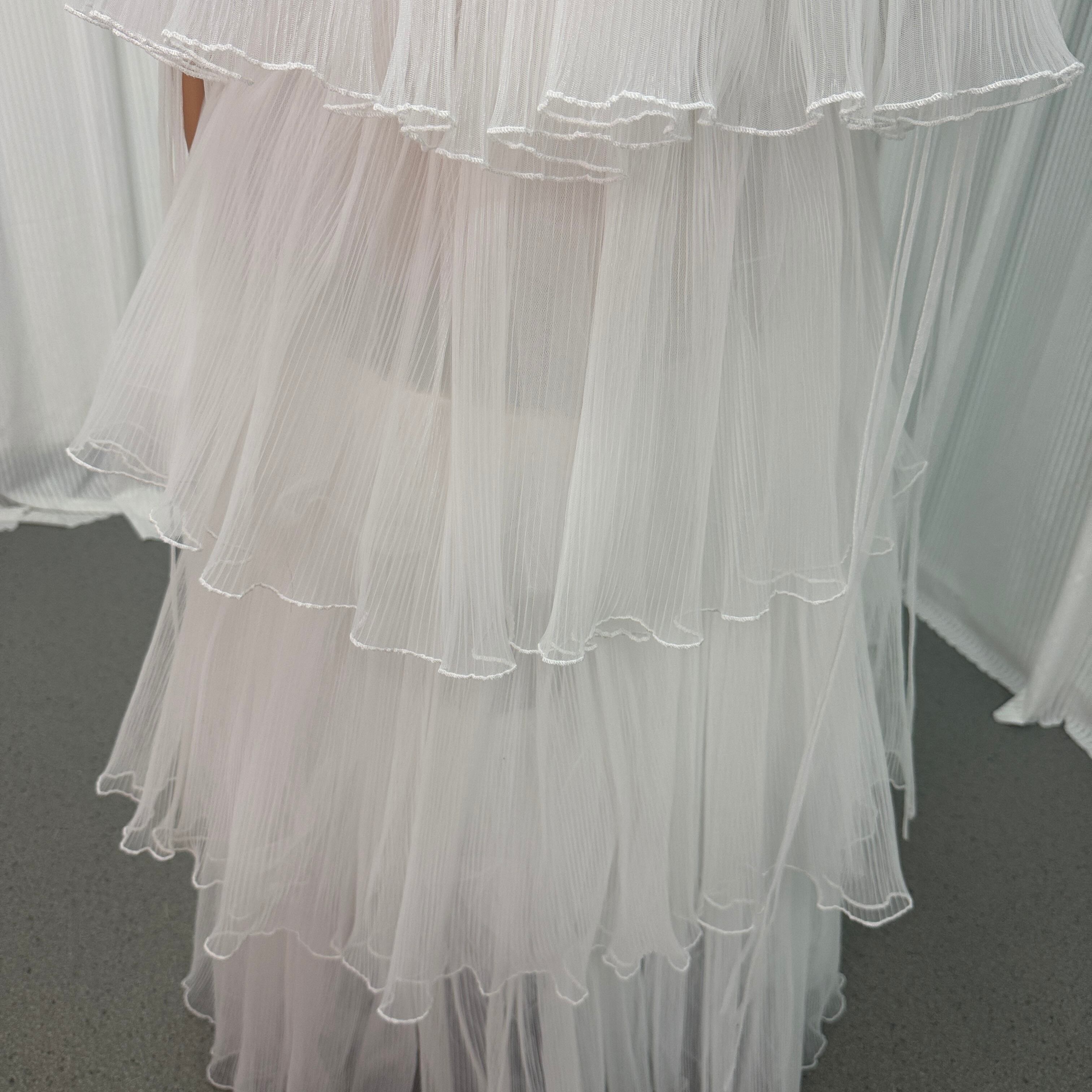 ウエディングドレス オーバードレス キャミソール プリーツドレス ティアードのドレス オフホワイト 色直し