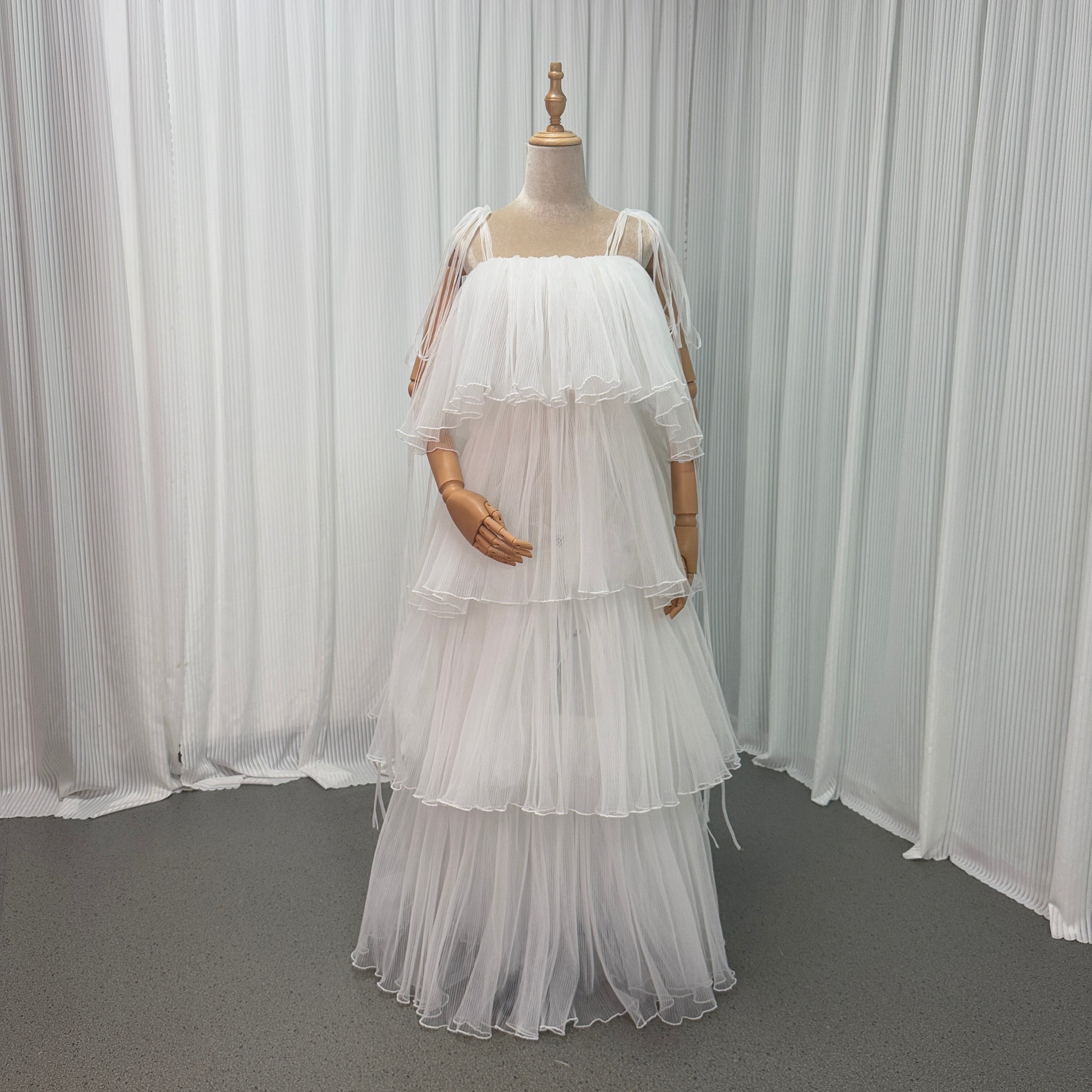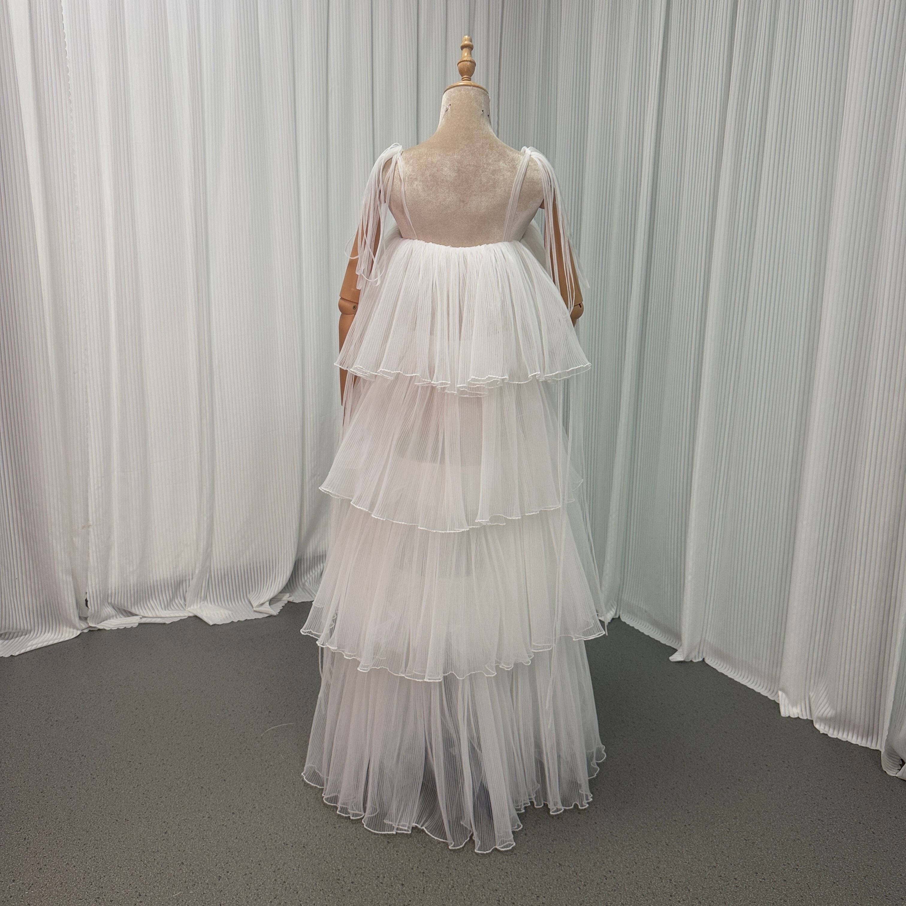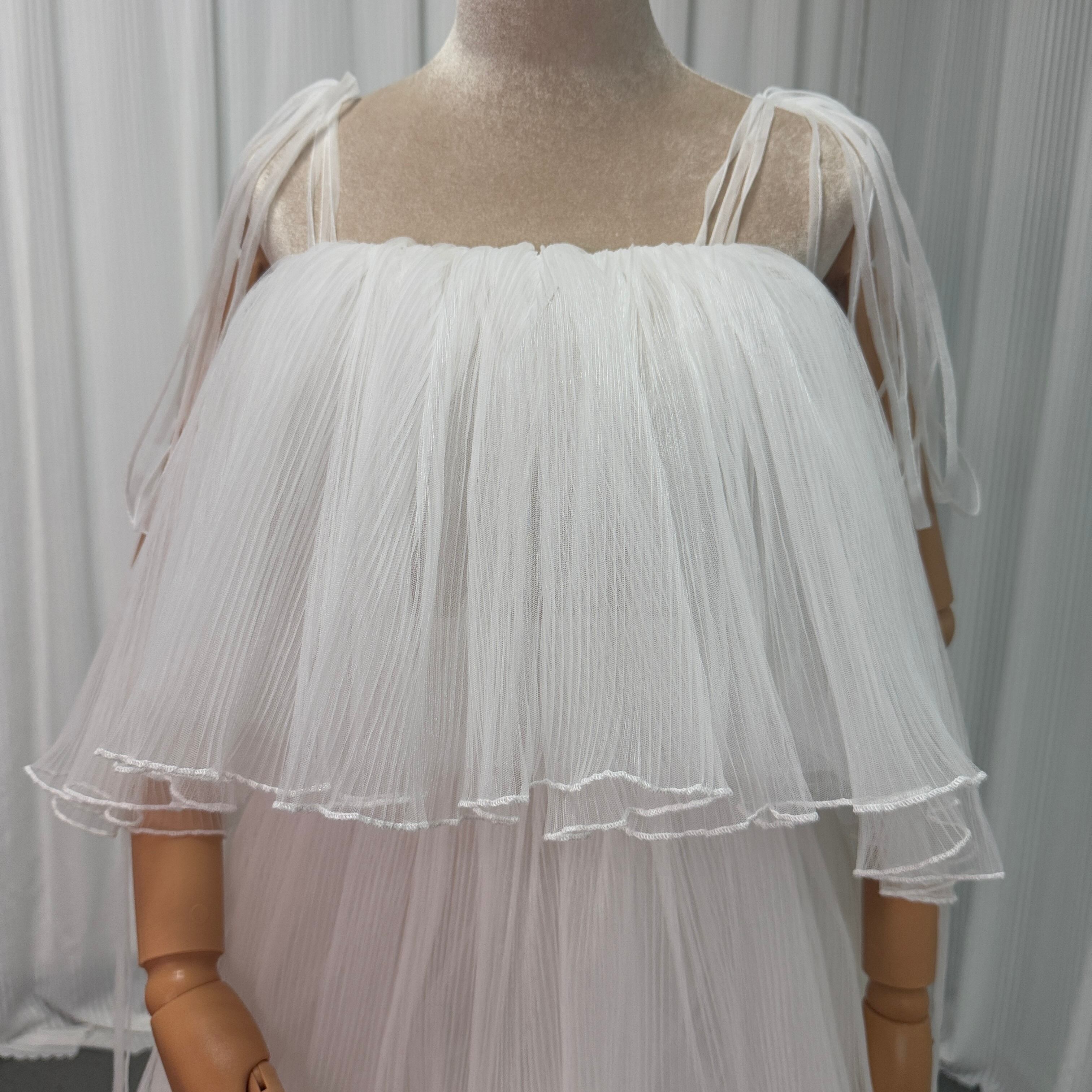ウエディングドレス オーバードレス キャミソール プリーツドレス ティアードのドレス オフホワイト 色直し