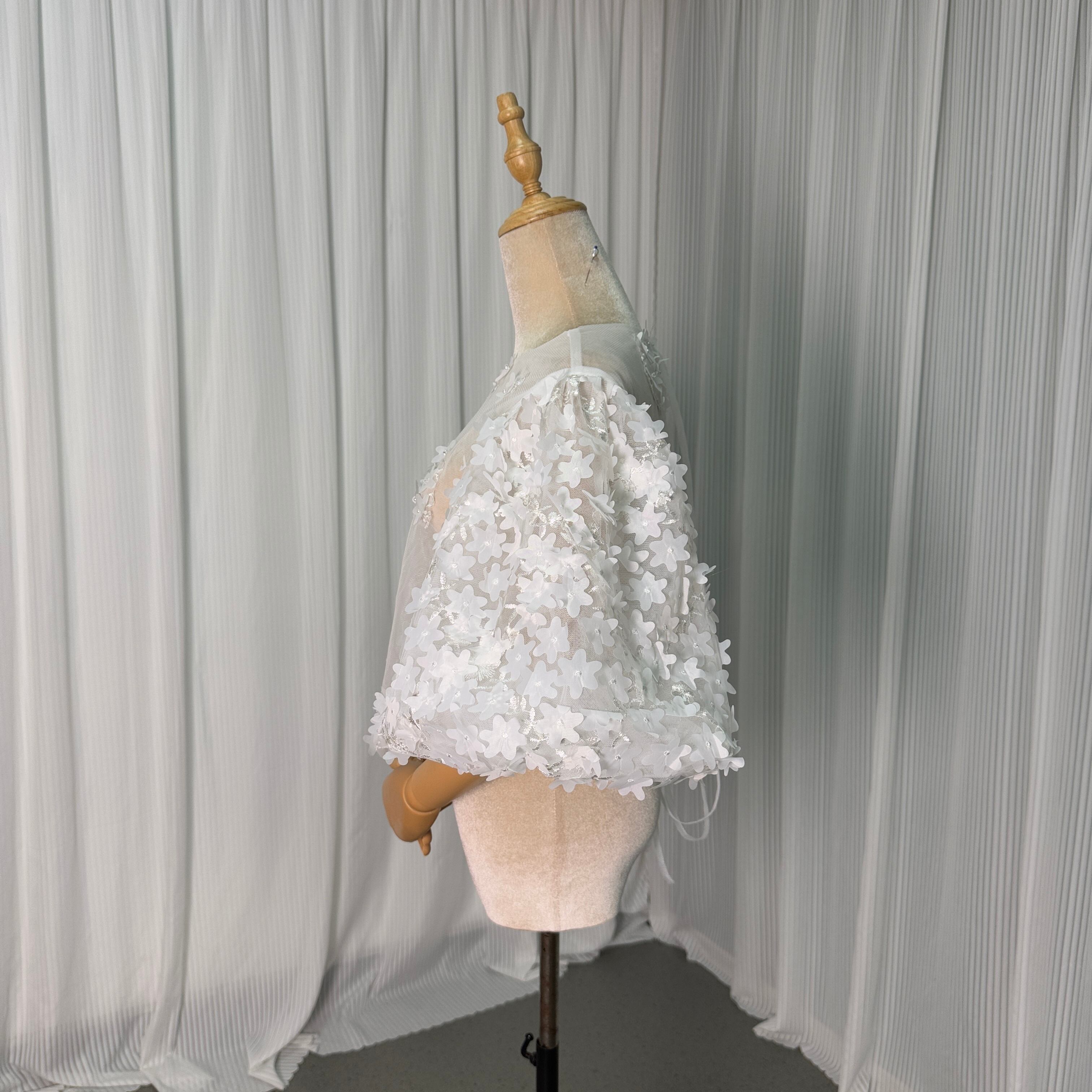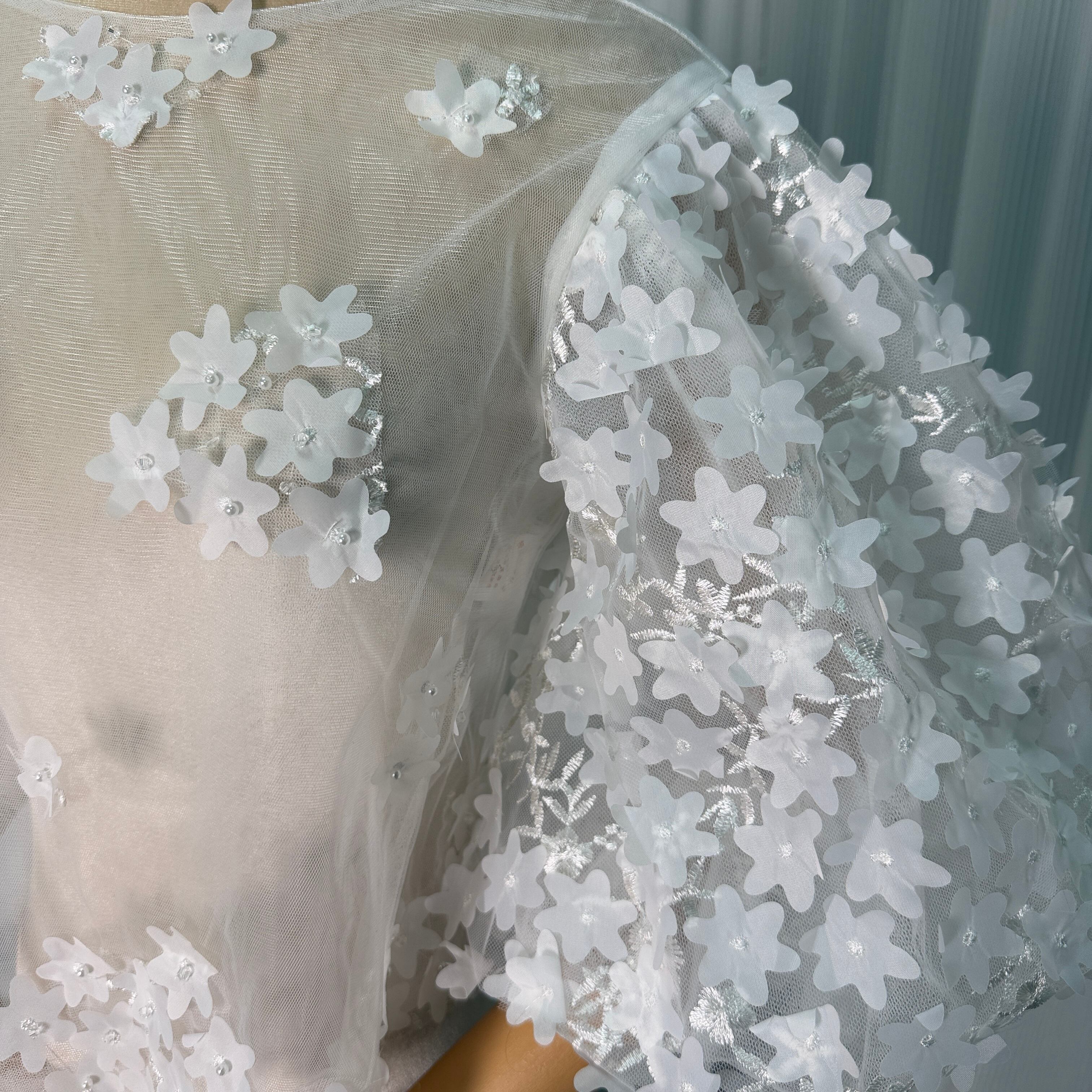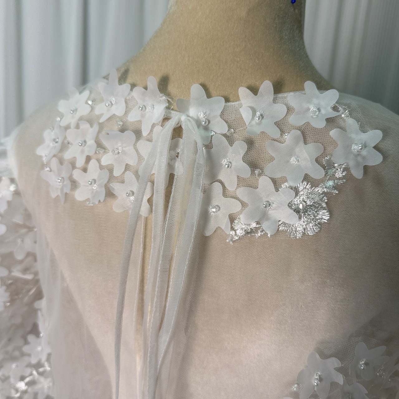 ビスチェボレロ 花モチーフ 3D立体レース刺繍 バルーンスリーブ プリンセスライン 花嫁/ウェディングドレス