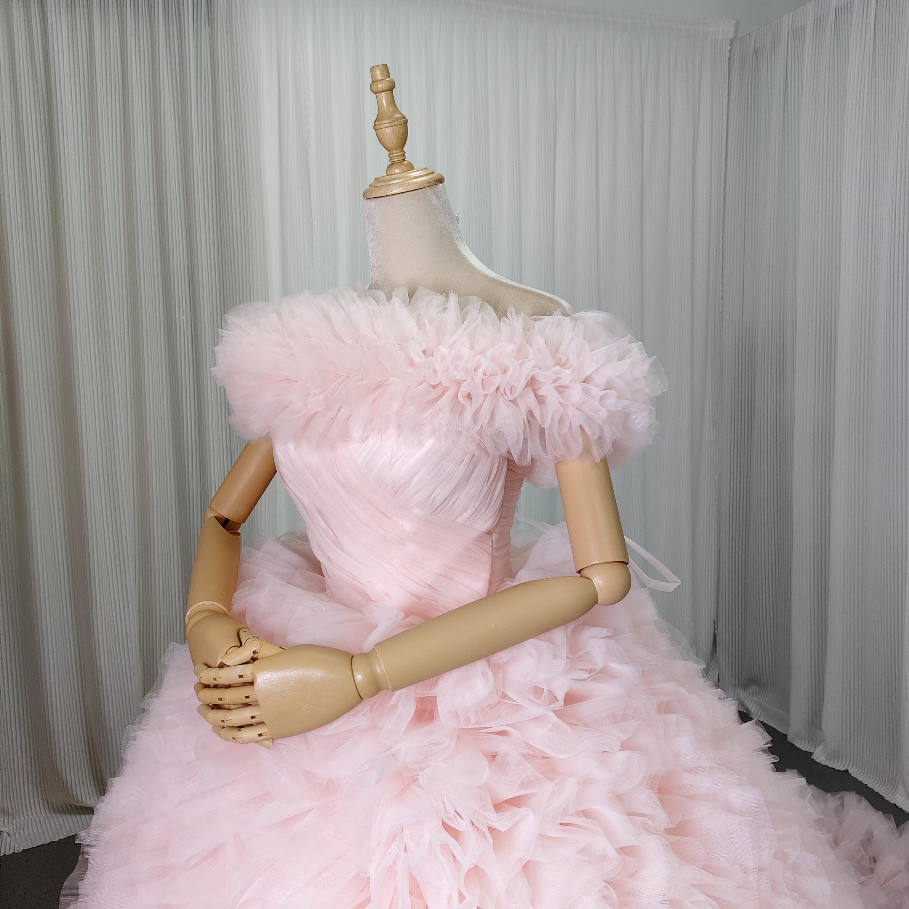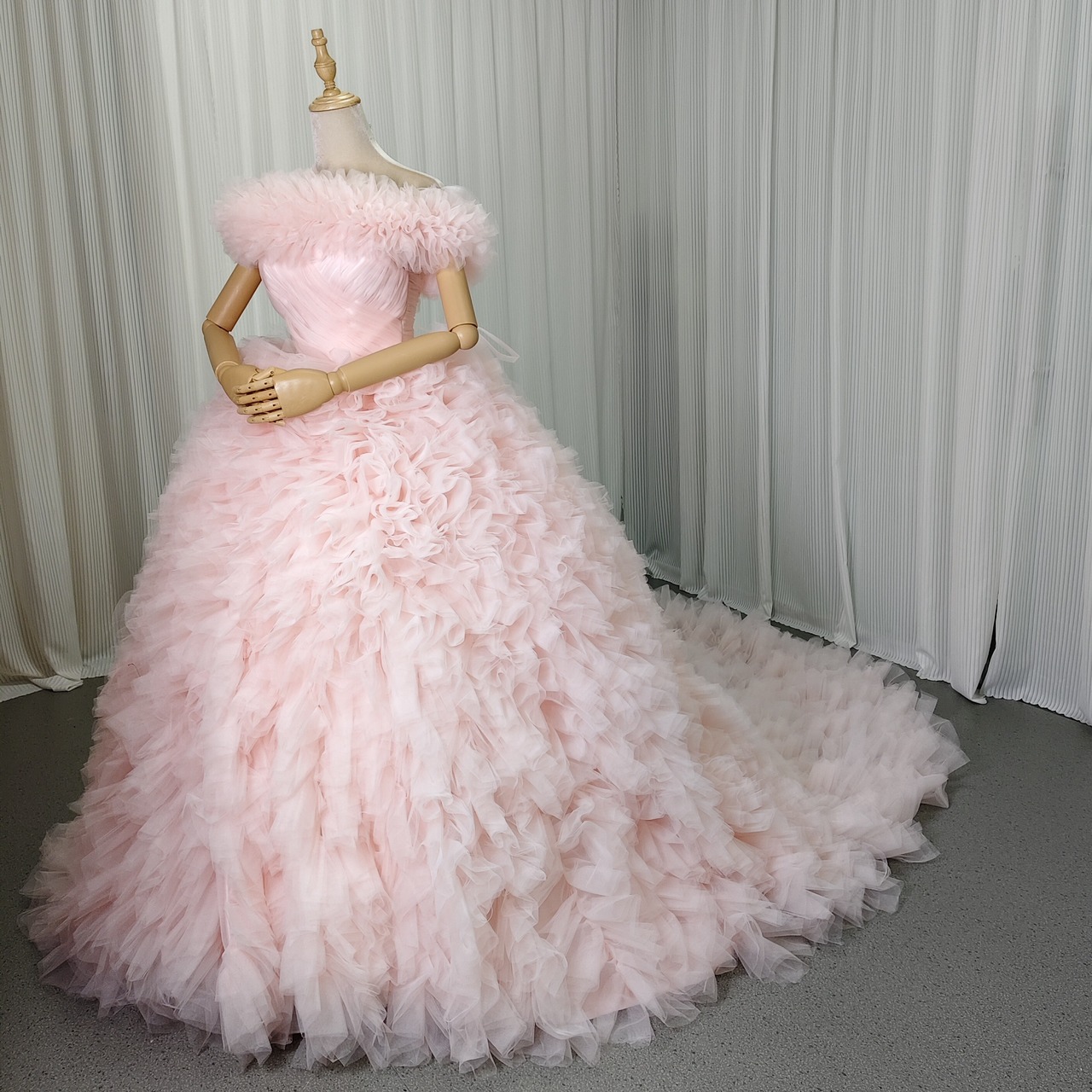 カラードレス 取り外し可能なオフショルダー もこもこドレス プリンセスライン 結婚式 憧れのドレス