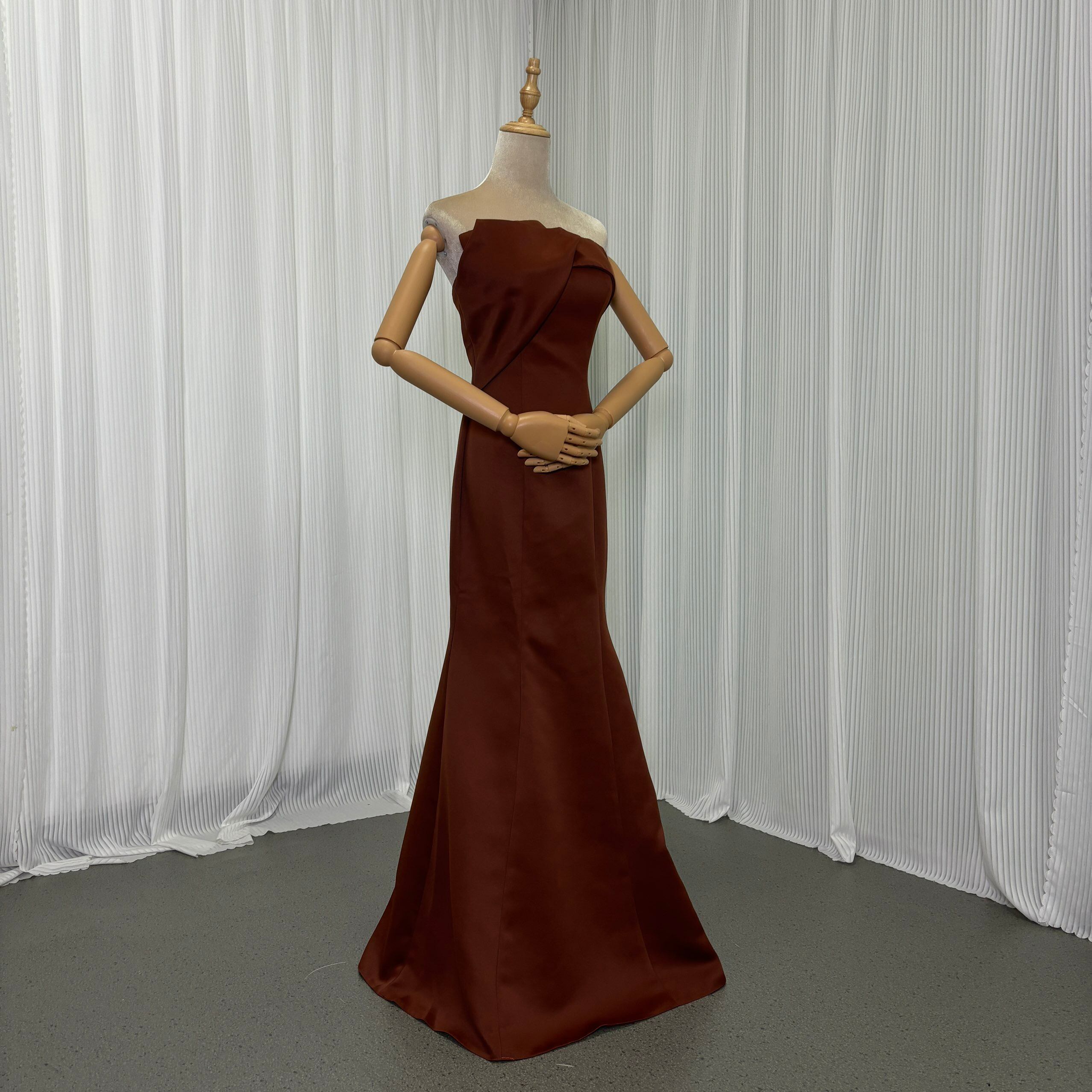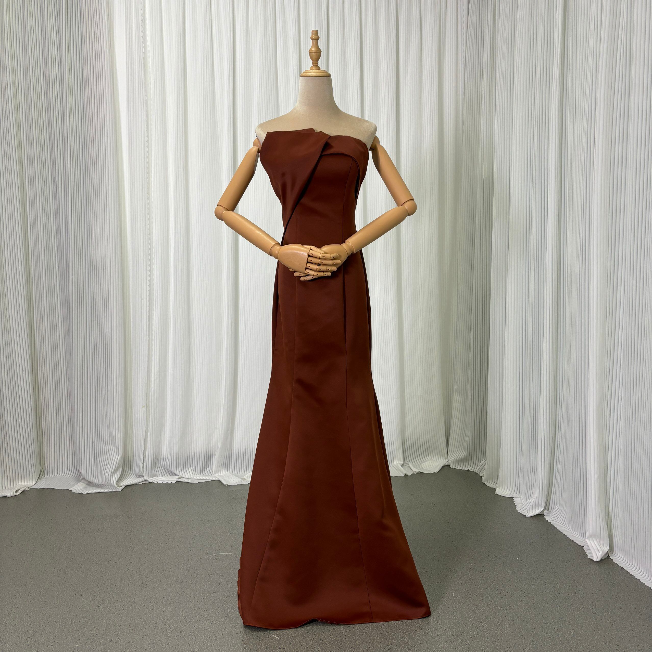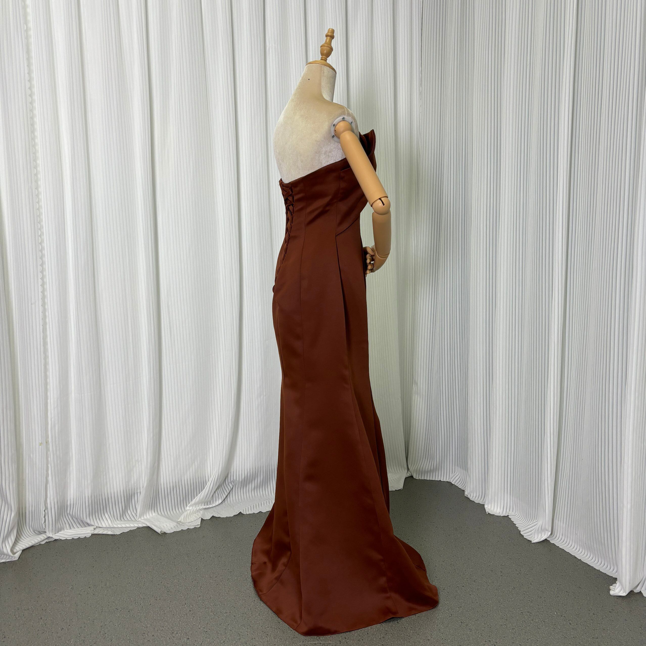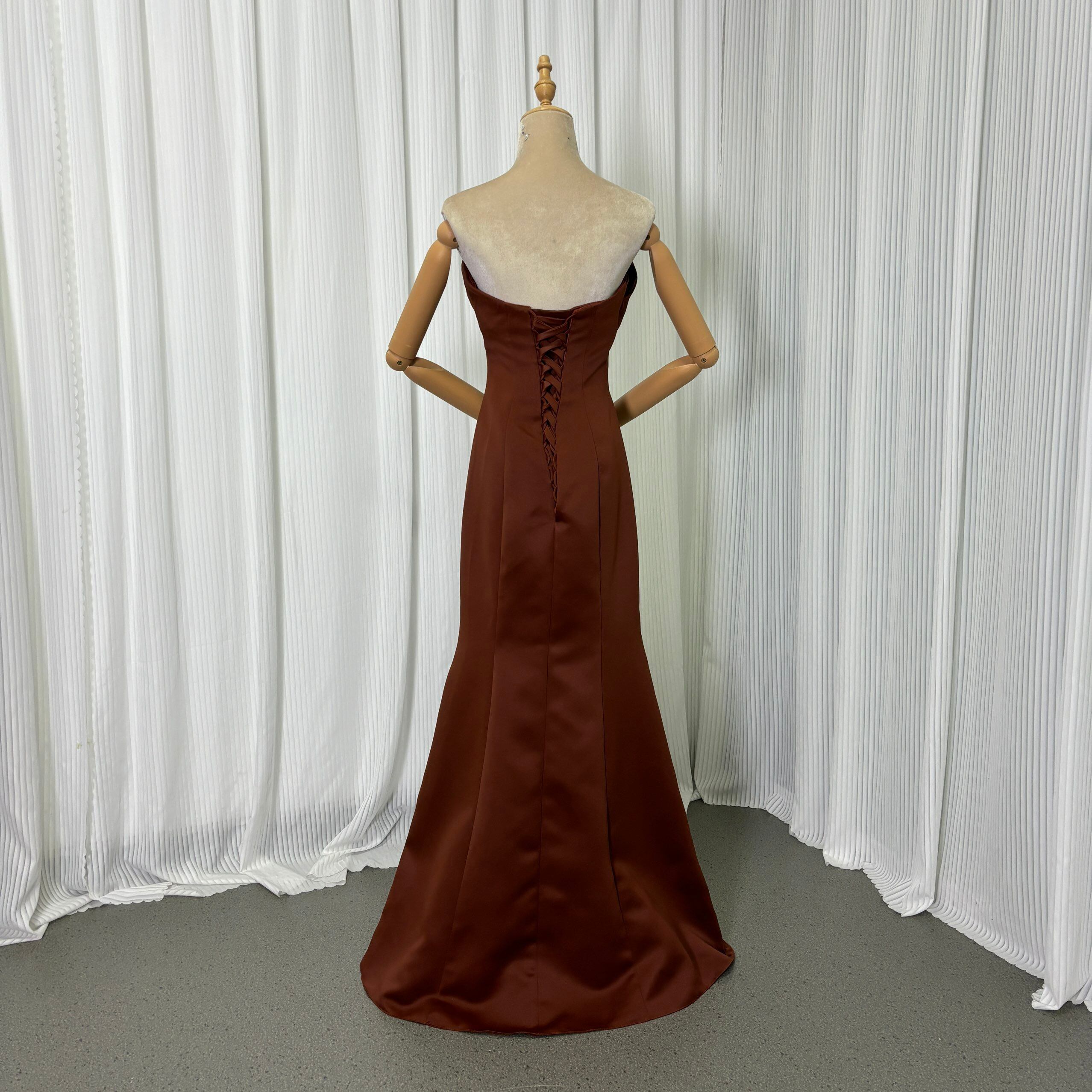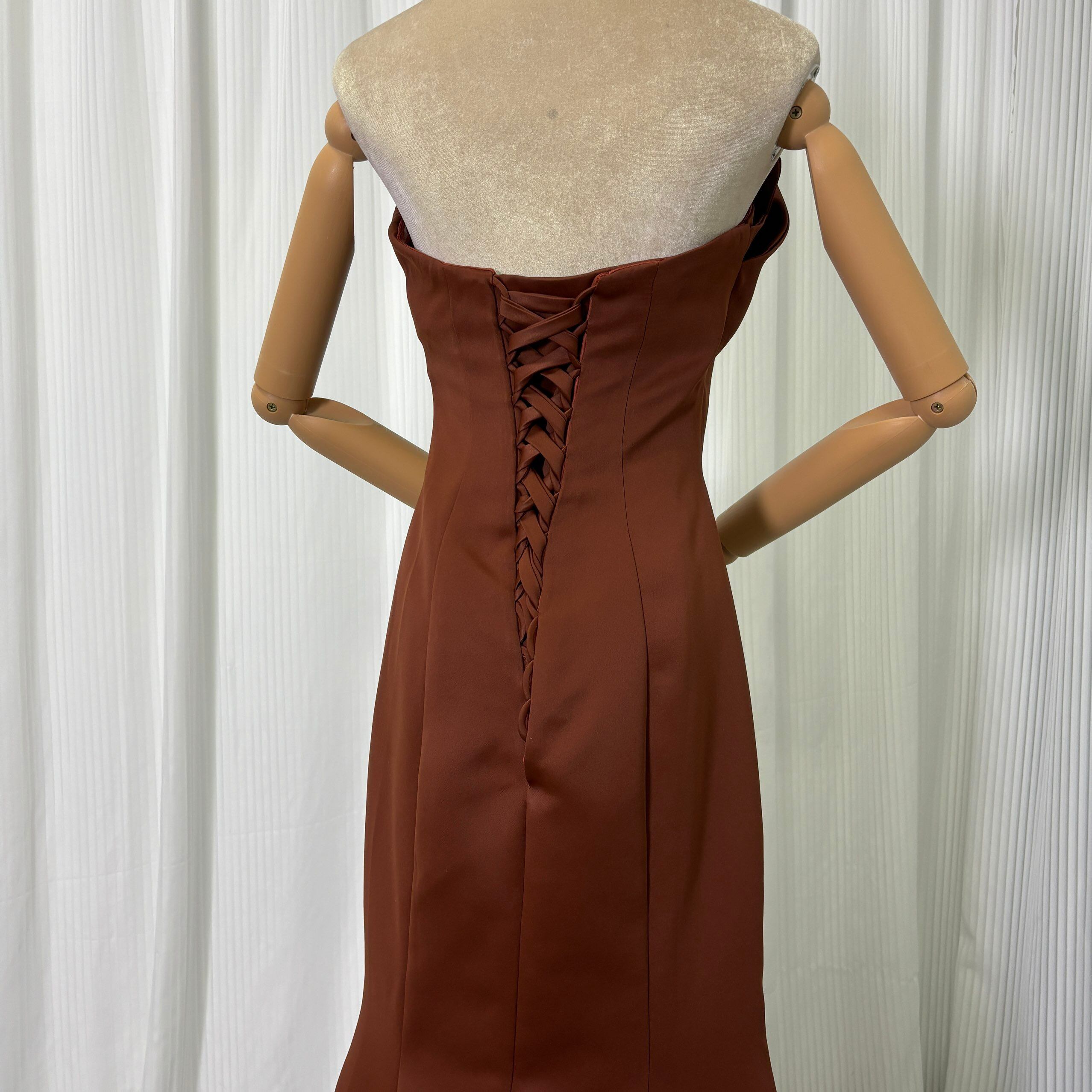 パーティードレス テラコッタ色 ベアトップ マーメイドライン 前撮り 2次会 編み上げ ハンドドレープ