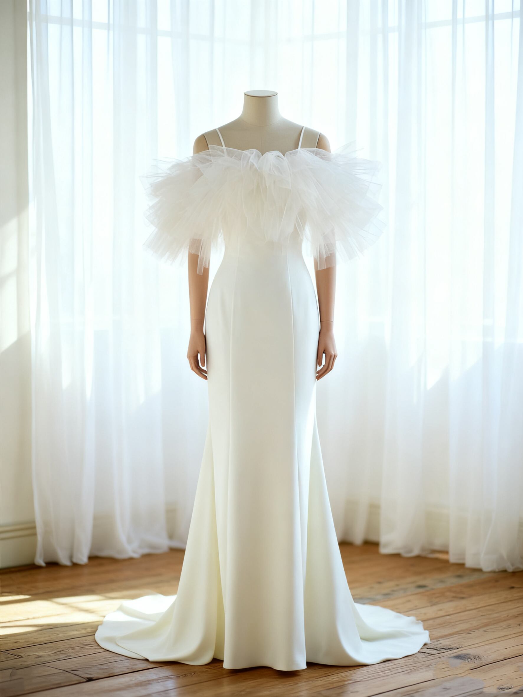 パーティードレス キャミソール オフショルダー マーメイドライン クレープ生地 前撮り 披露宴 二次会