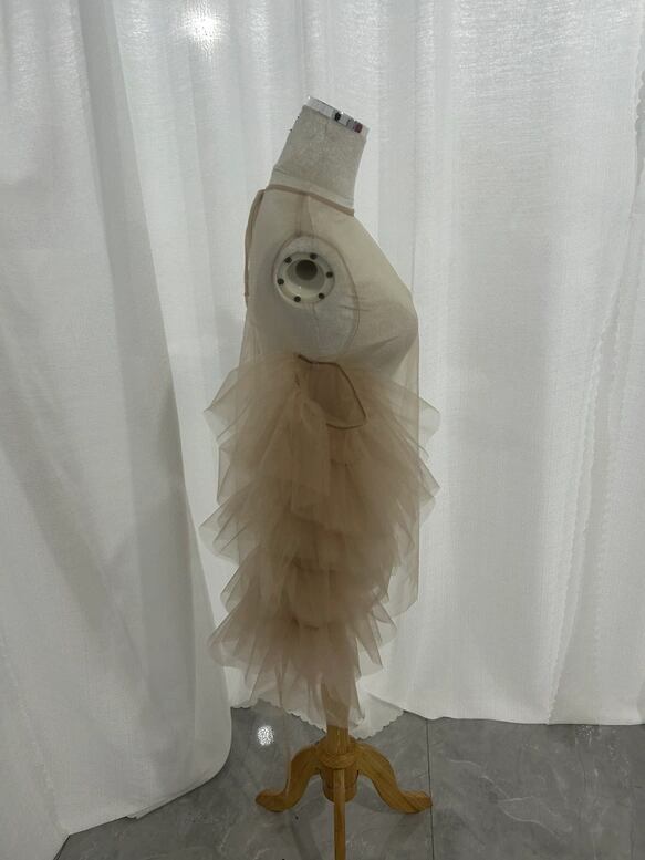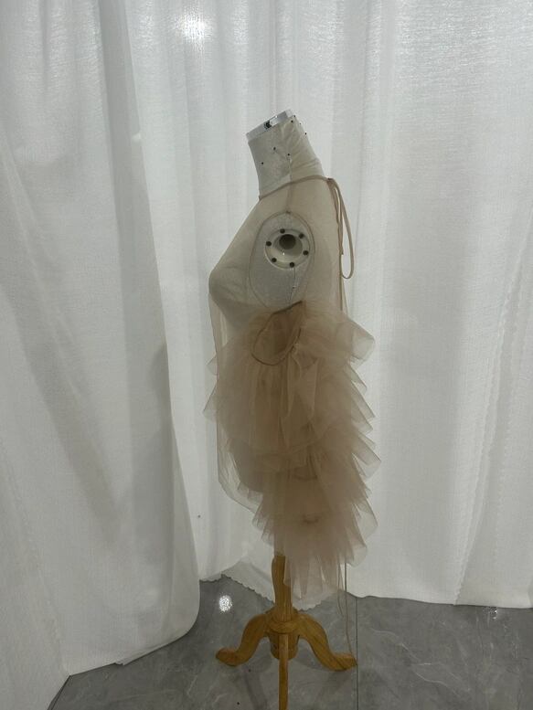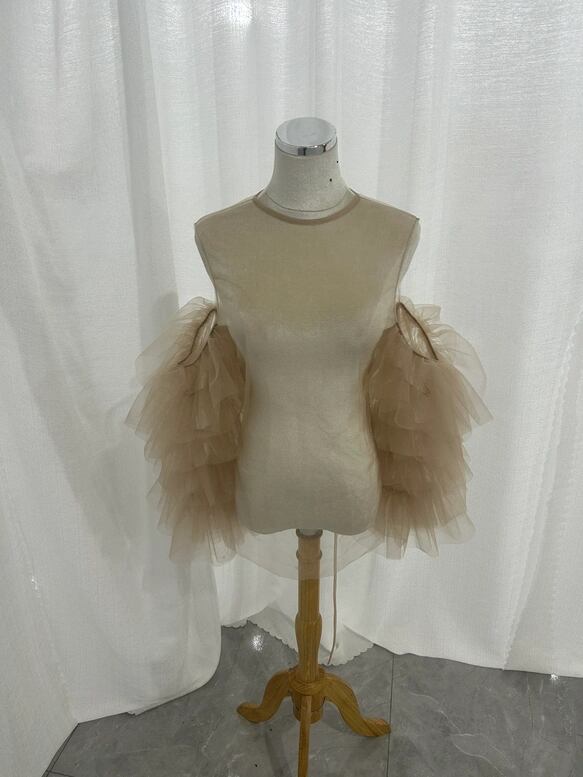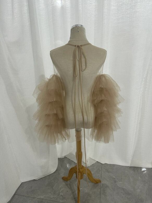 フェミニンなフレームレースの袖トップス + ソフトチュールボレロ ポンチョ 薄あずき色/演奏会/音楽会