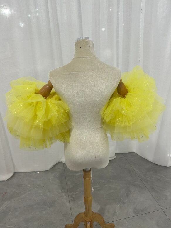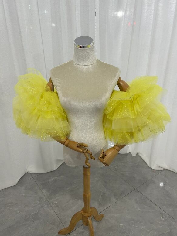 大人気上昇 イエロー 取り外し袖 ショルダーの付け袖 パフスリーブ オーダー可能 ふっくら柔らかなバック