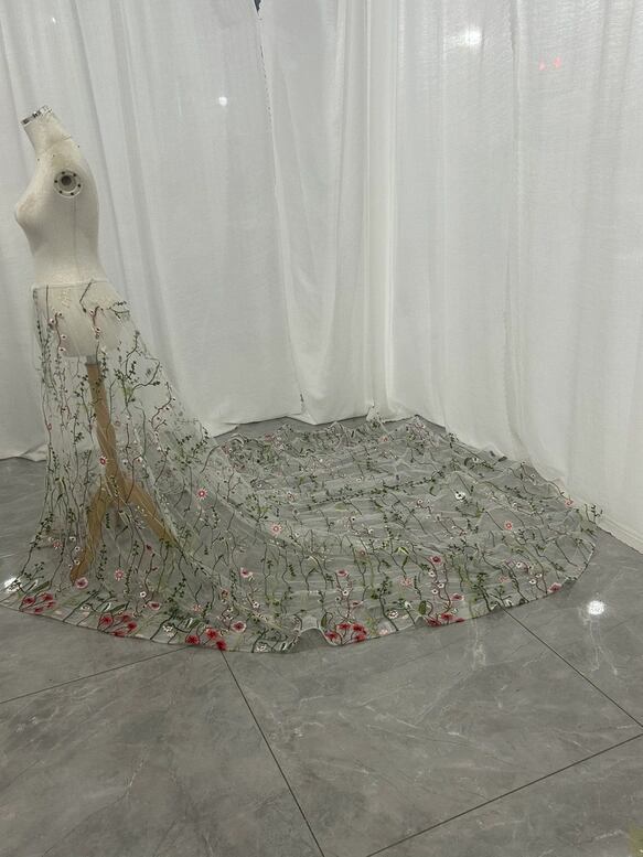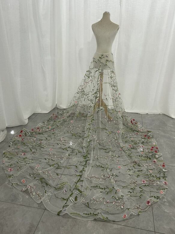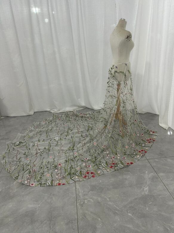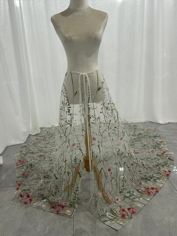花柄刺繍が美しく チュールスカート オーバードレス トレーンのみ 花嫁/ウェディングドレス