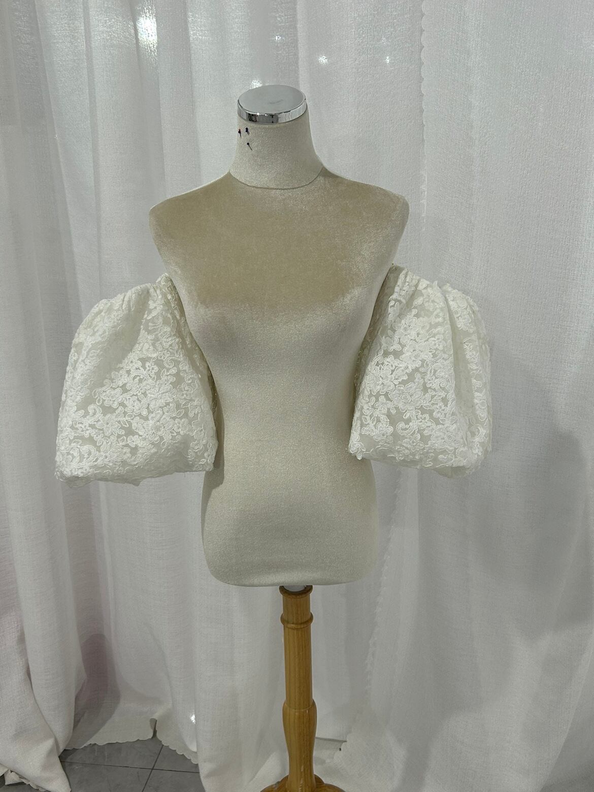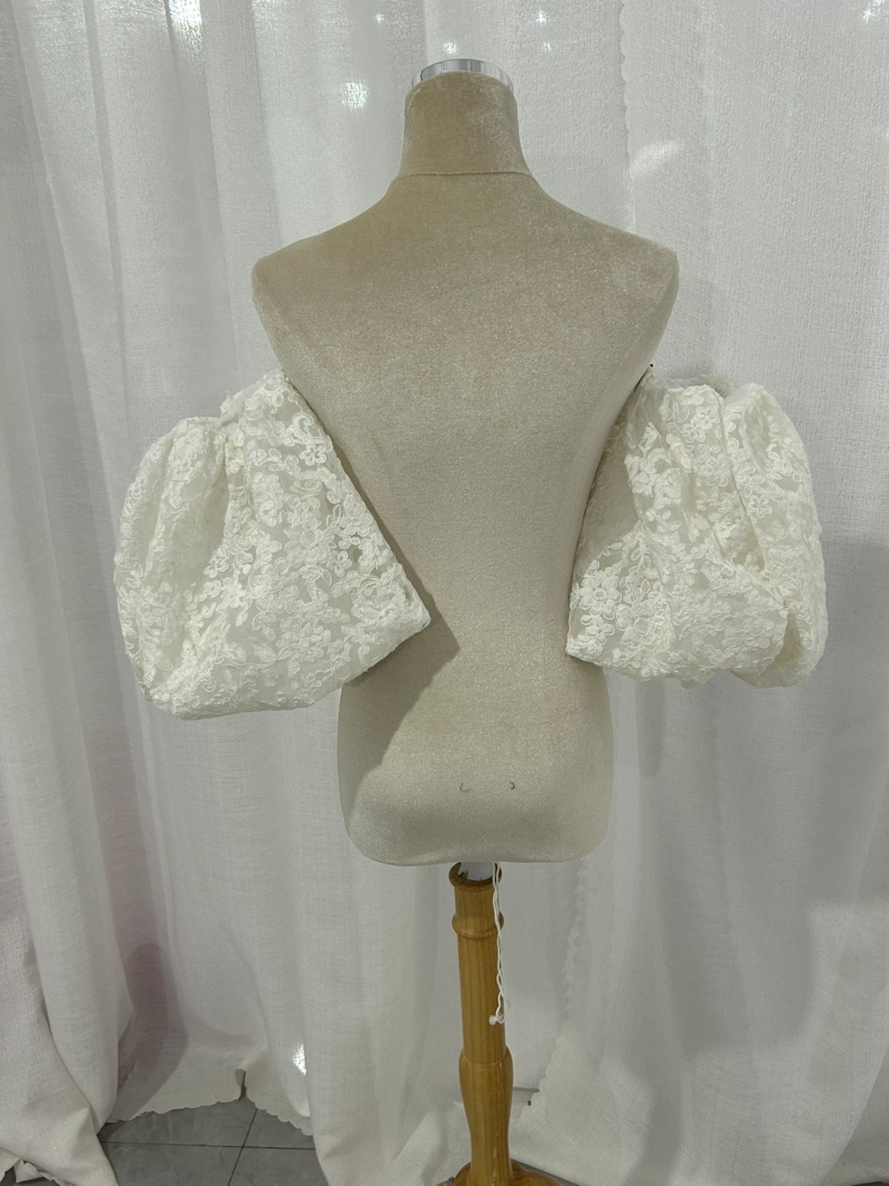 取り外し可能な付け袖 贅沢な小花柄の総レース 上品な透け袖 花嫁/ウェディングドレス ストレッチ
