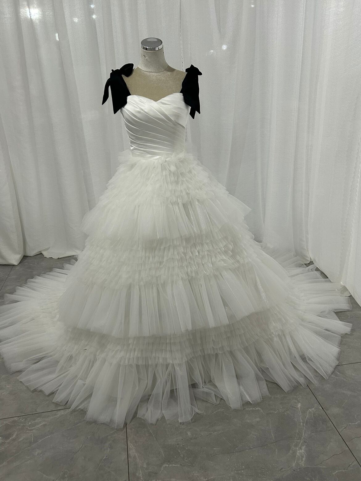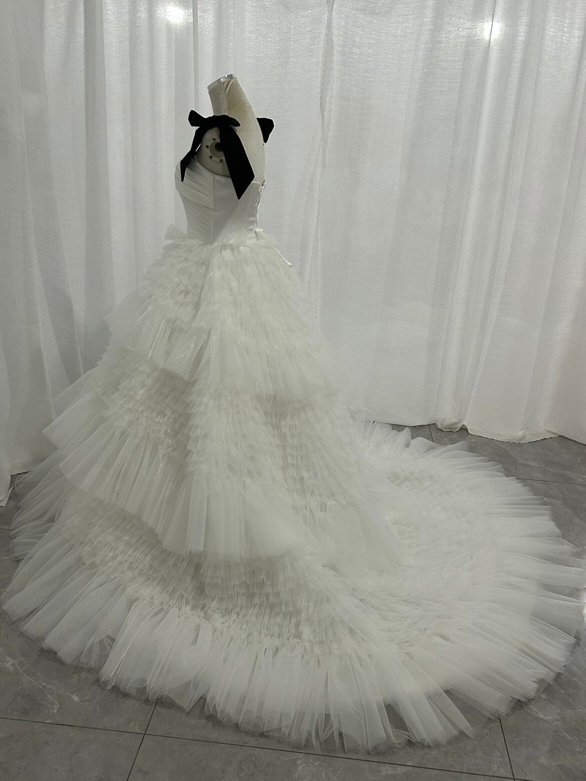 ウエディングドレス キャミソール 編み上げ もこもこドレス オフホワイト 前撮り 結婚式 プリンセスライン