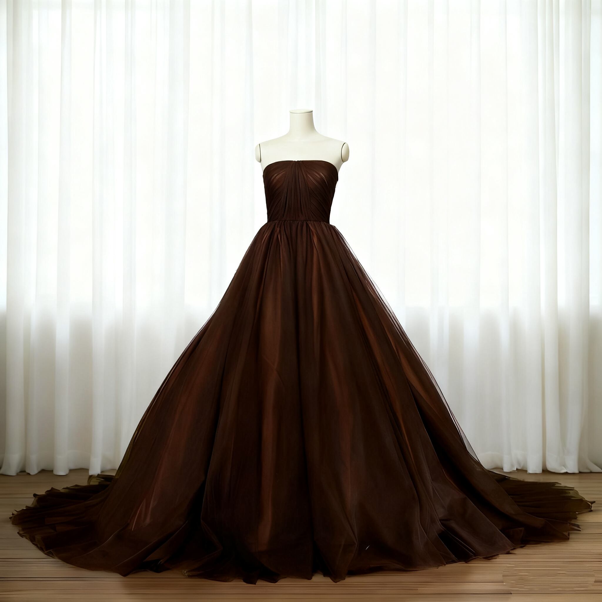 カラードレス ブラウン ビスチェドレス ハンドドレープ オートクチュール ふわふわドレス 前撮り