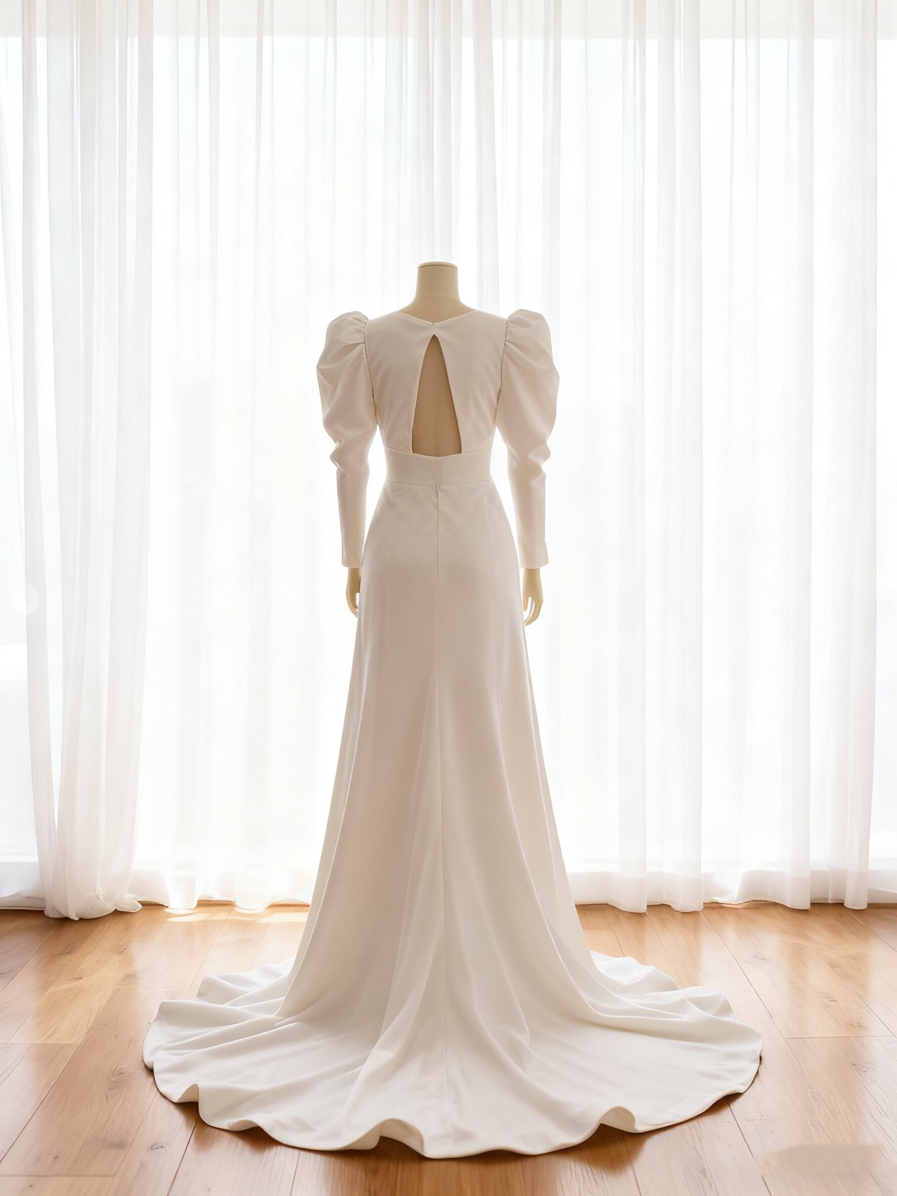 パーティードレス ロングスリーブ Vネック ソフトマーメイドライン クレープ生地 結婚式 二次会 高見え