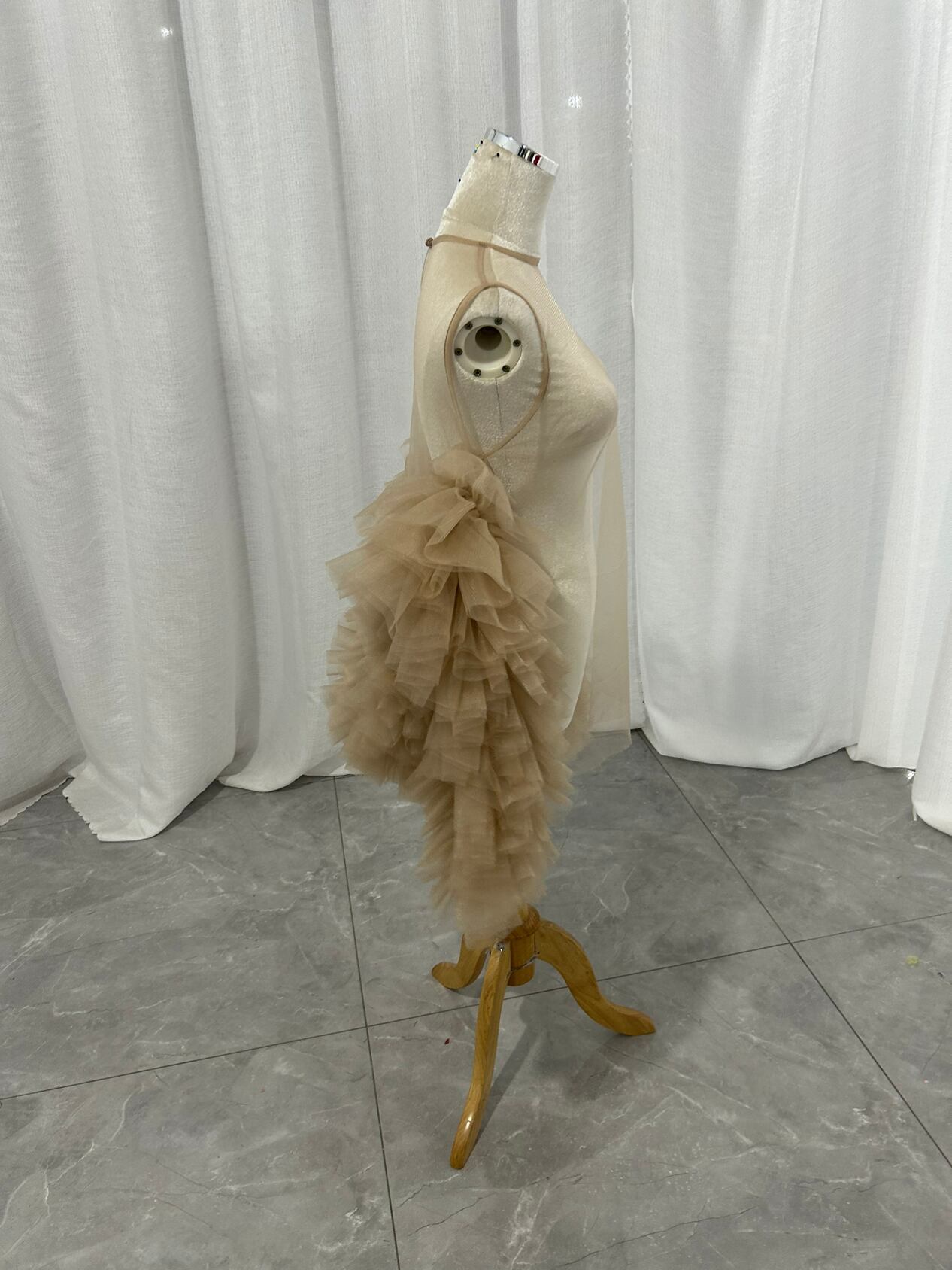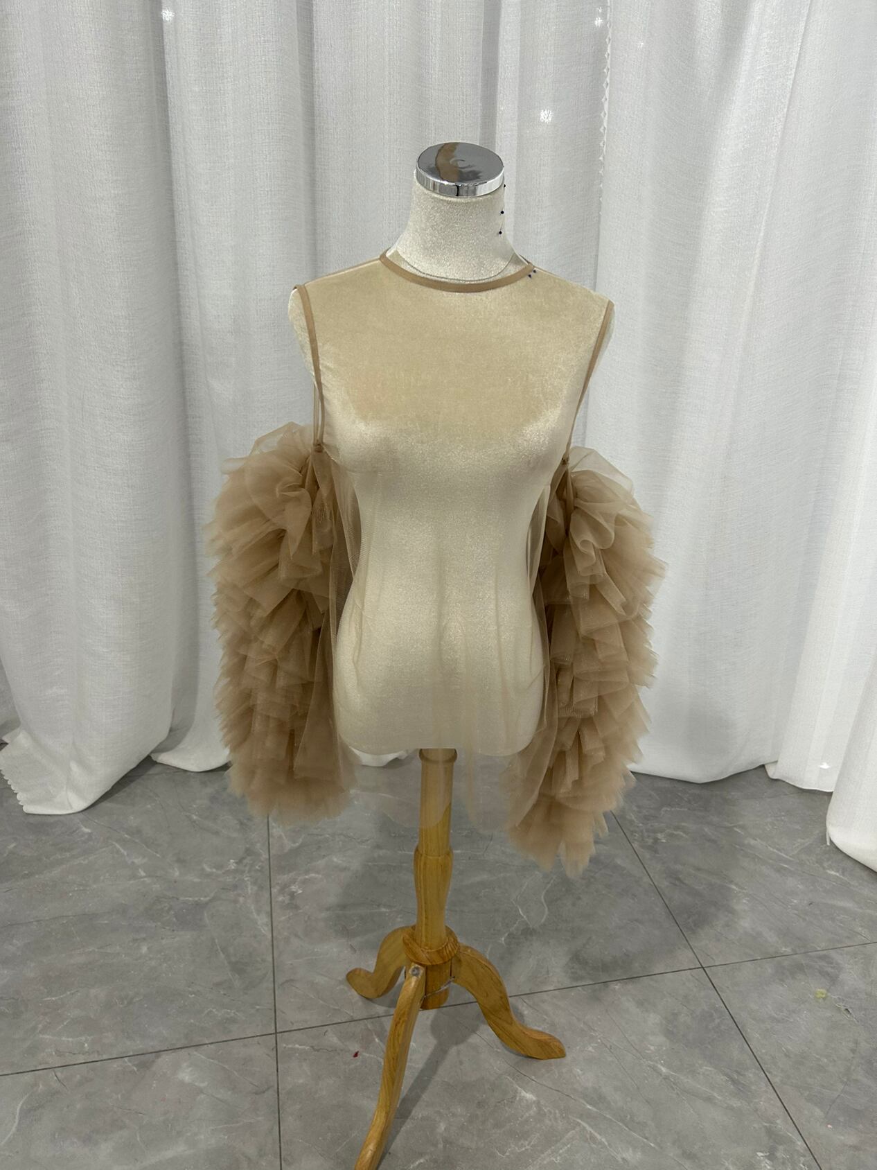 トップス あんず色 ソフトチュール ふわふわ袖 前撮り 2次会