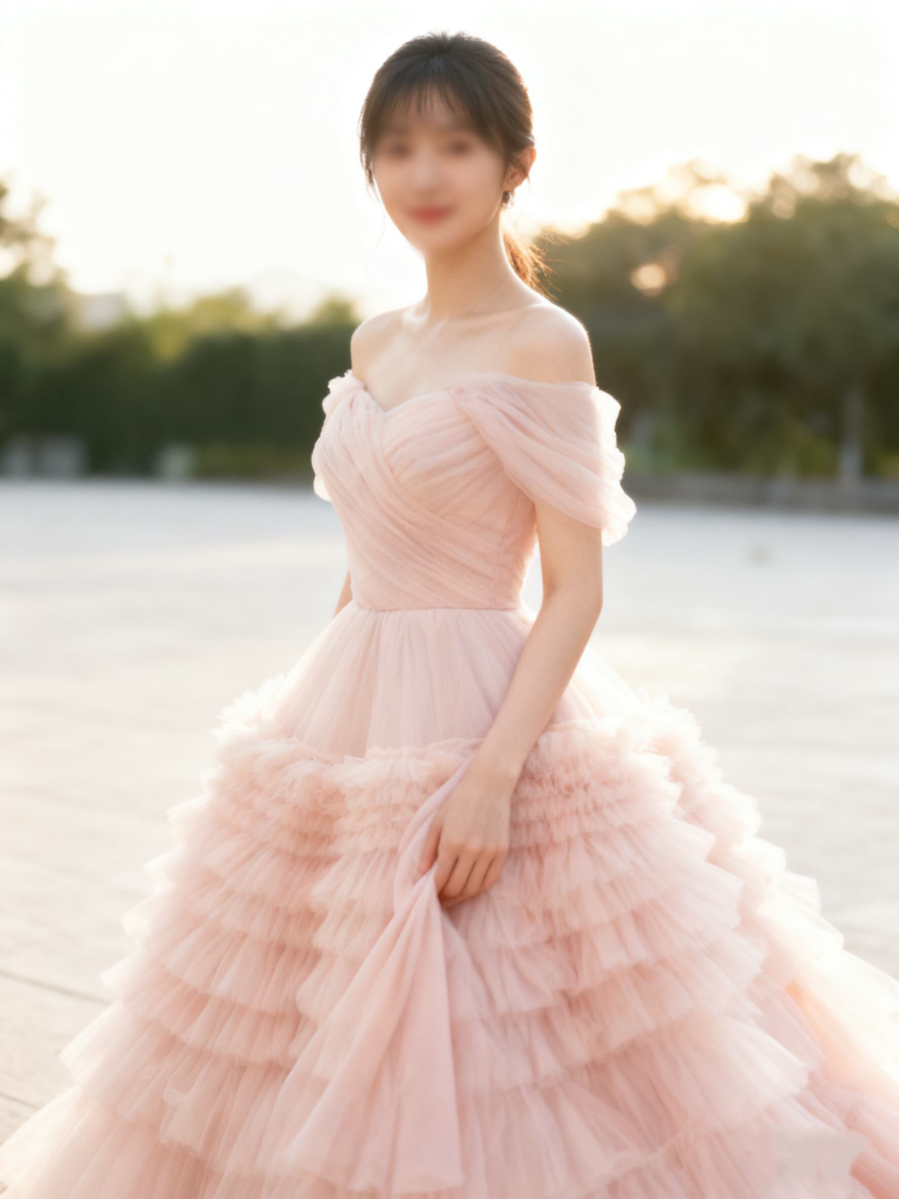 カラードレス オフショルダー ピンク もこもこドレス プリンセスライン 披露宴 オートクチュール
