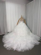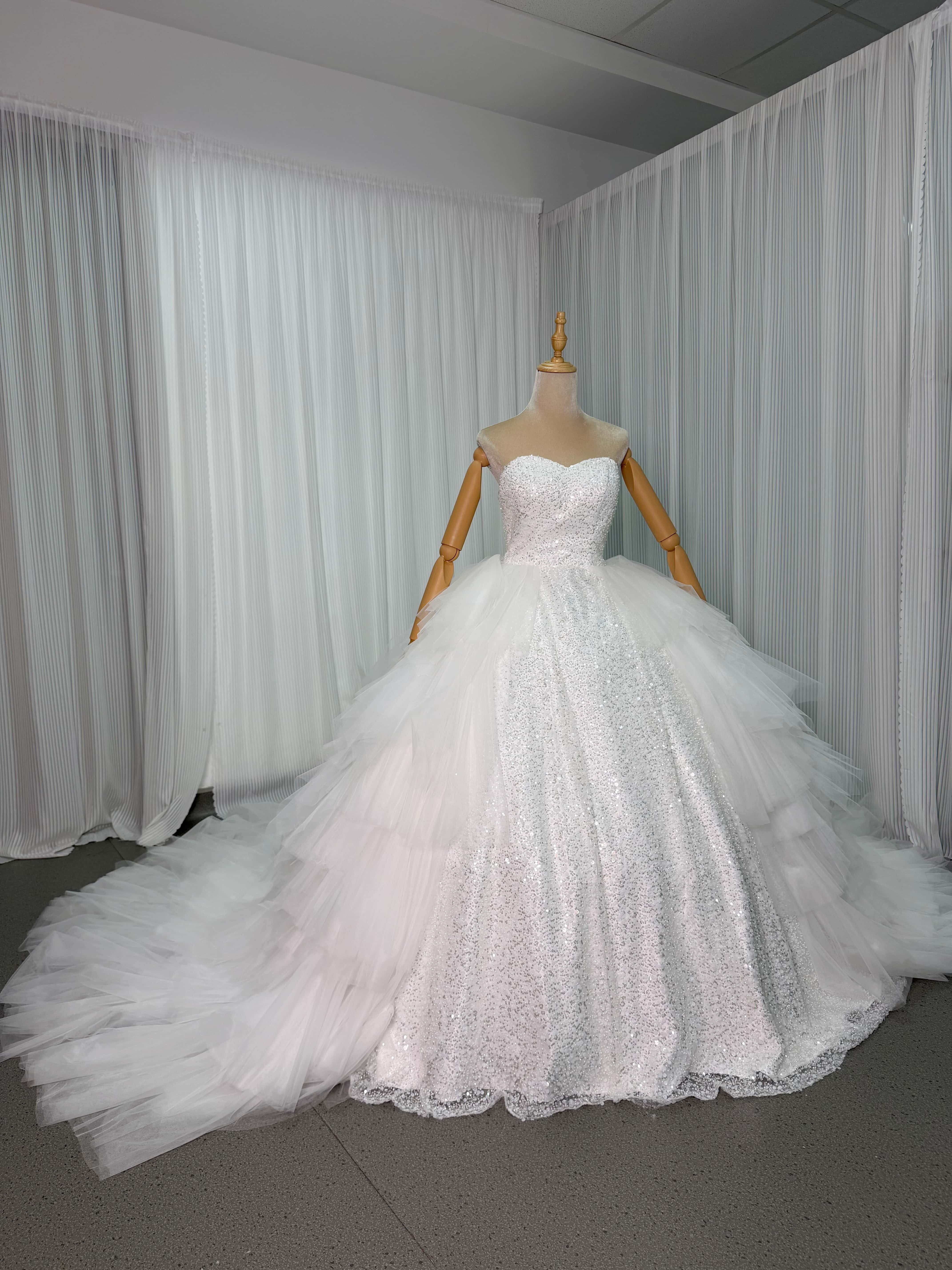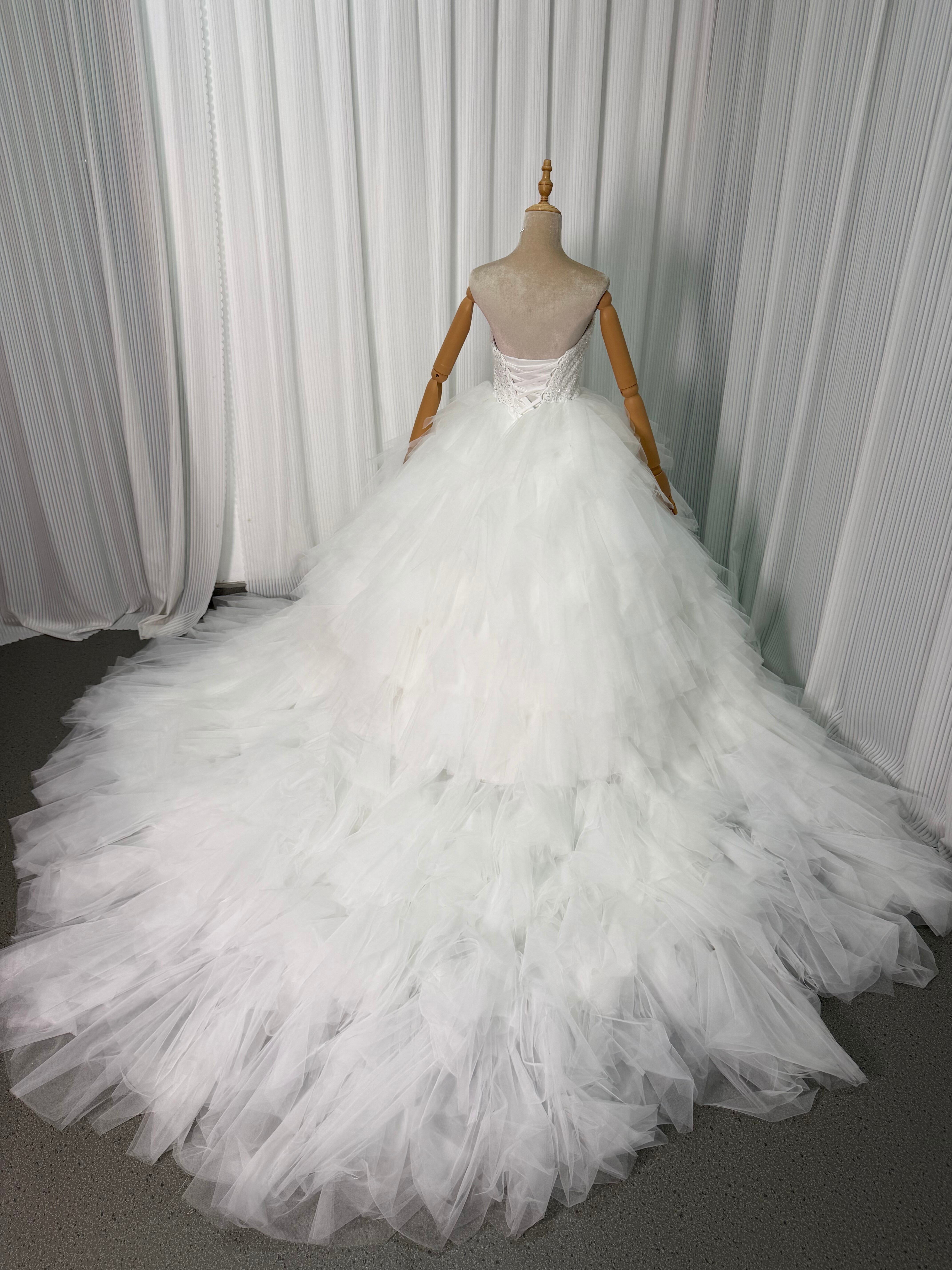 ウエディングドレス ベアトップ インポートビジューレース 華やかなトレーン 前撮り もこもこドレス