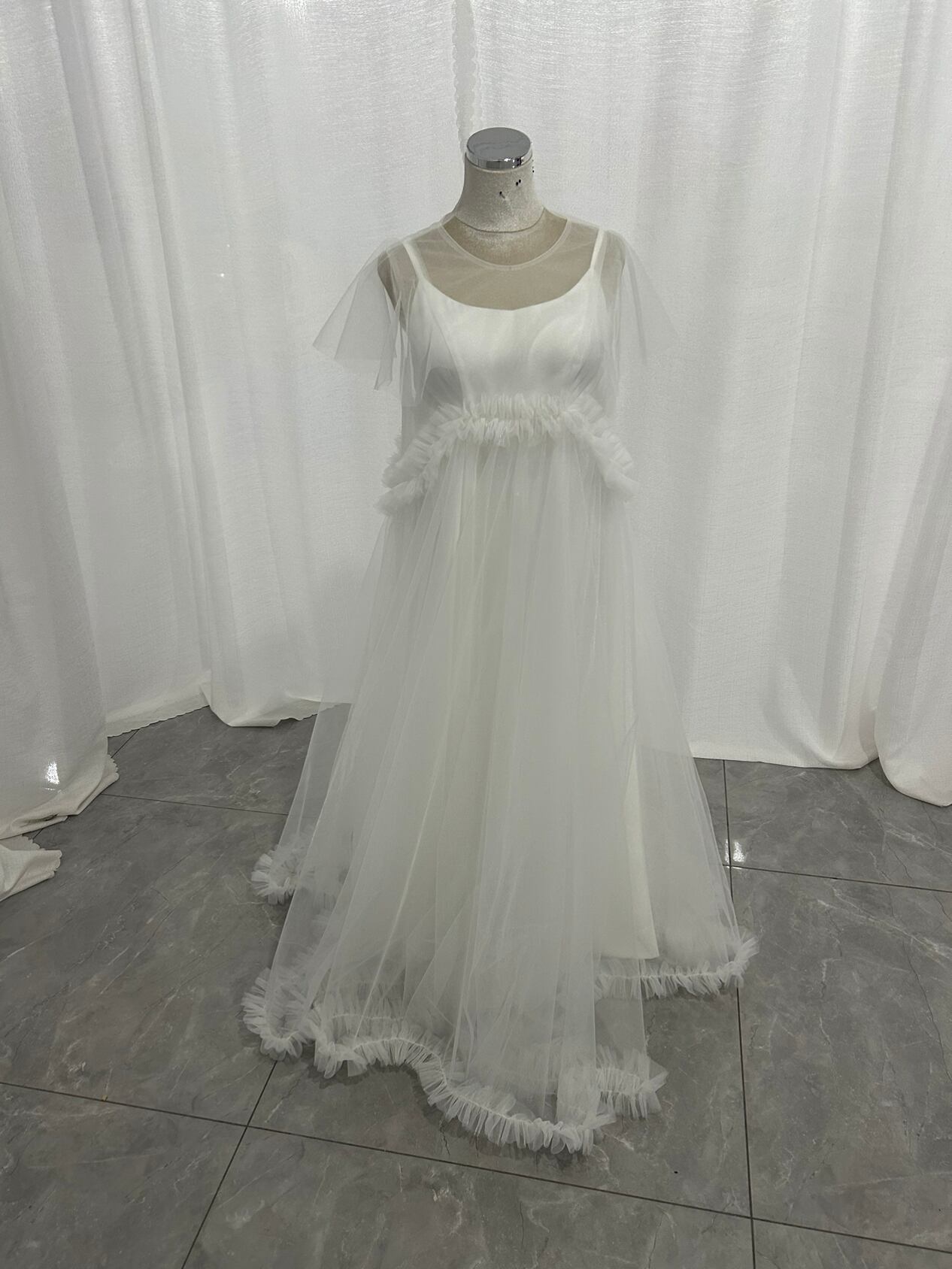 ウェディングドレス 妊婦 オフホワイト ツーピース ソフトチュール キャミソール 前撮り