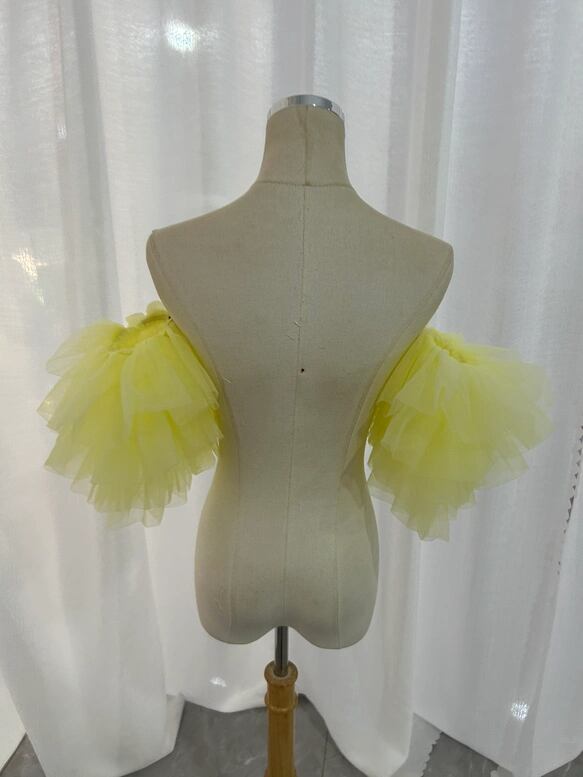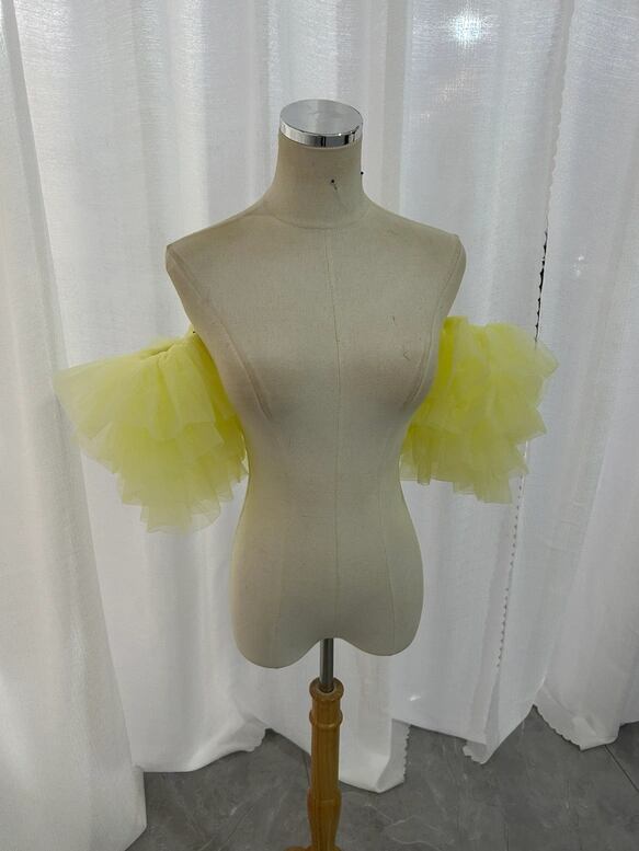 パフスリーブ イエロー フリル袖 ふわふわ ストレッチ 披露宴 前撮り