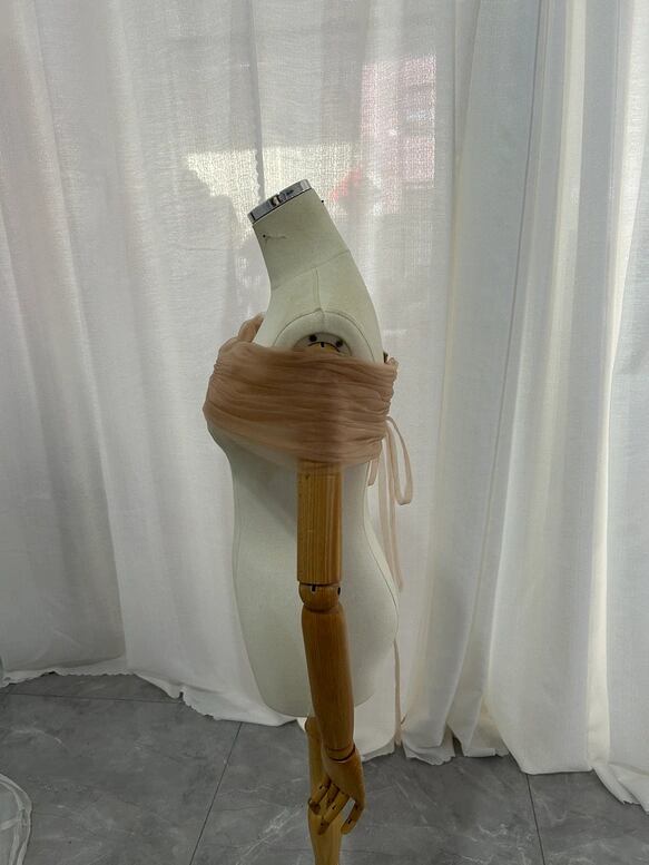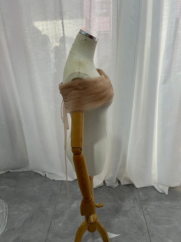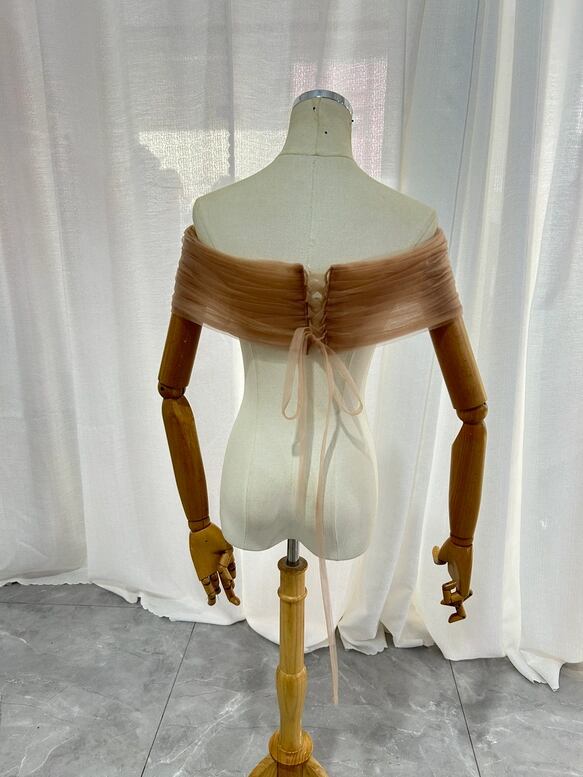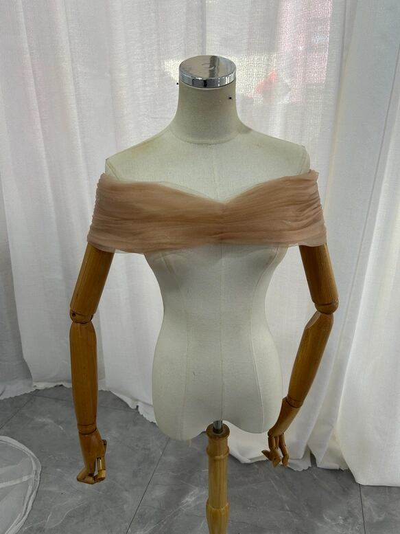 取り外しオフショルダー シャンパン色 ソフトチュール 編み上げ 花嫁