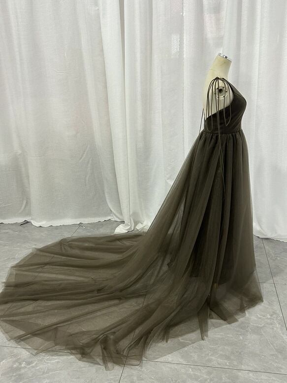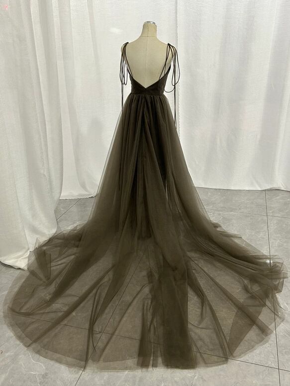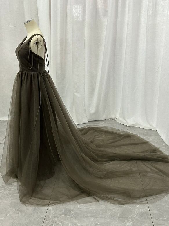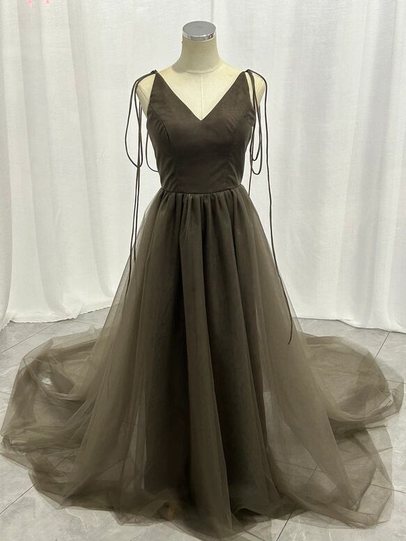 パーティードレス ブラウン Vネック キャミソール チュールスカート ふわふわ 2次会/合コン