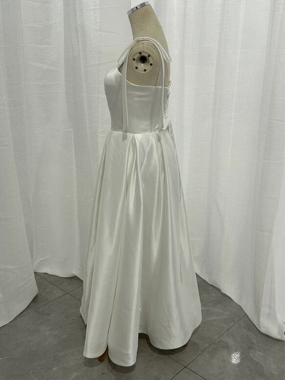 オフホワイト キャミソール ウエディングドレス 床付く2次会/挙式/前撮り/花嫁/結婚式